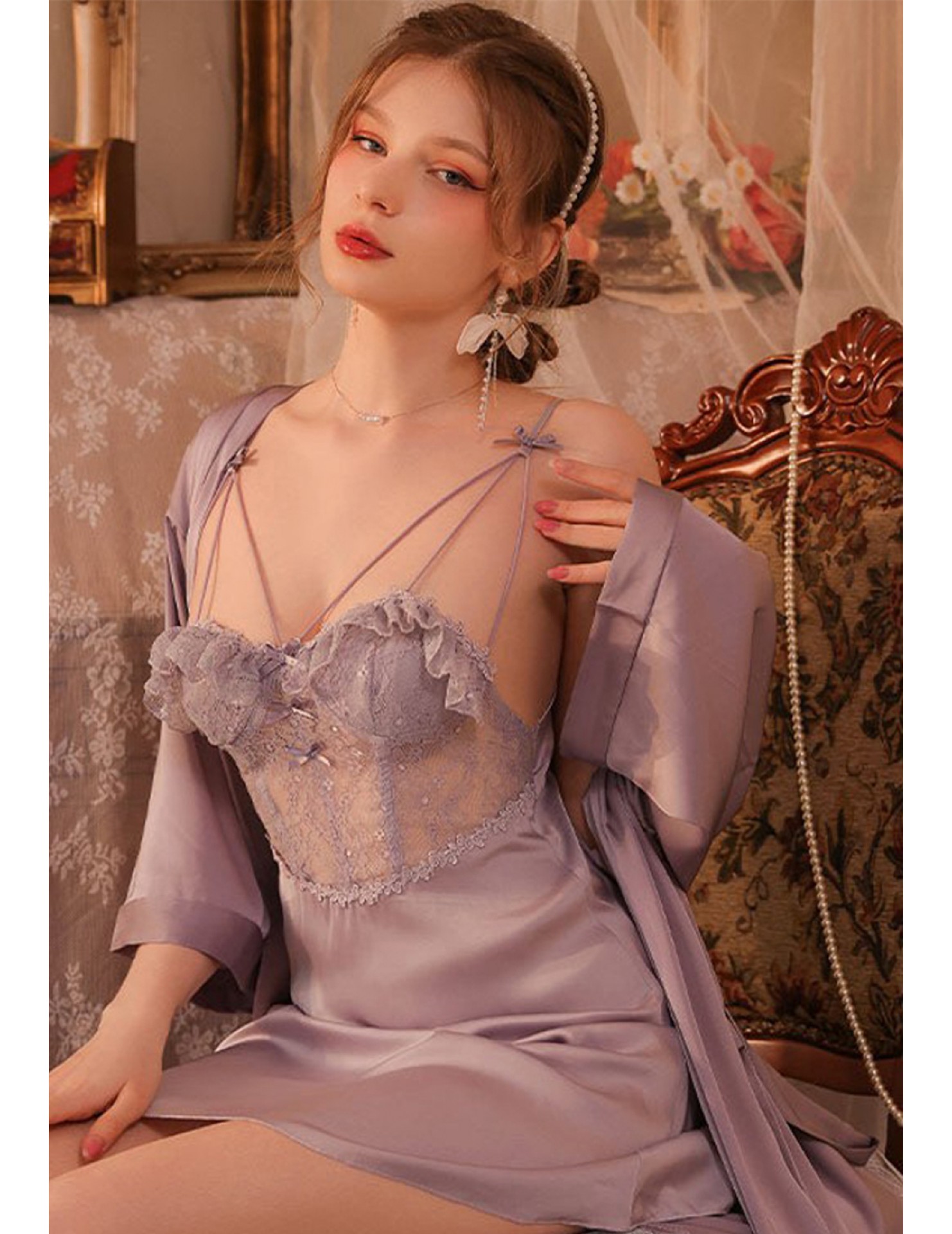LDD1009 女士性感蕾絲睡衣兩件套Grey