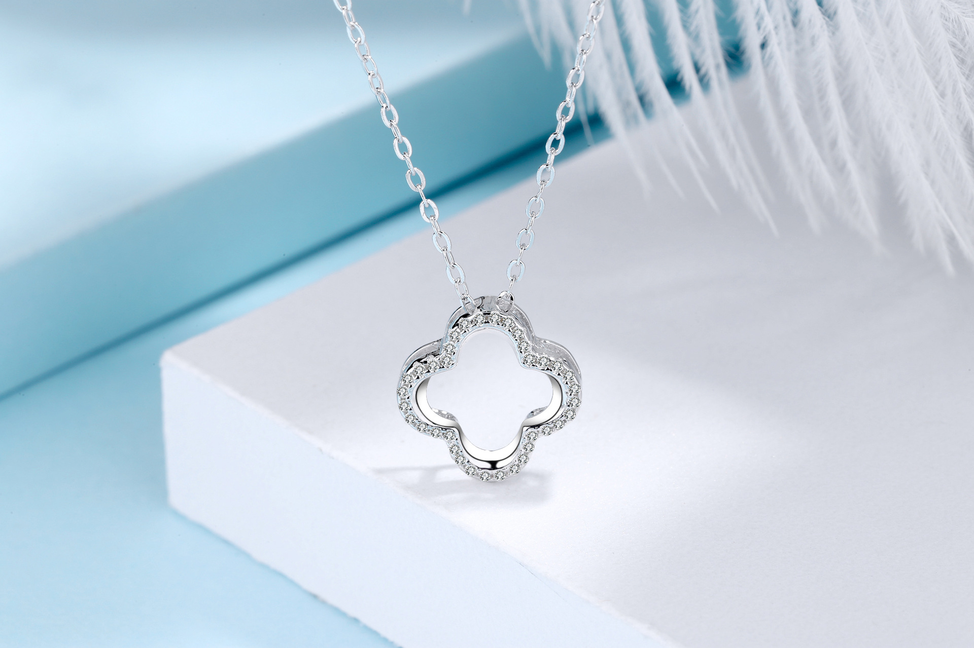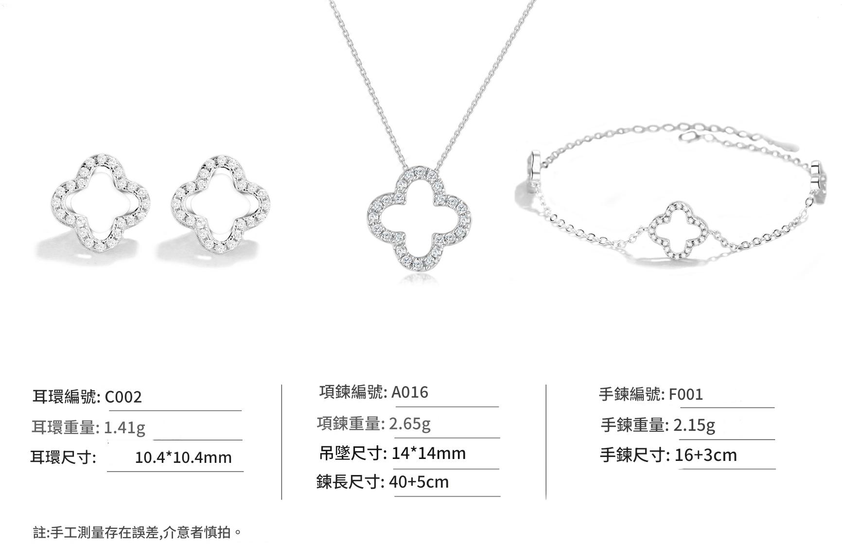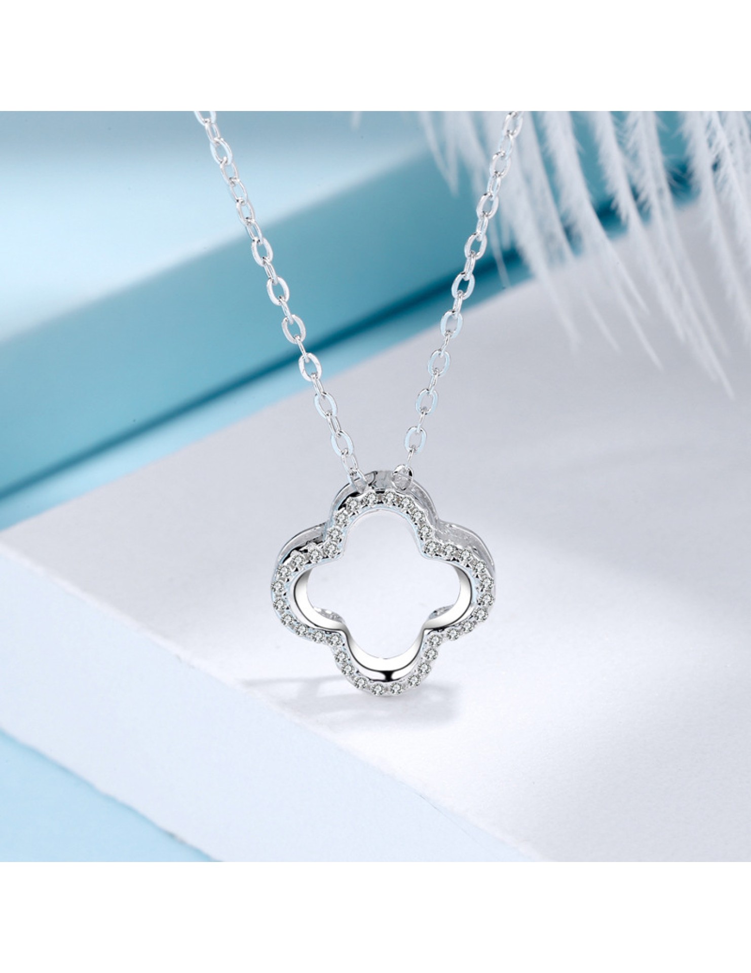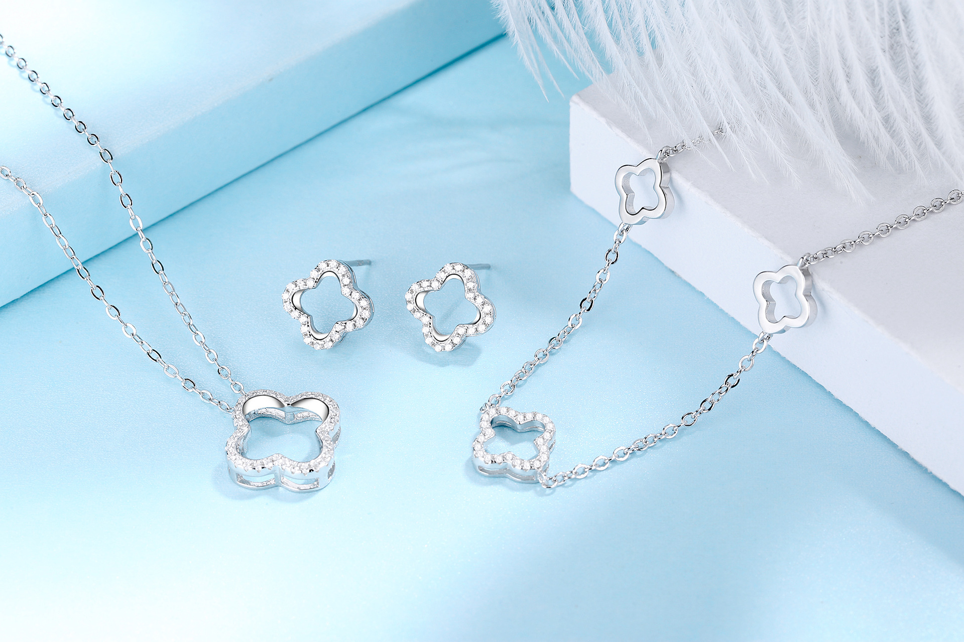 SATN122E100379 S925純銀女鑲鉆四葉幸運草項鏈套裝簡約潮鎖骨鏈學生閨蜜擺攤貨源