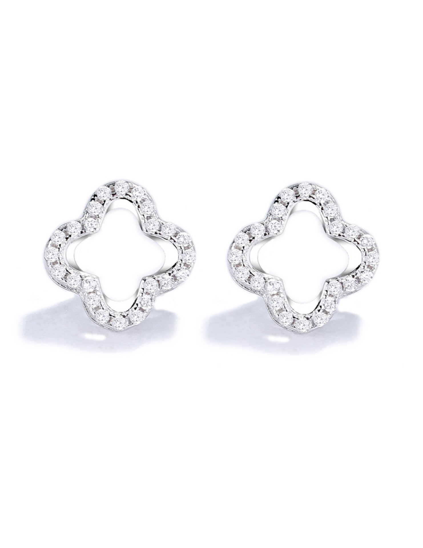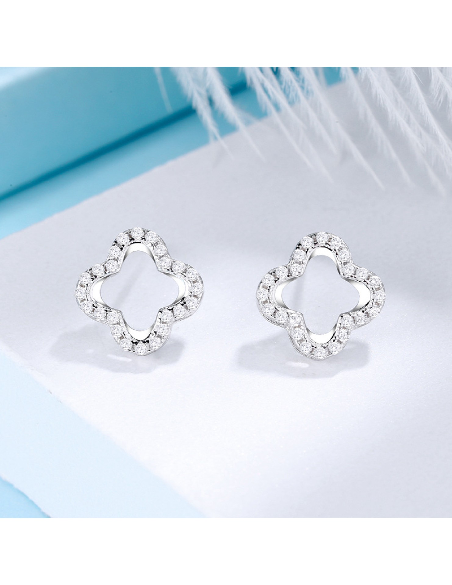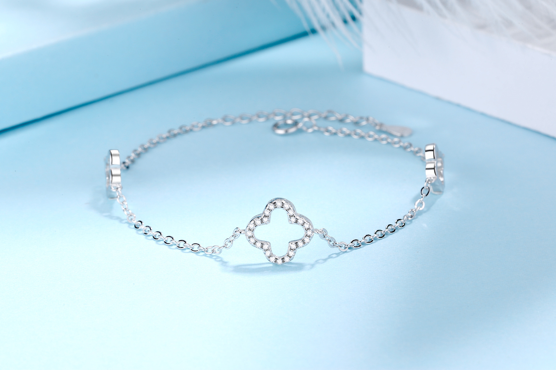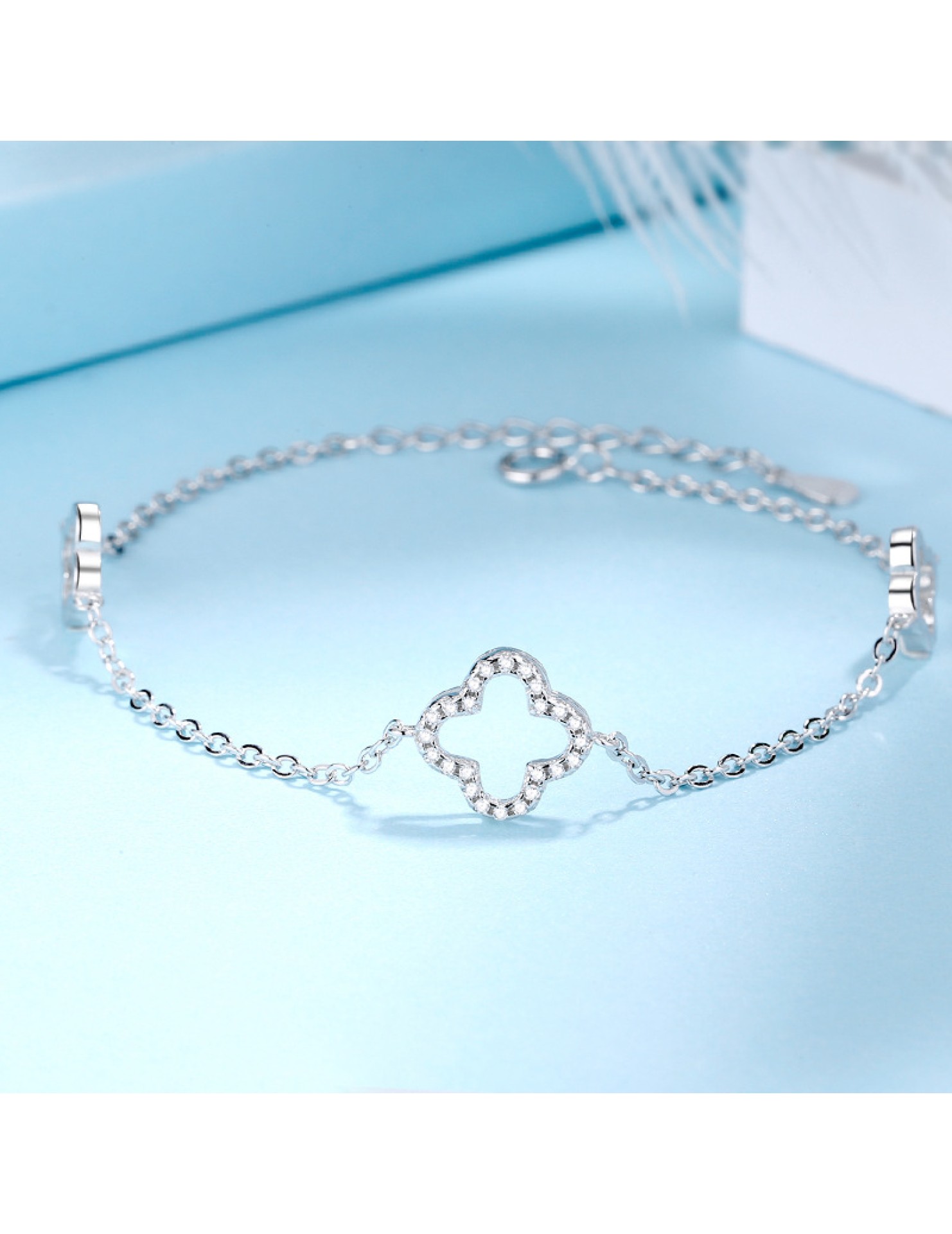 SATN122E100379 S925純銀女鑲鉆四葉幸運草項鏈套裝簡約潮鎖骨鏈學生閨蜜擺攤貨源