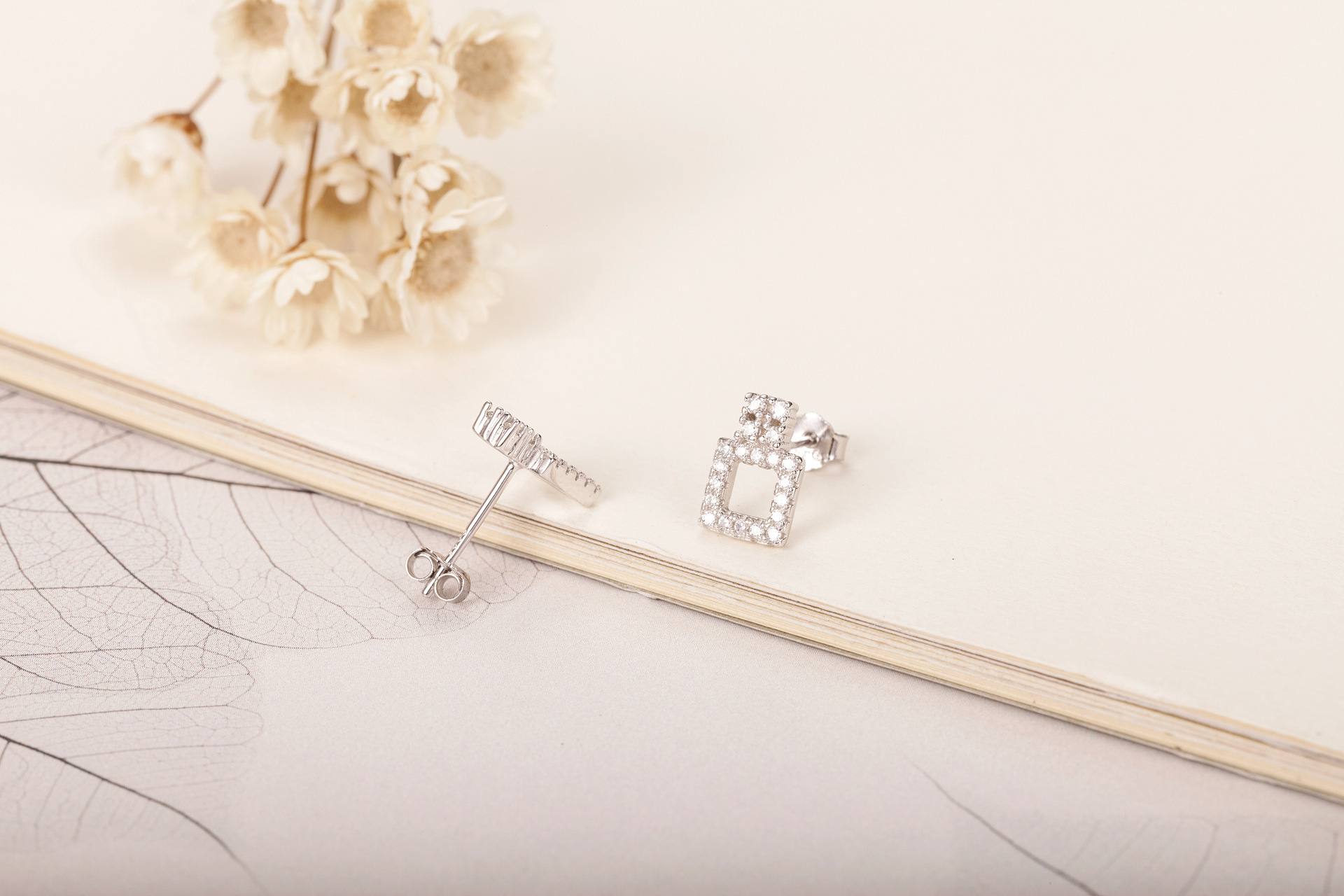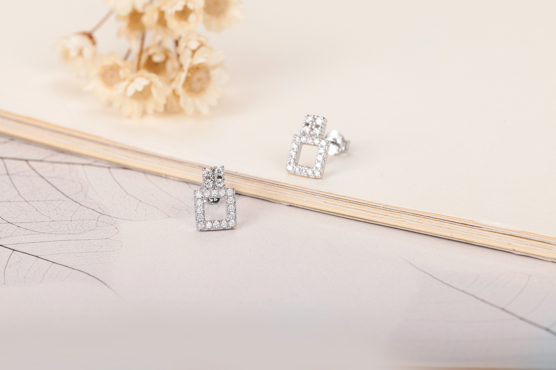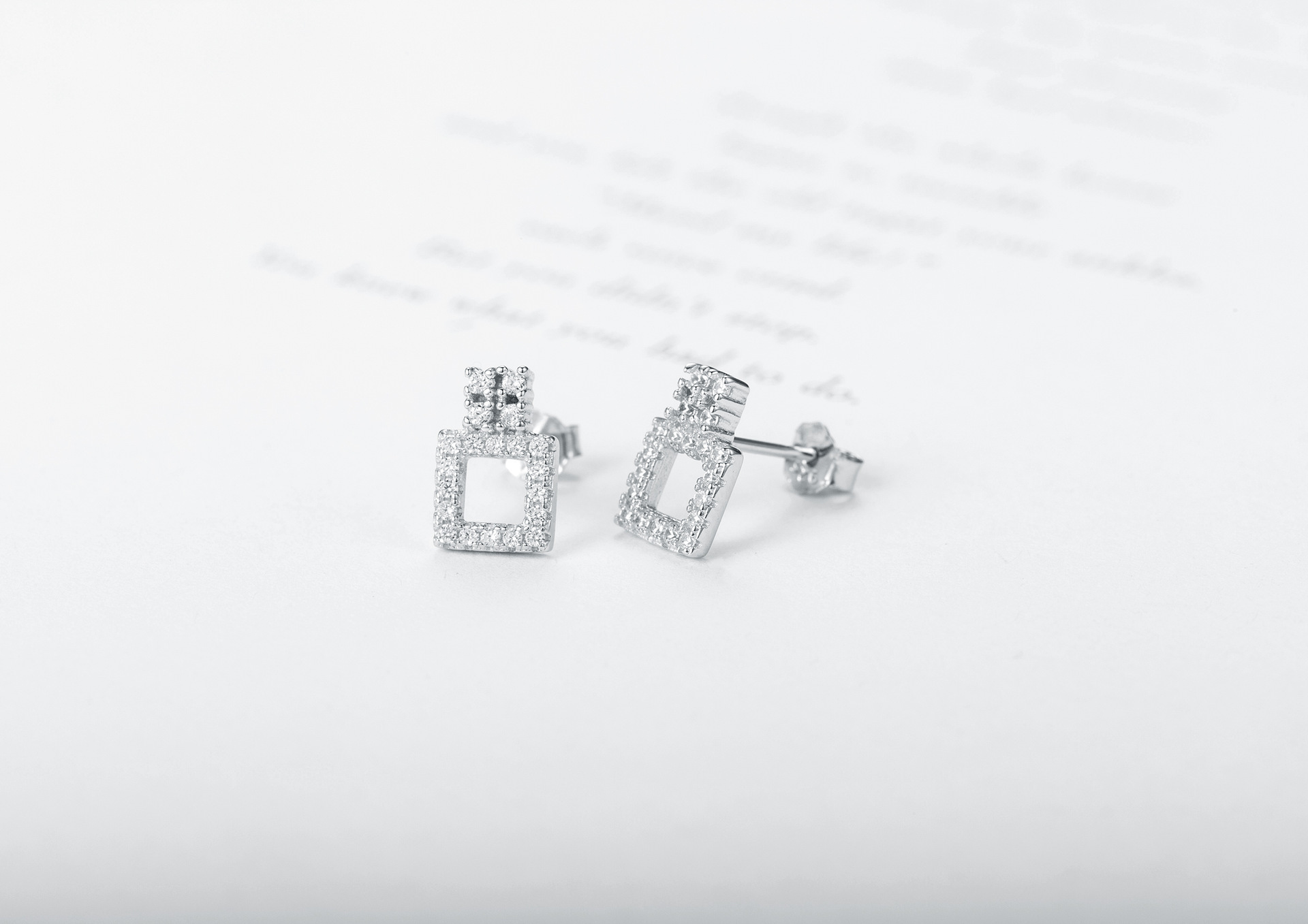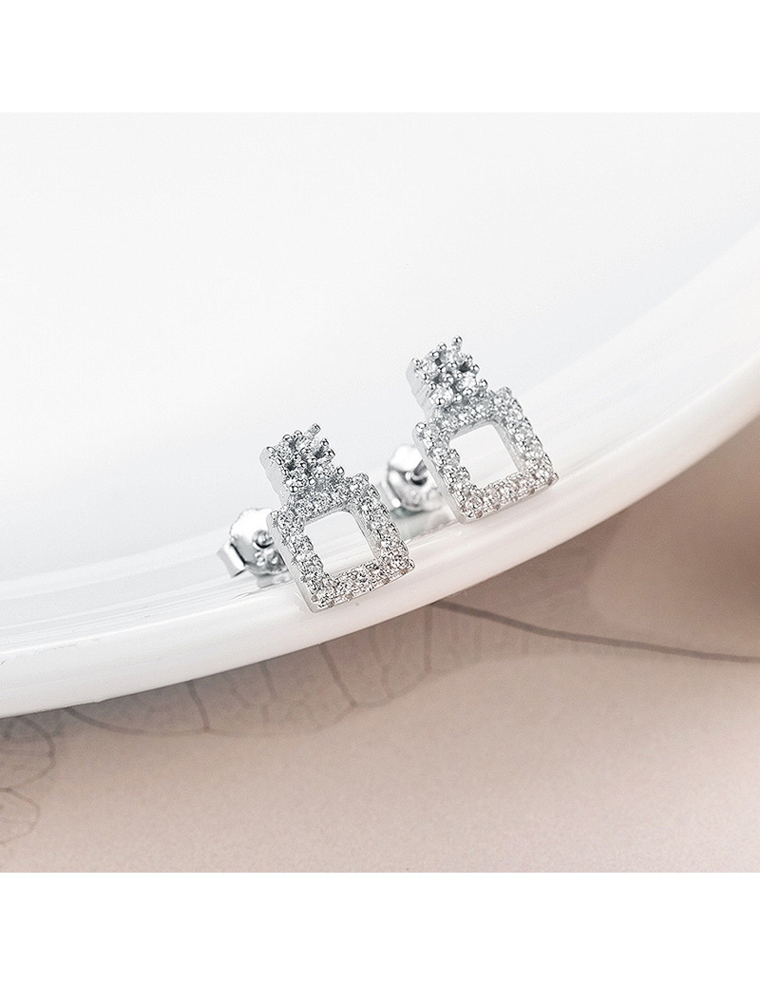 SATN122E100418 韓版S925純銀女生鑲鉆耳釘幾何形時尚個性耳環學生耳飾品地攤貨源