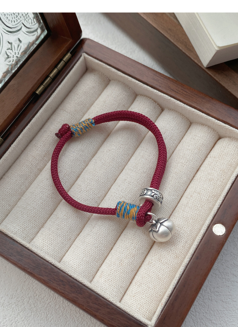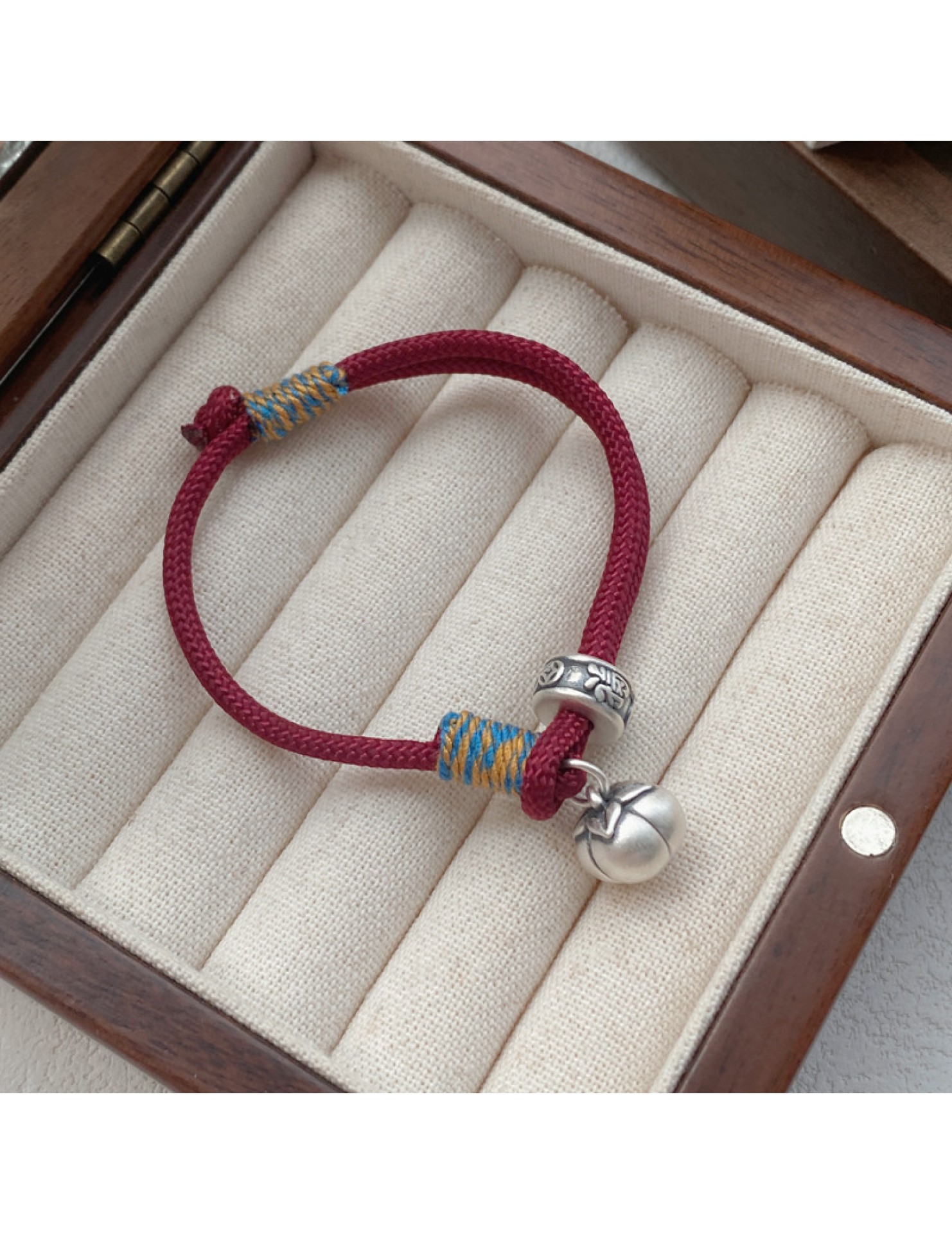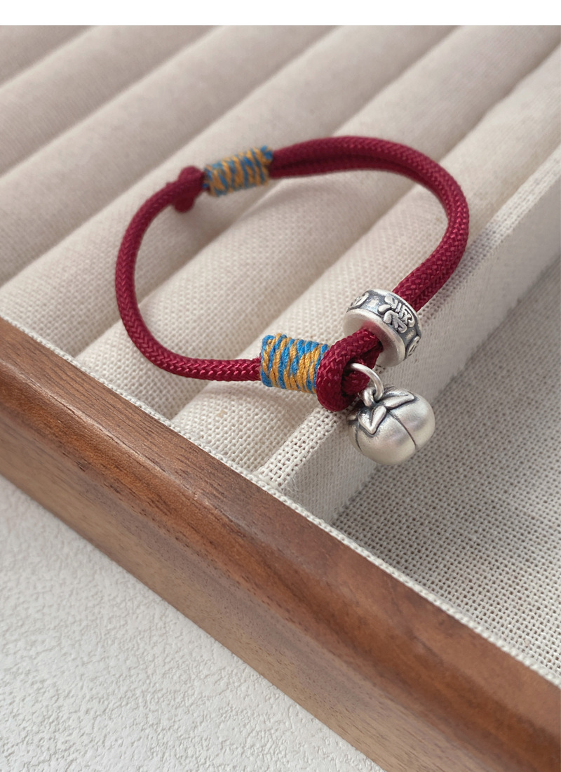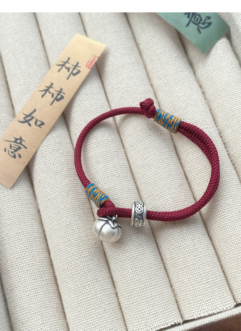 SATN122100013 S999足銀柿柿如意紅繩手鏈女復古國風手工編織手繩新中式輕奢手飾