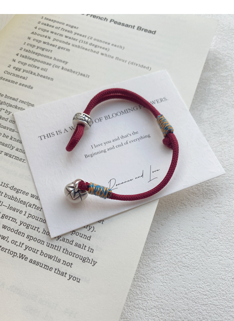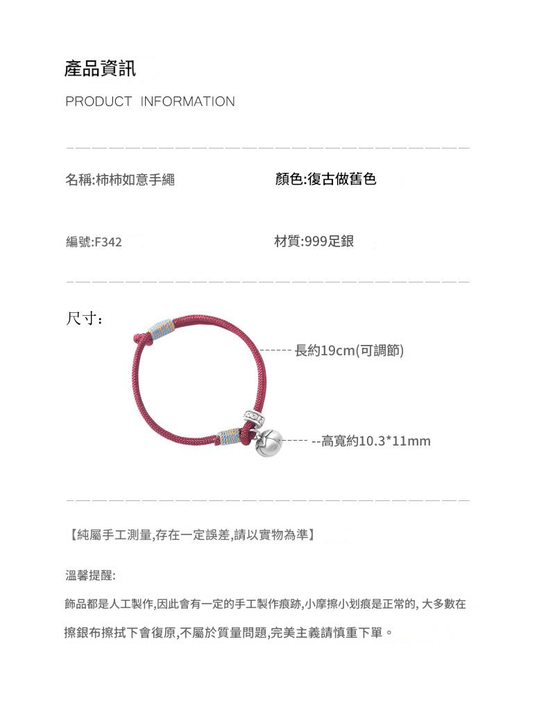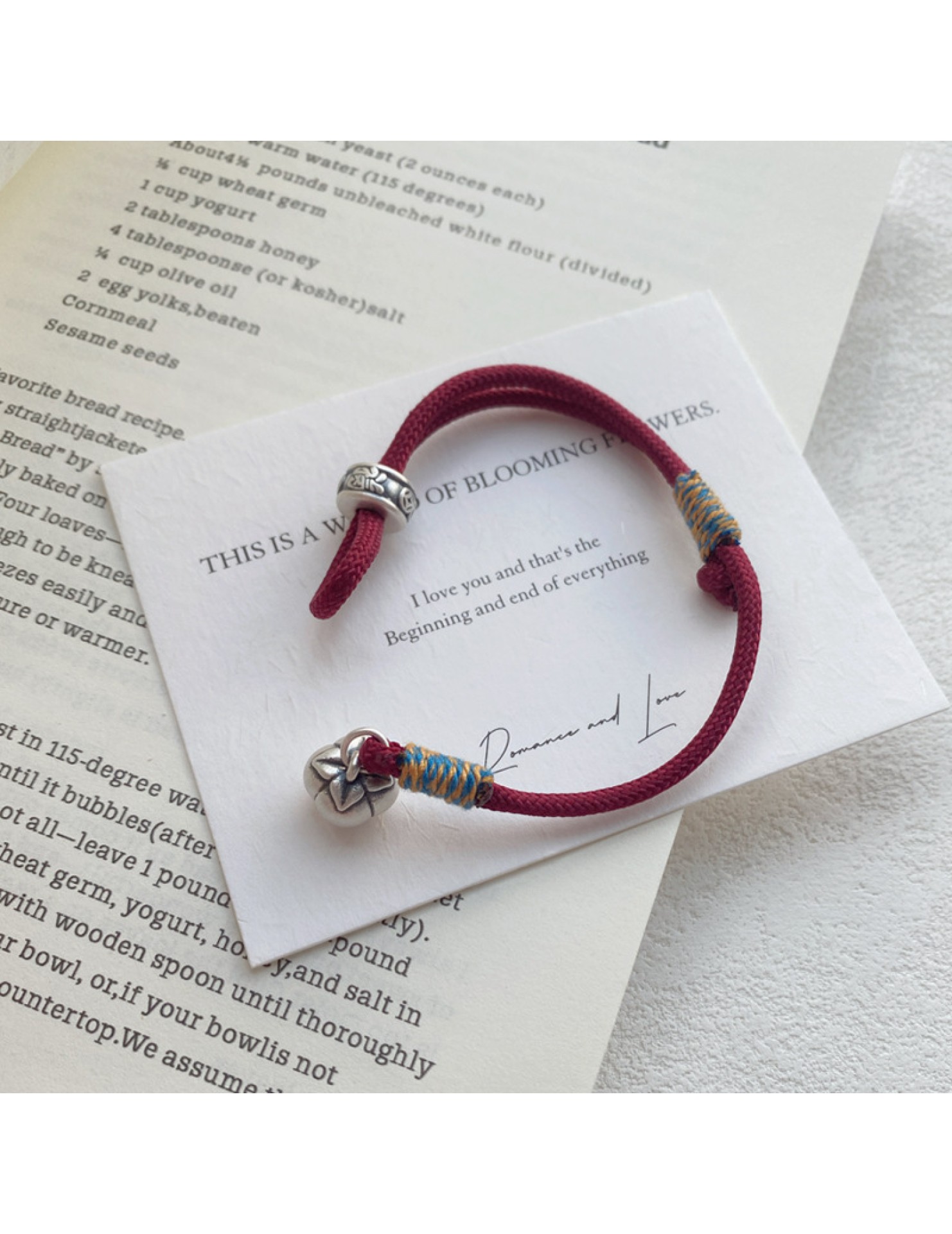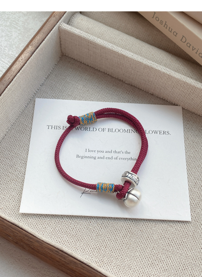 SATN122100013 S999足銀柿柿如意紅繩手鏈女復古國風手工編織手繩新中式輕奢手飾
