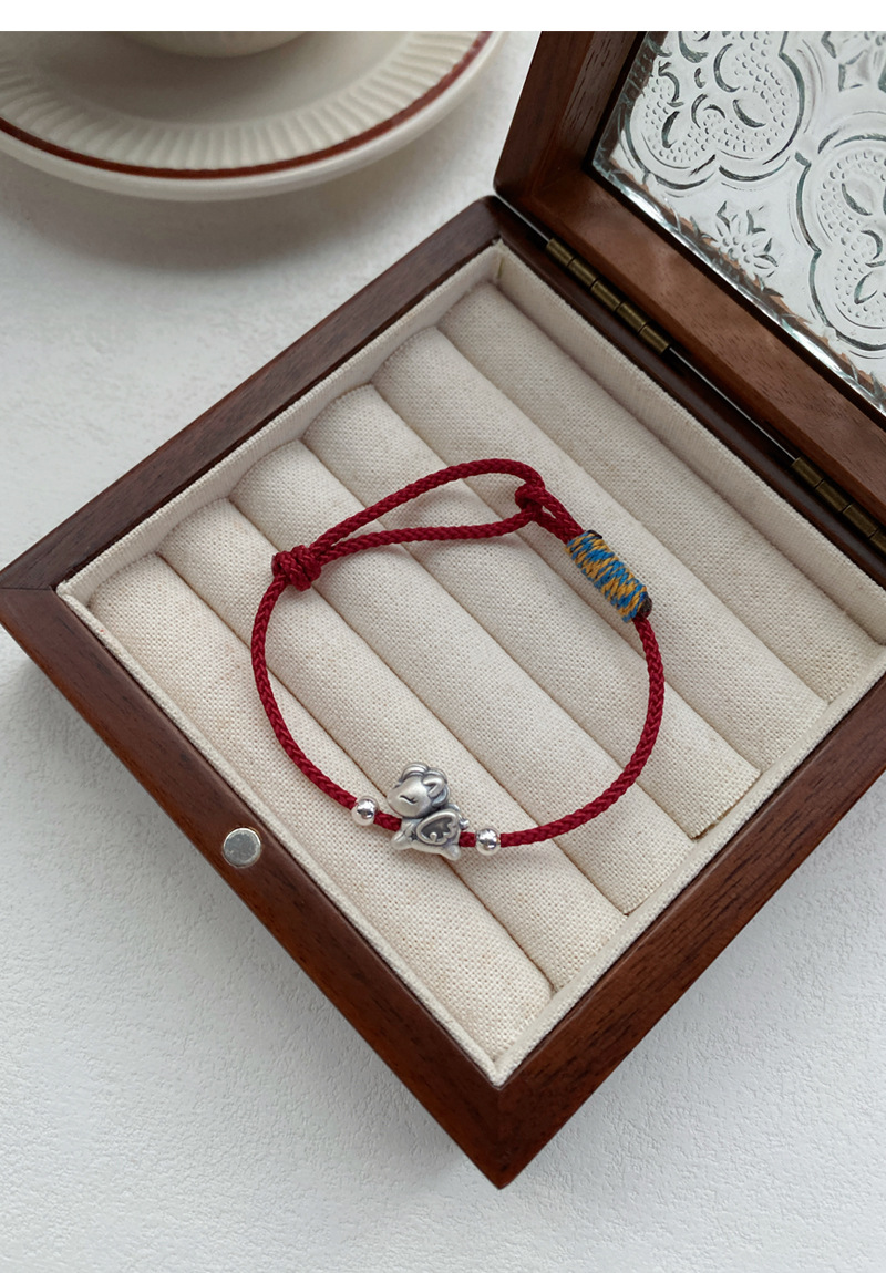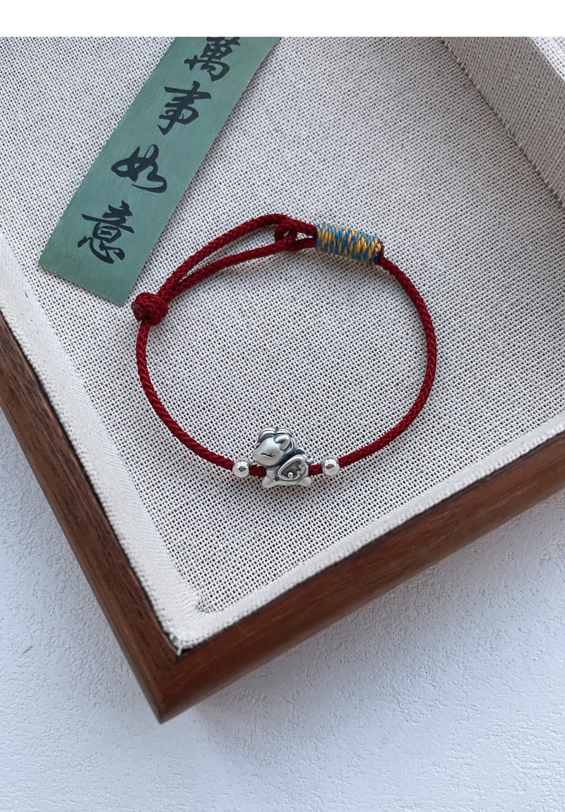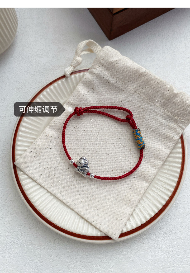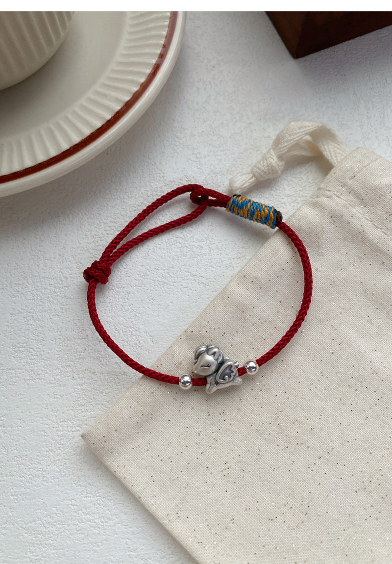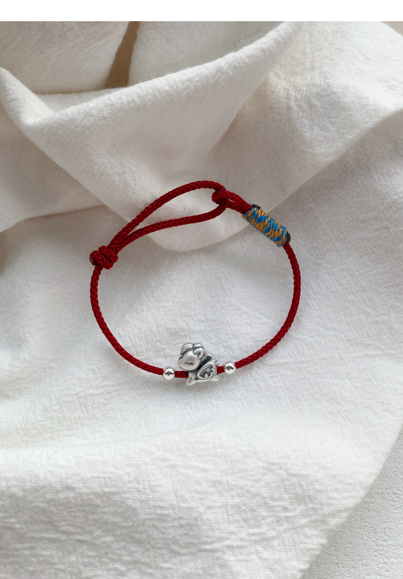SATN122100002 S999足銀小馬紅繩手鏈女新中式設計生肖本命年編織手繩馬年手飾