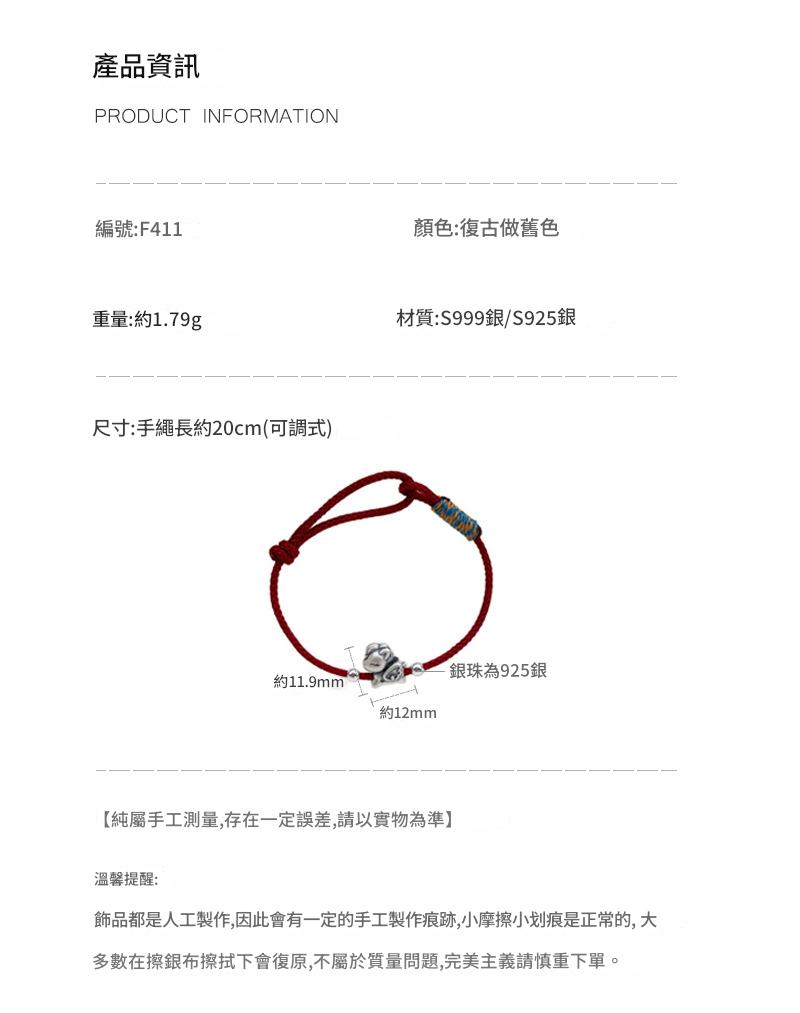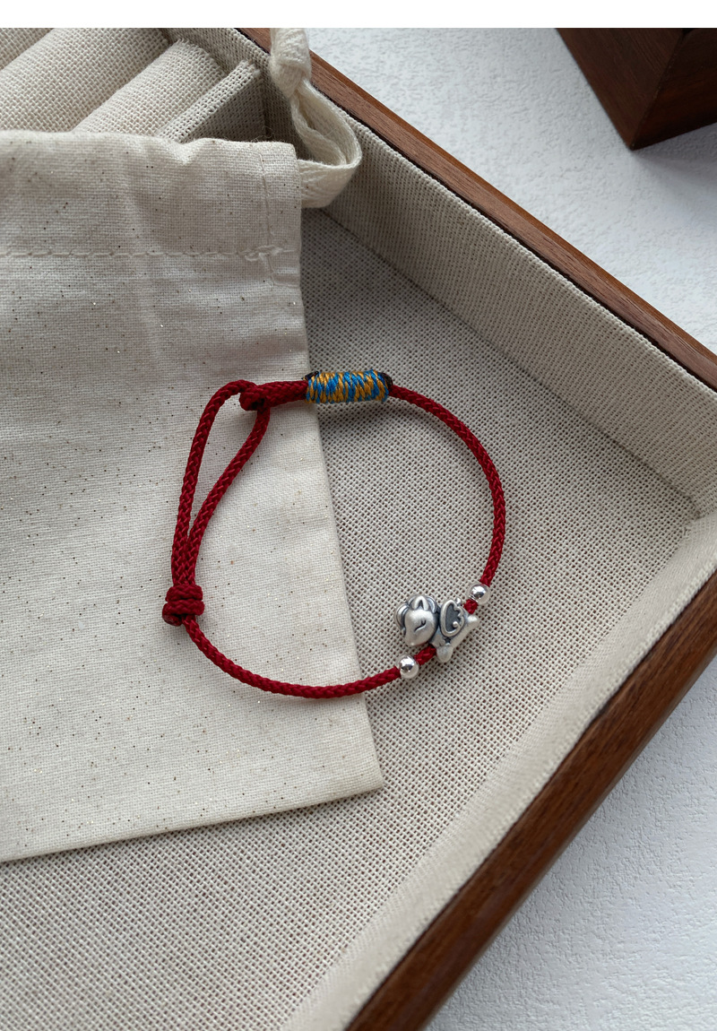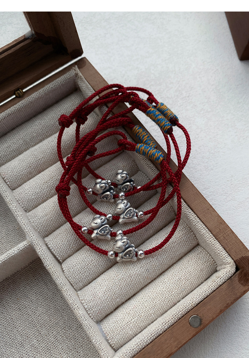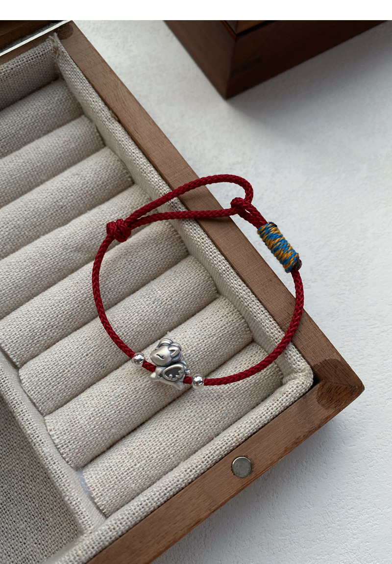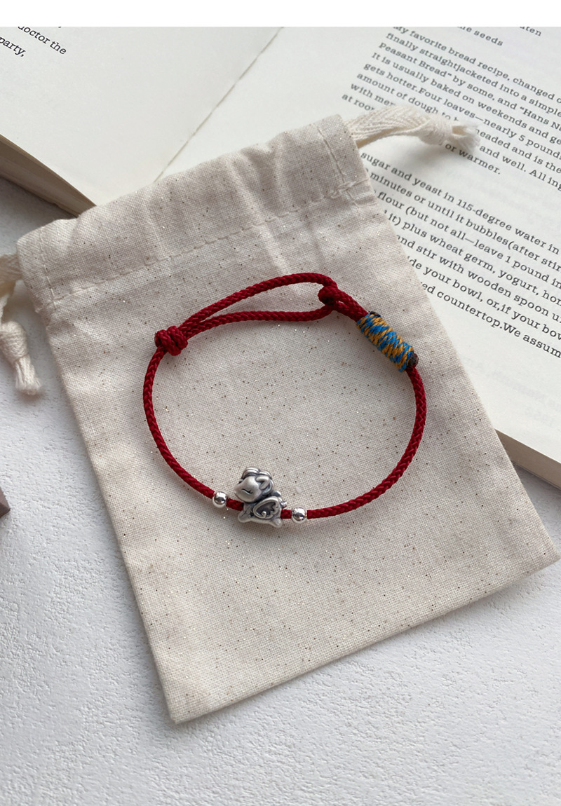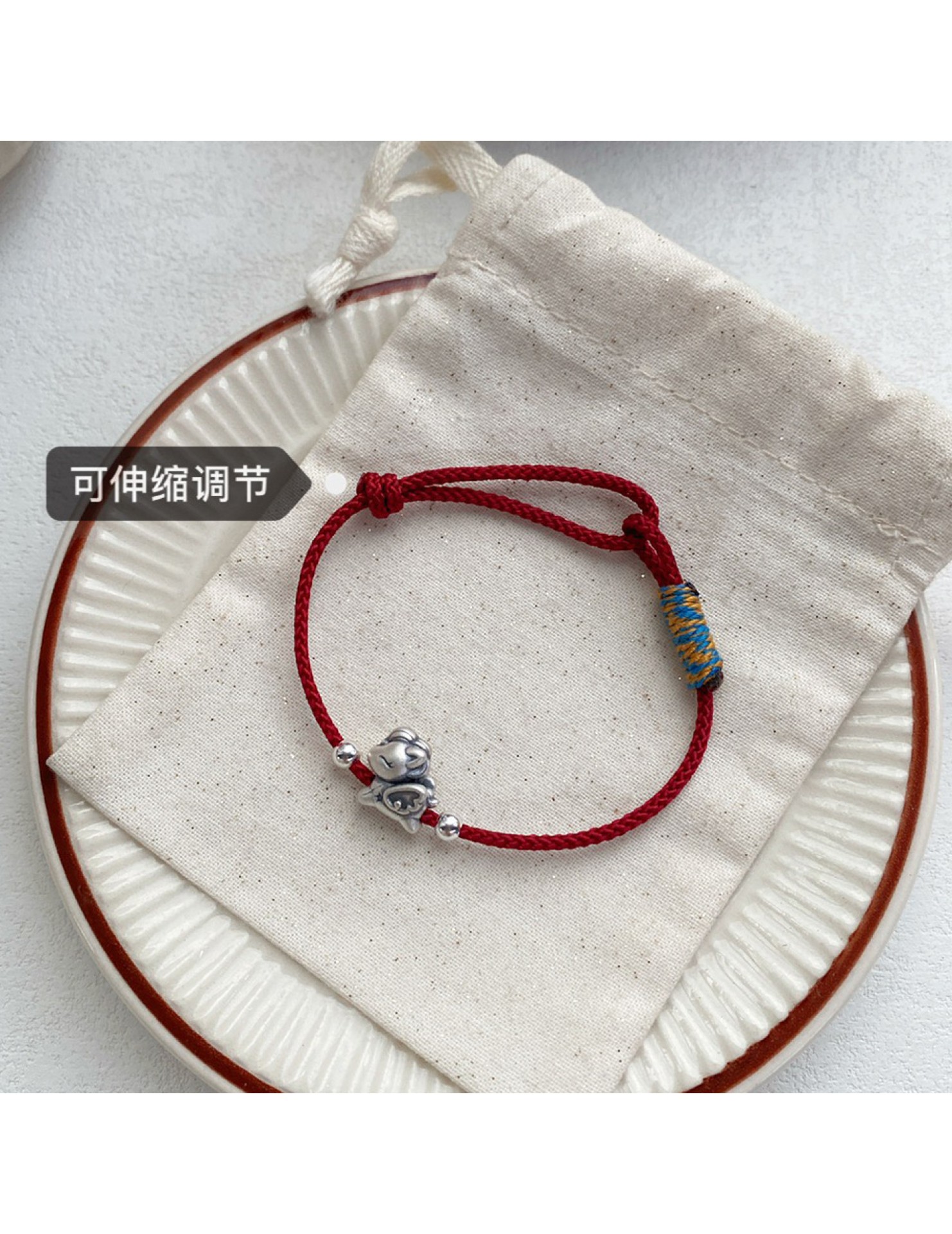 SATN122100002 S999足銀小馬紅繩手鏈女新中式設計生肖本命年編織手繩馬年手飾