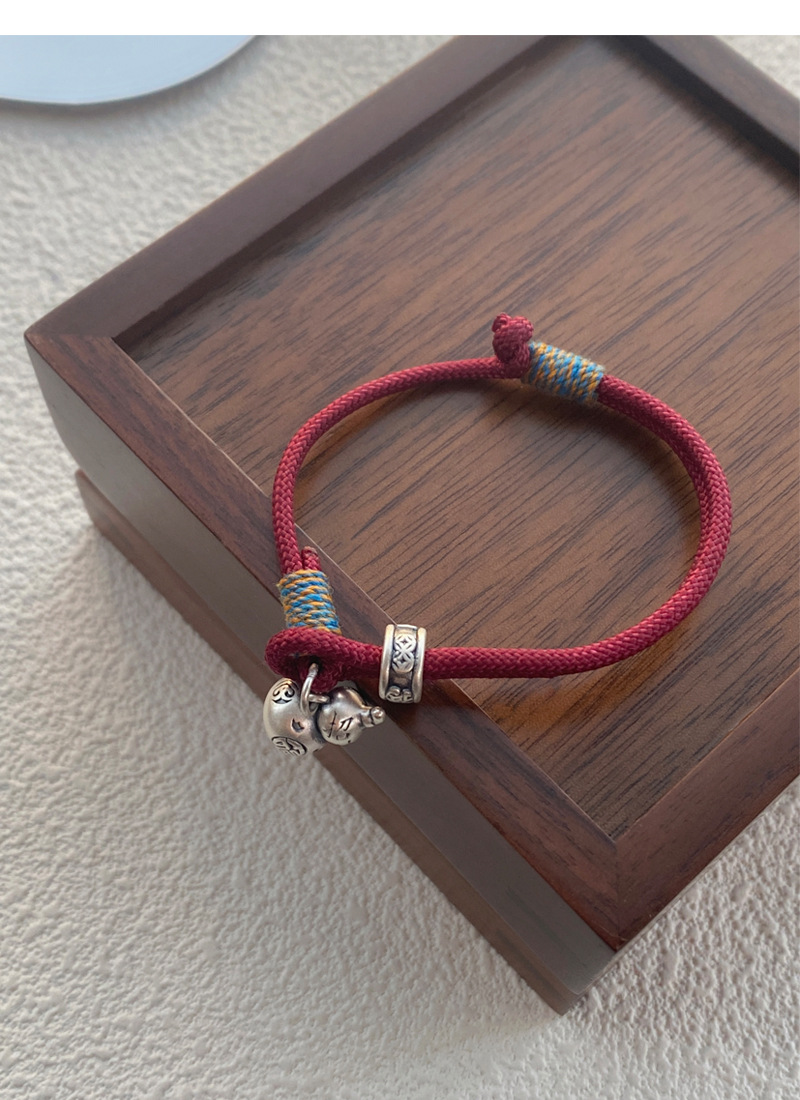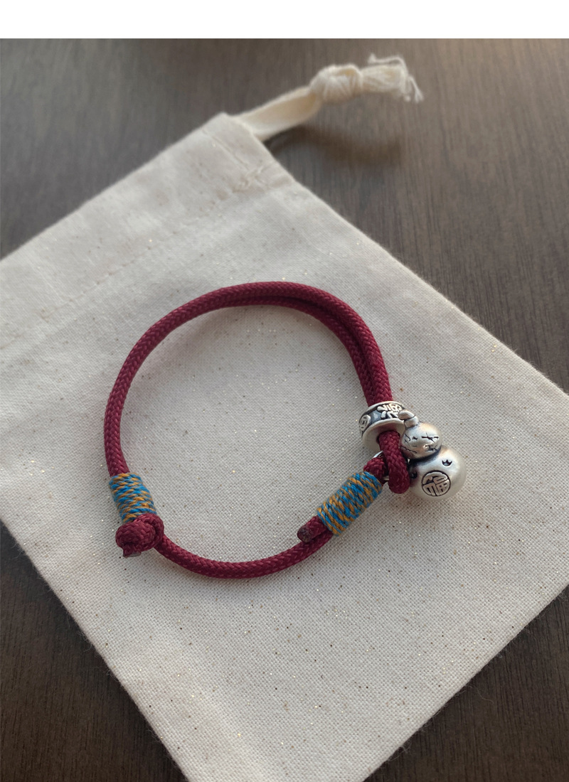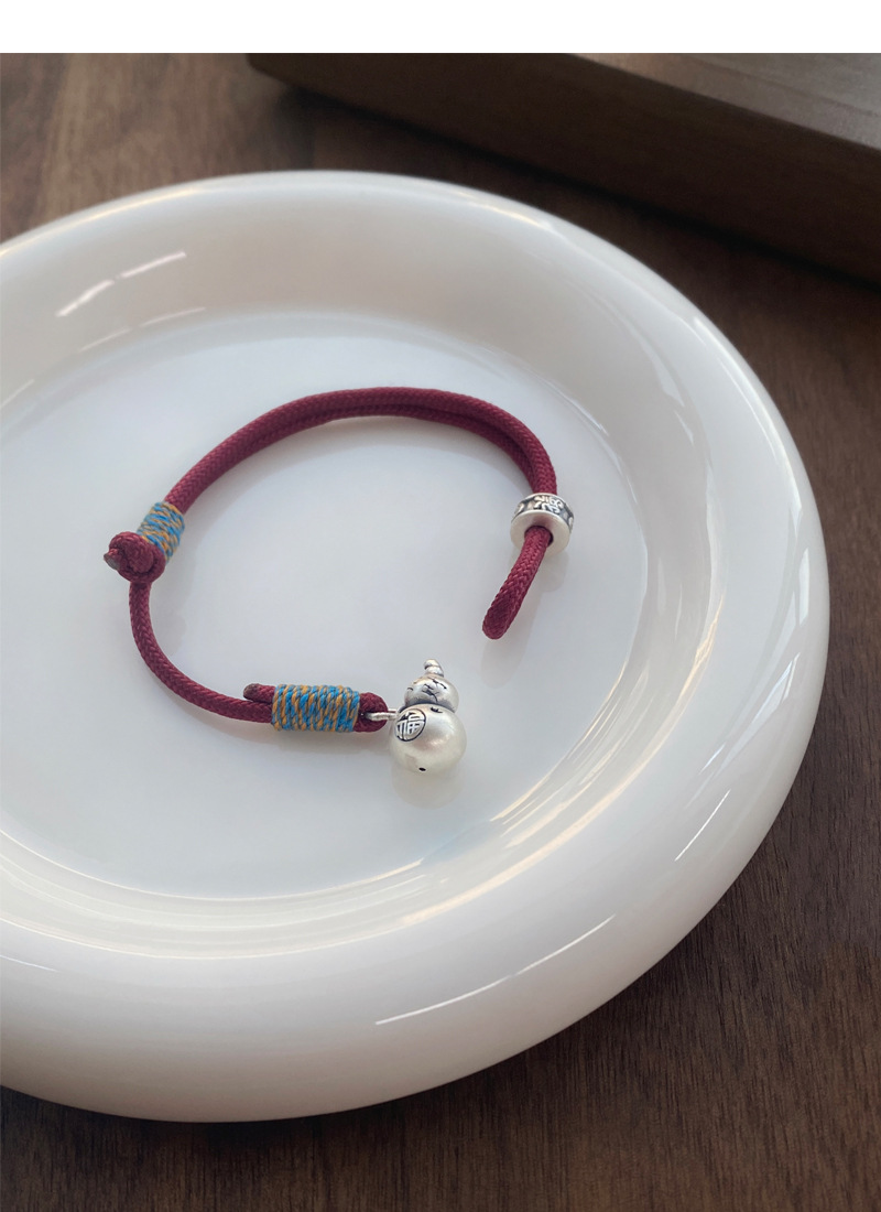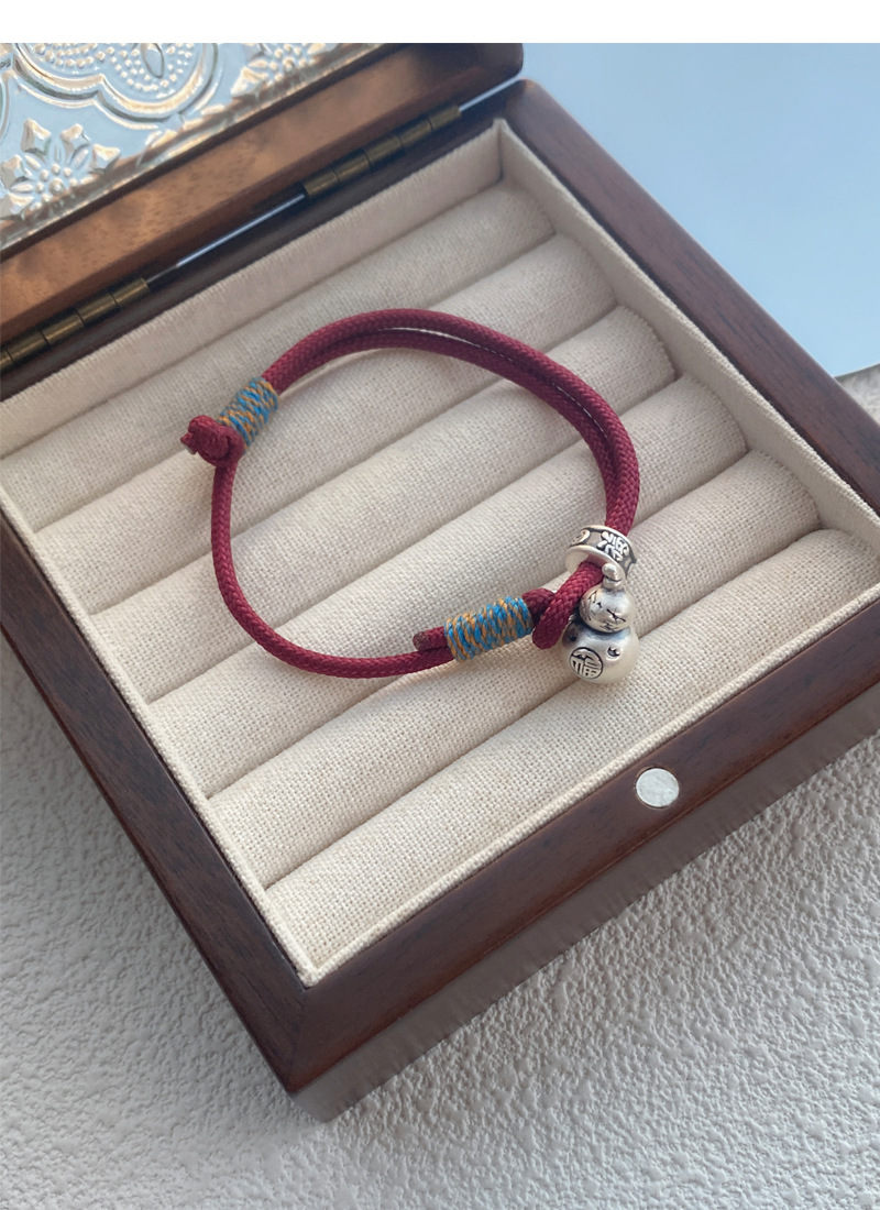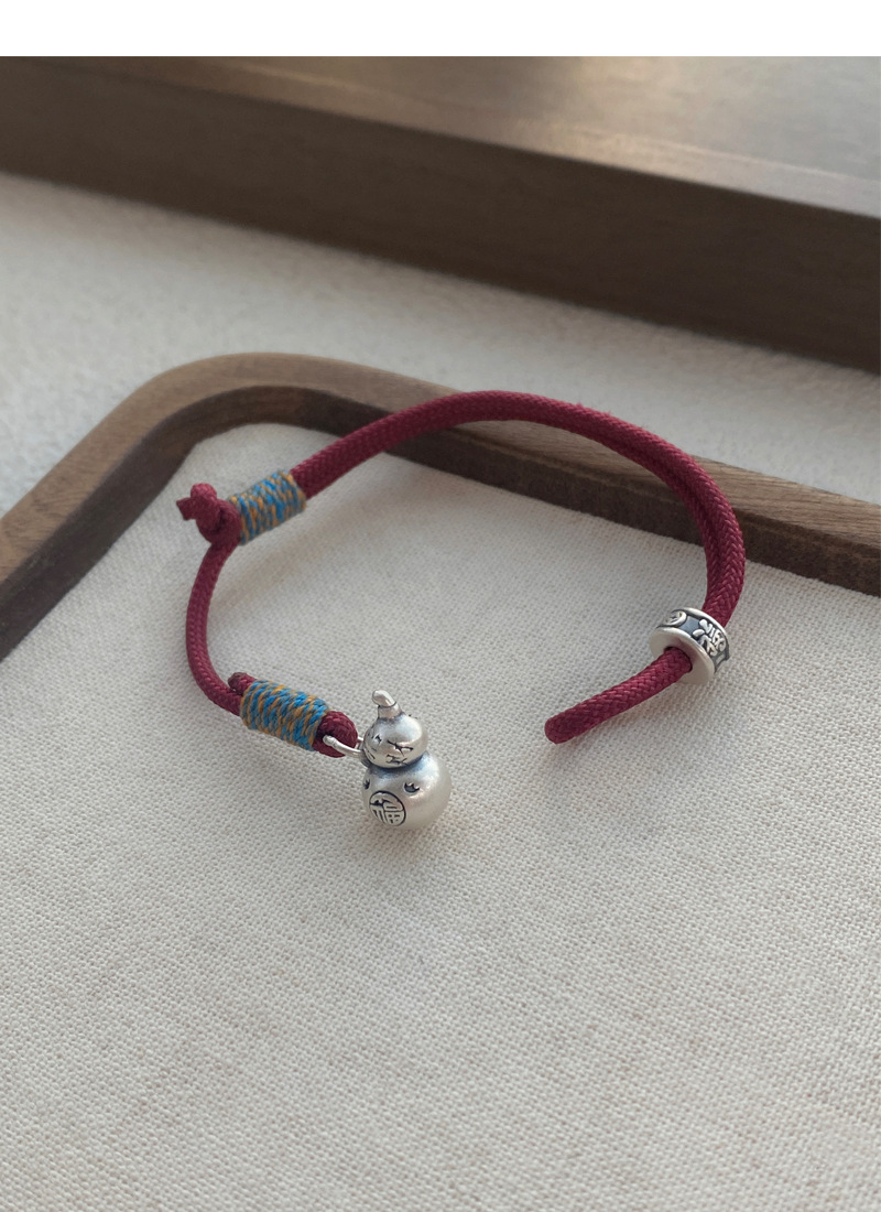 SATN122100007 S999足銀葫蘆紅繩手鏈女新中式國風設計復古手環簡約手工編織手飾