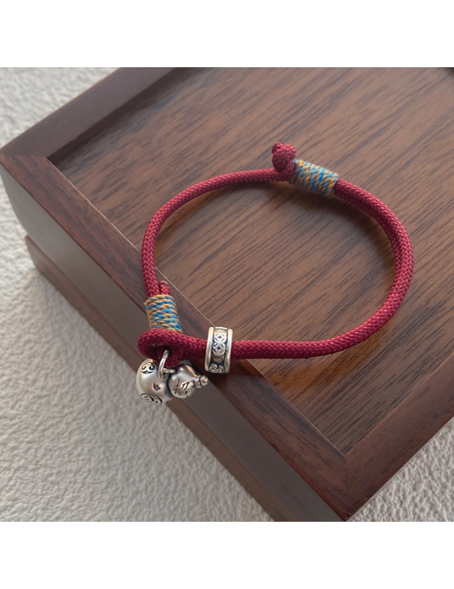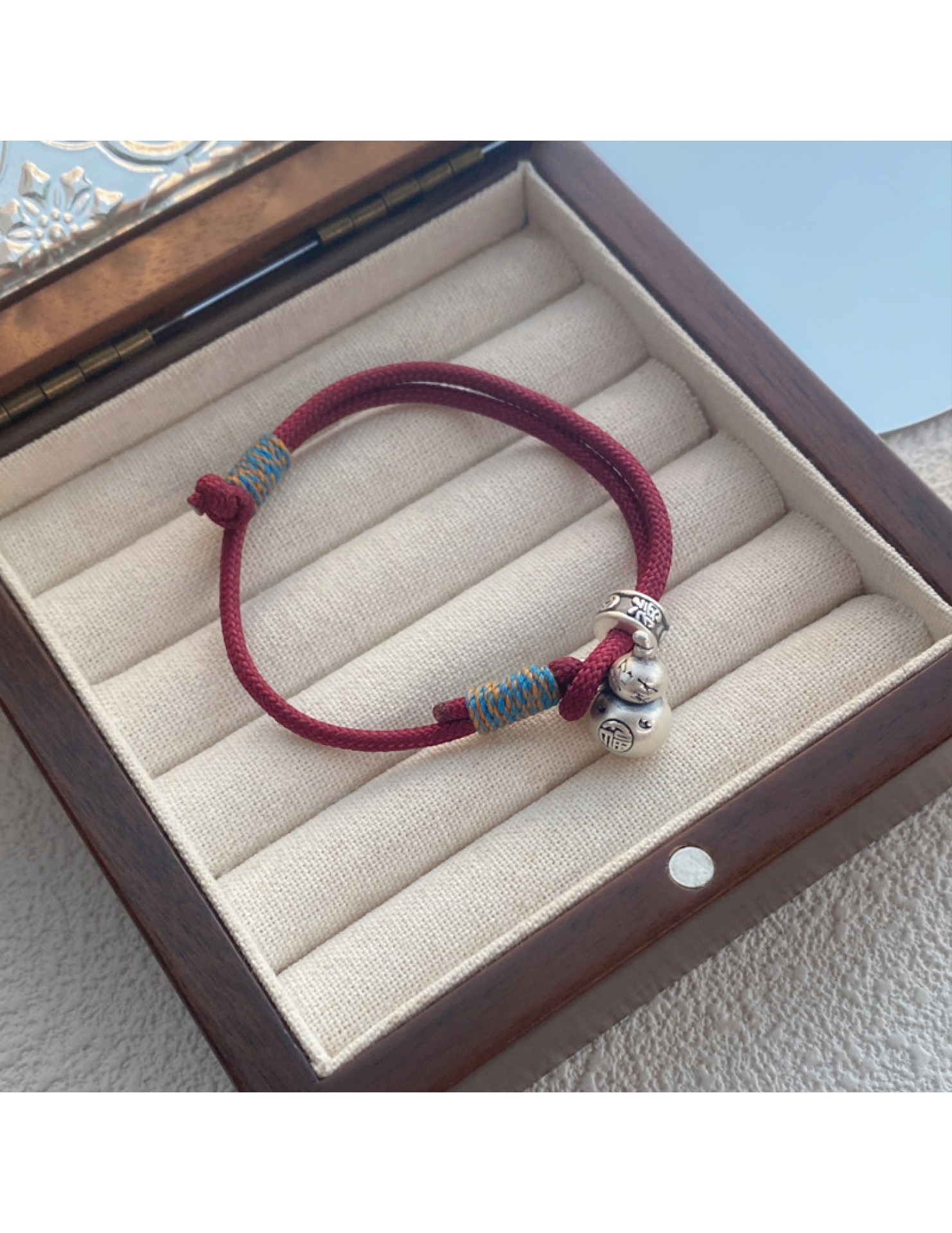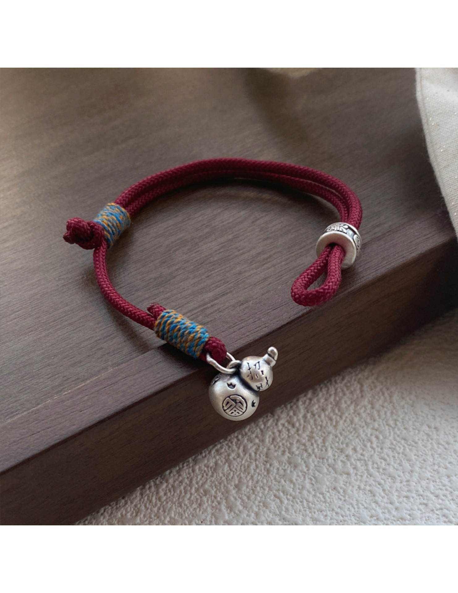 SATN122100007 S999足銀葫蘆紅繩手鏈女新中式國風設計復古手環簡約手工編織手飾