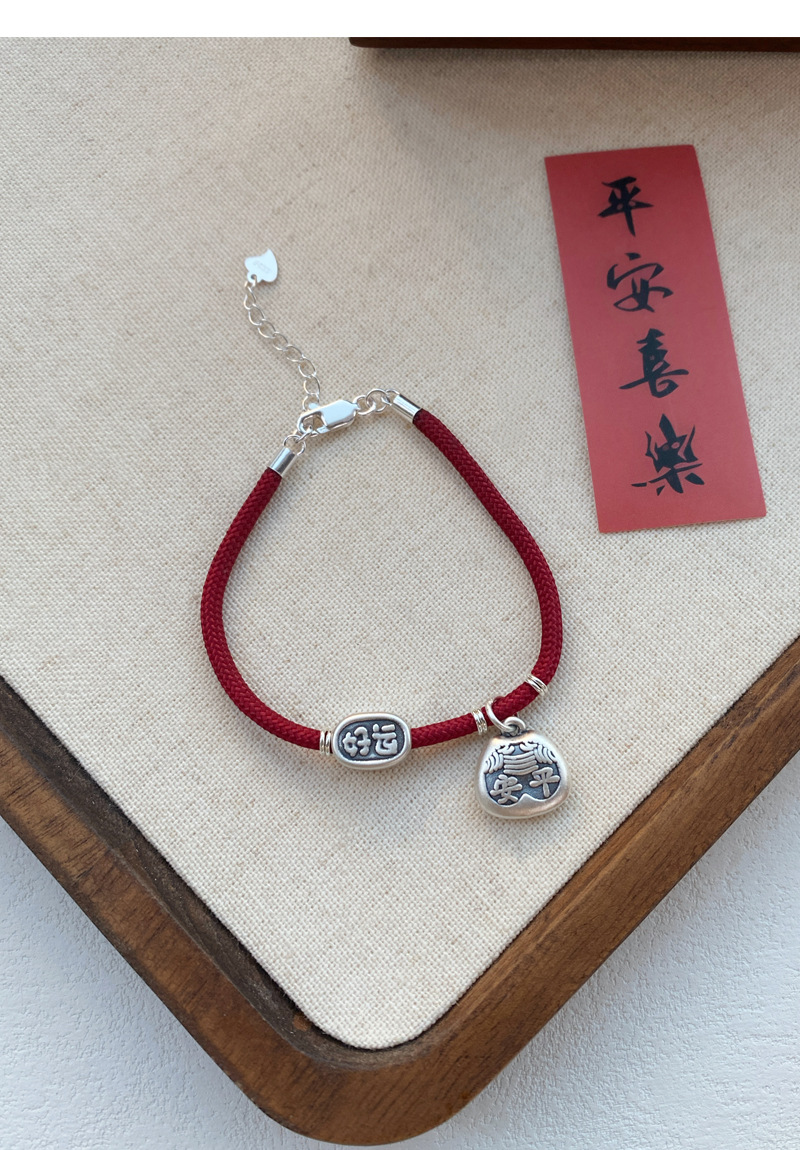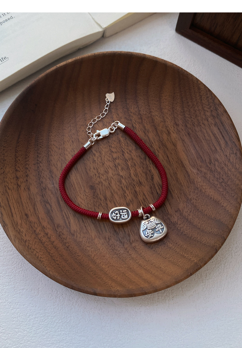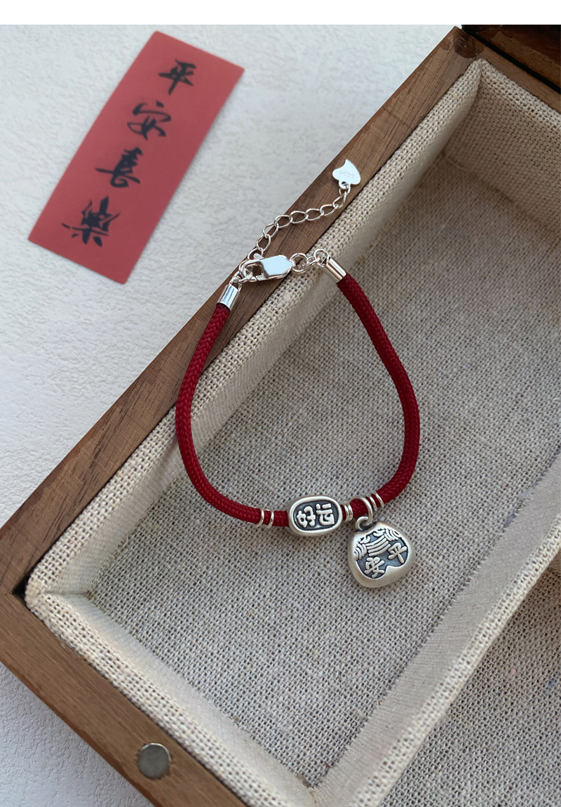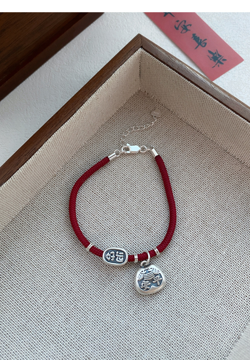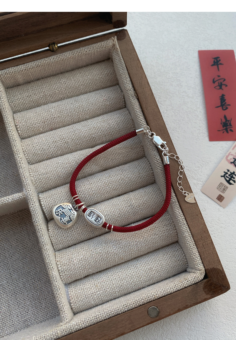 SATN122100009 S999足銀平安喜樂手鏈女新中式國風設計本命年好運連連紅繩手飾