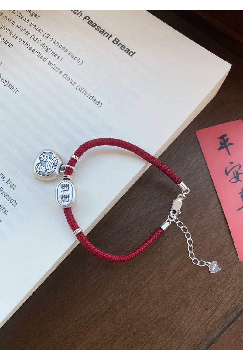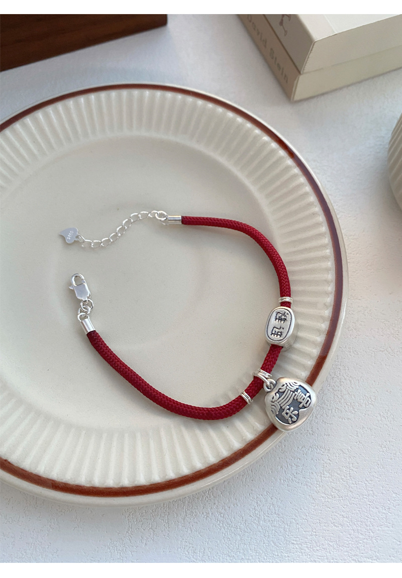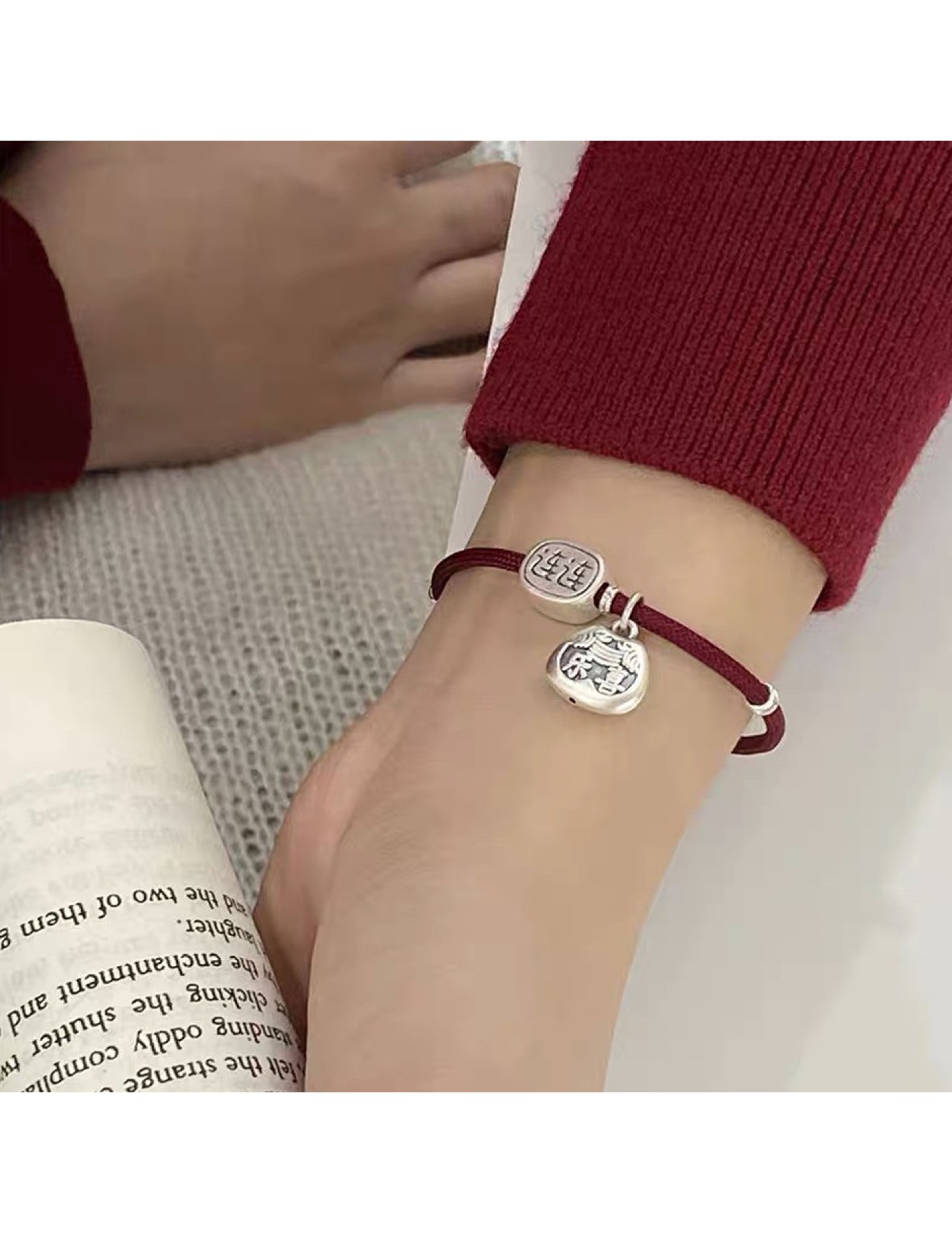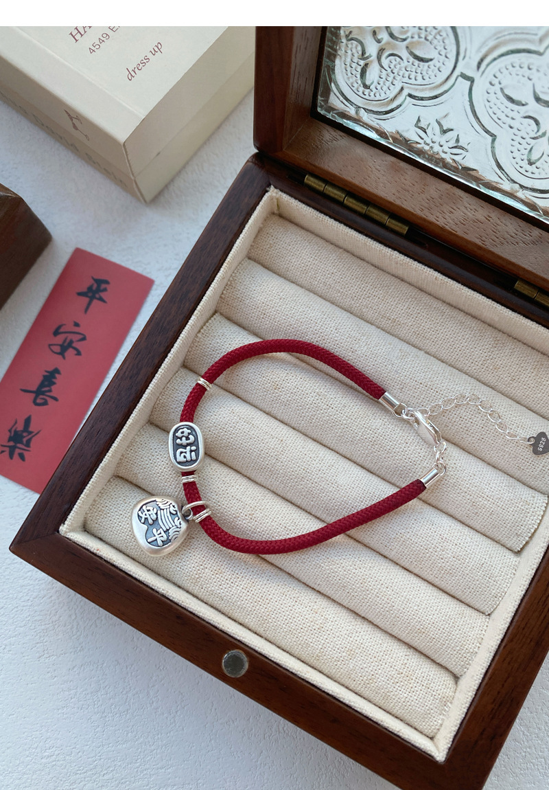 SATN122100009 S999足銀平安喜樂手鏈女新中式國風設計本命年好運連連紅繩手飾
