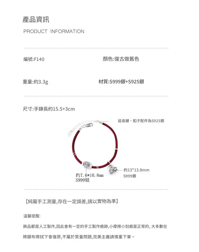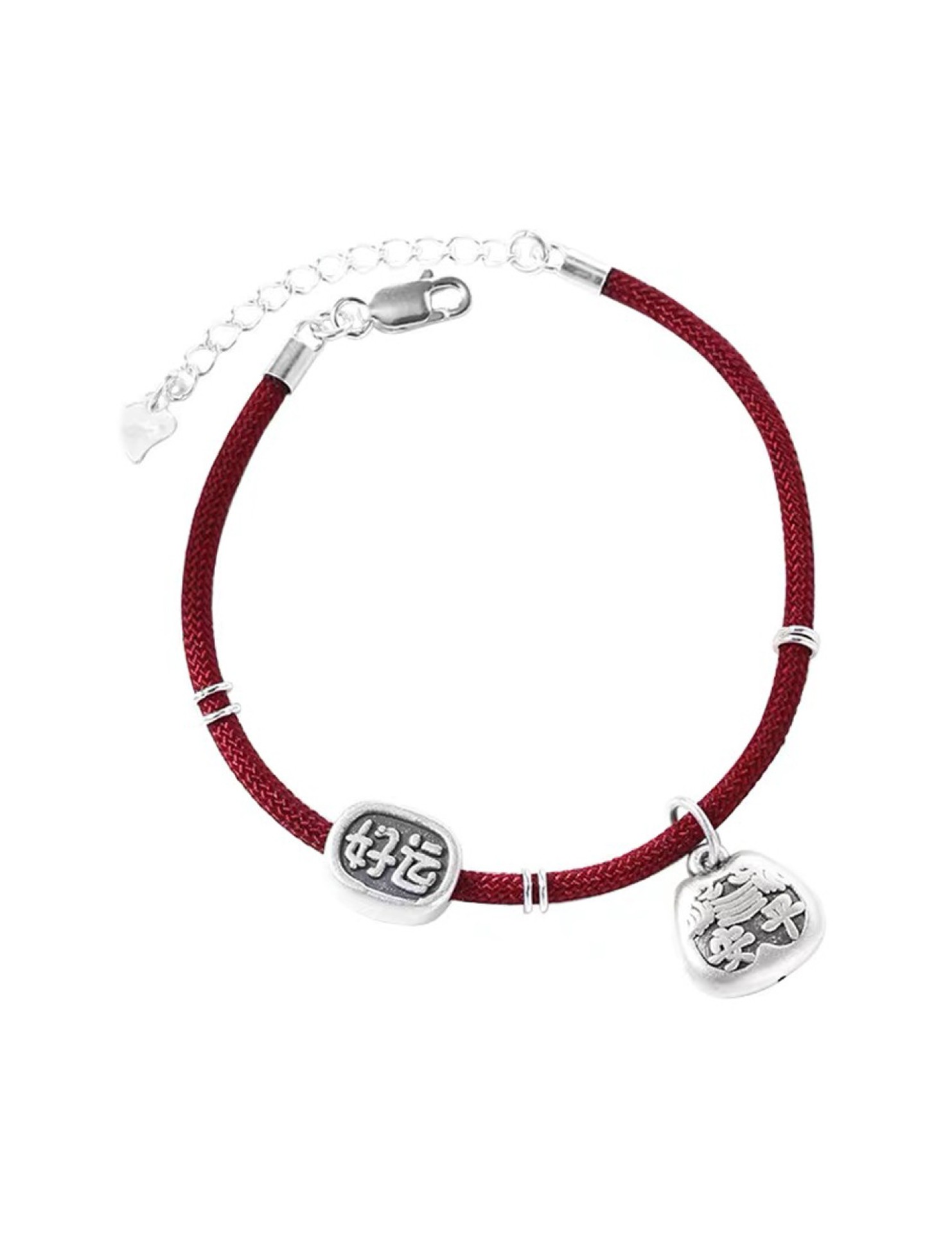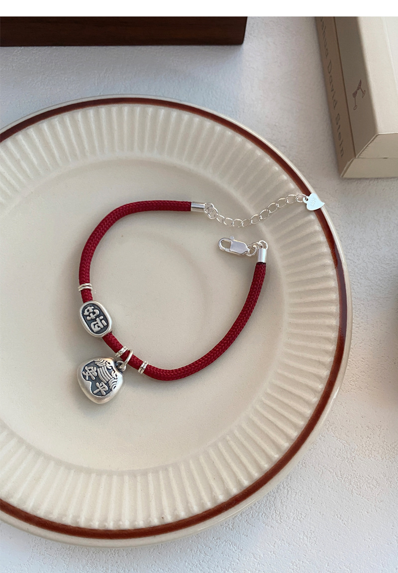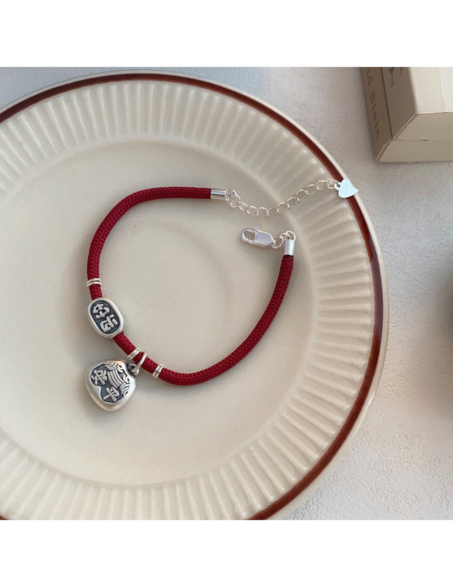 SATN122100009 S999足銀平安喜樂手鏈女新中式國風設計本命年好運連連紅繩手飾