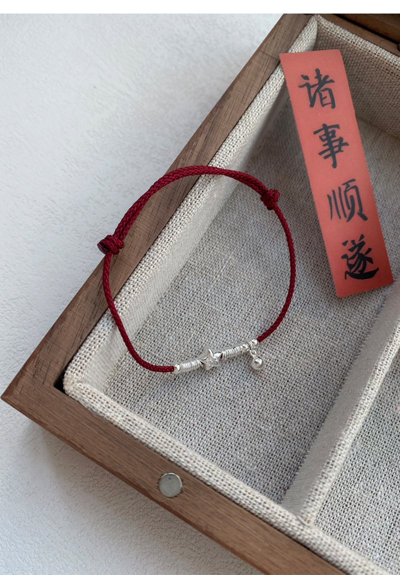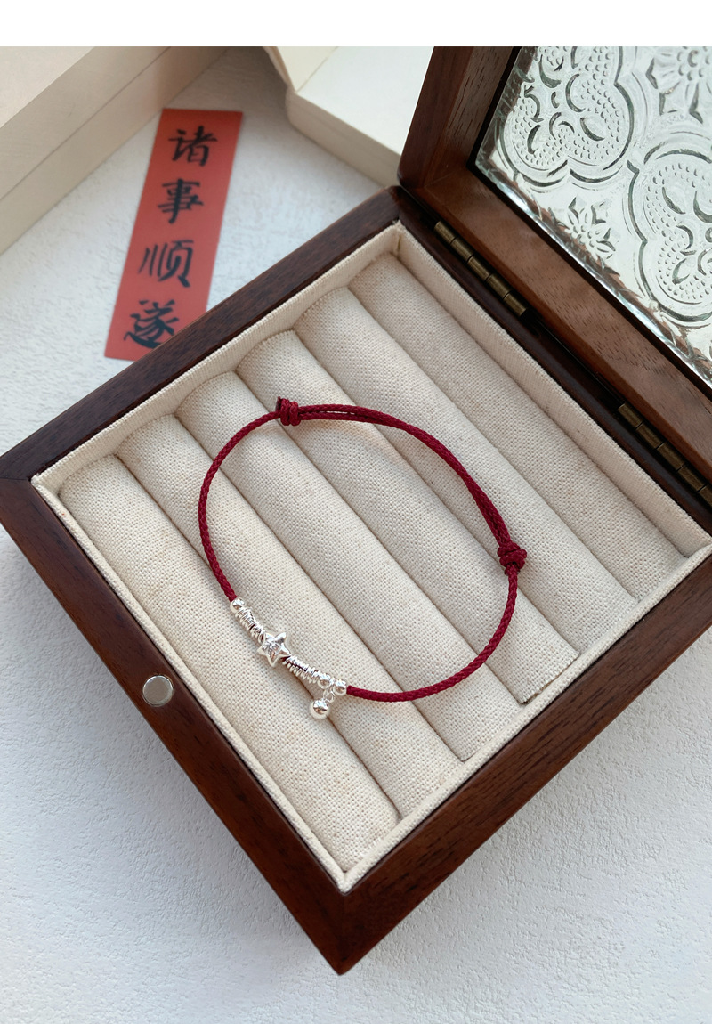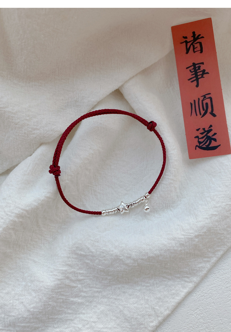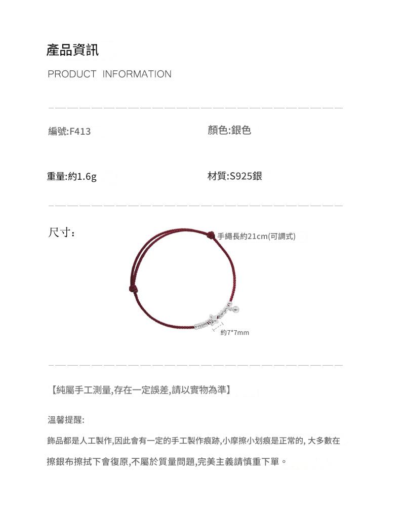 SATN122100012 S925純銀小福星盤纏紅繩手鏈女本命年氣質百搭手繩新年氛圍感手飾