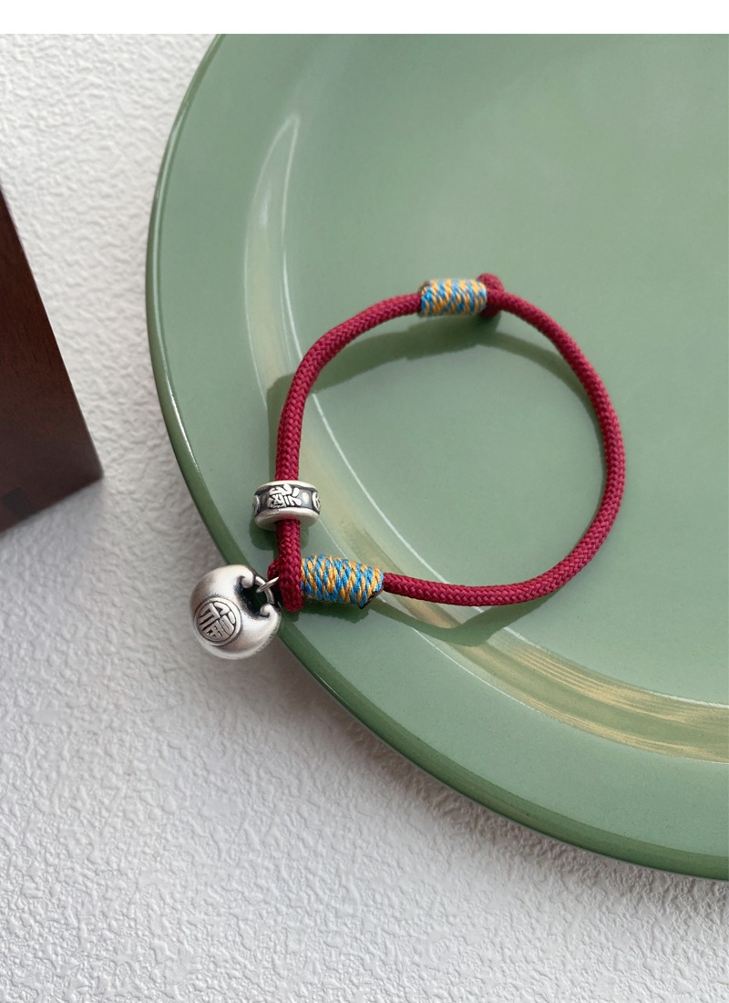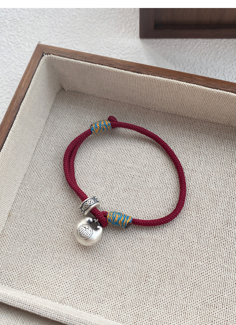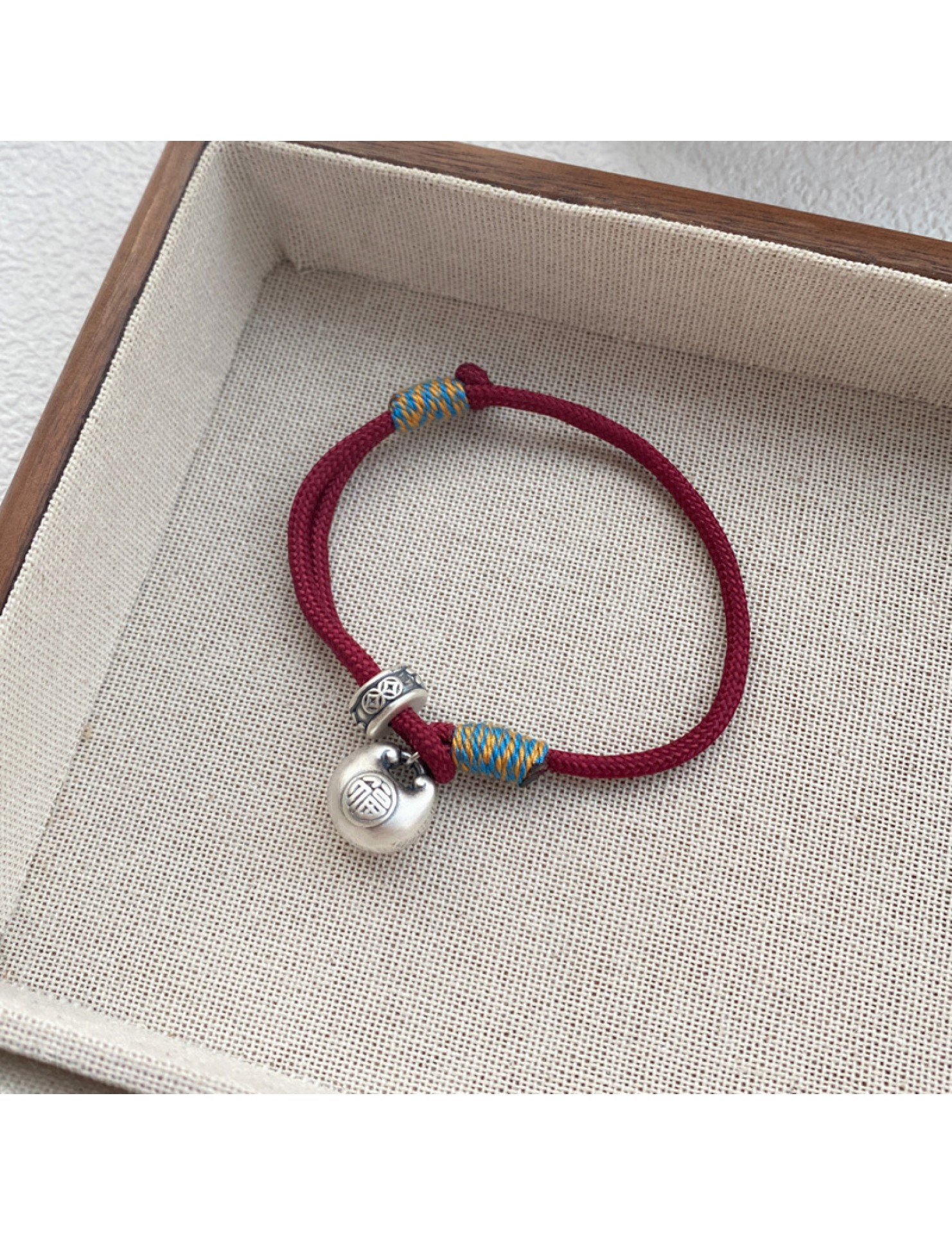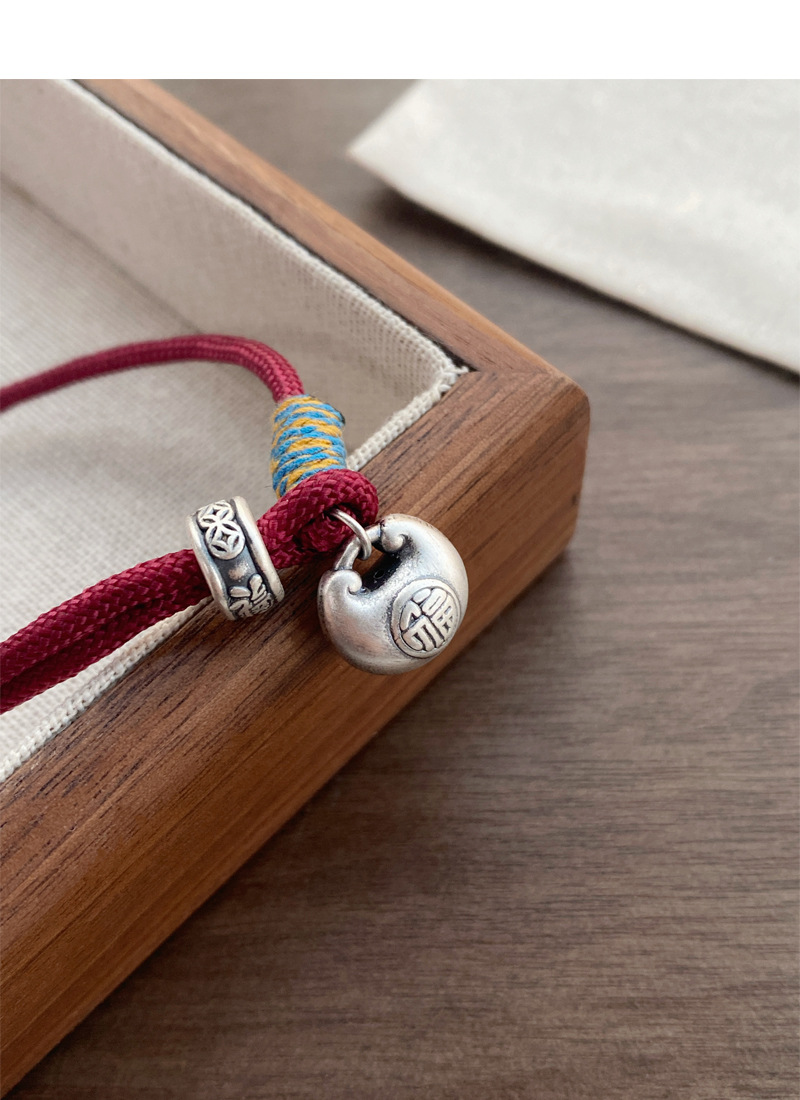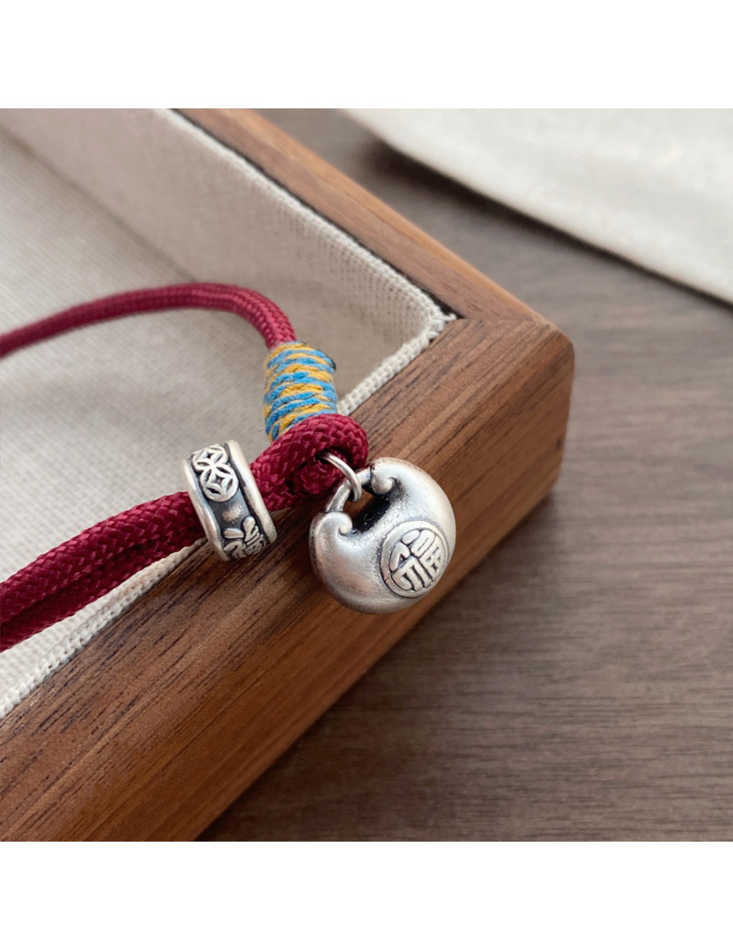 SATN122100014 S999足銀小胖福袋紅繩手鏈女新中式國風設計銀坨坨本命年編織手鏈