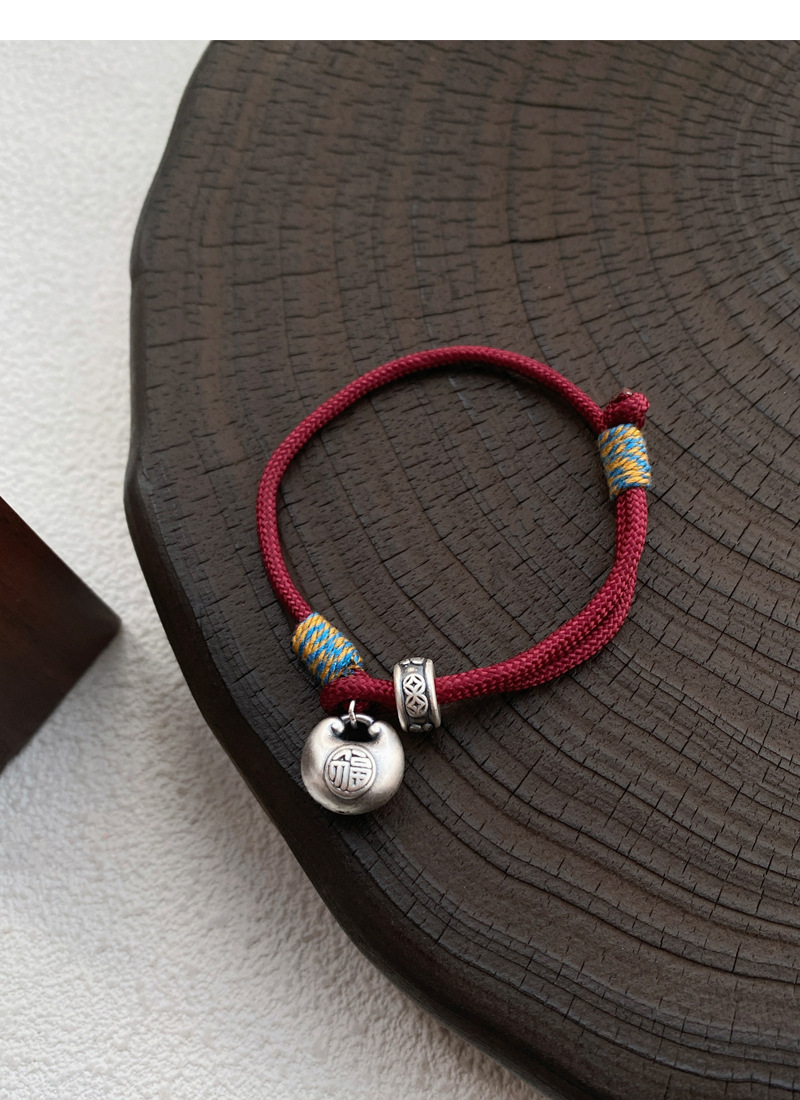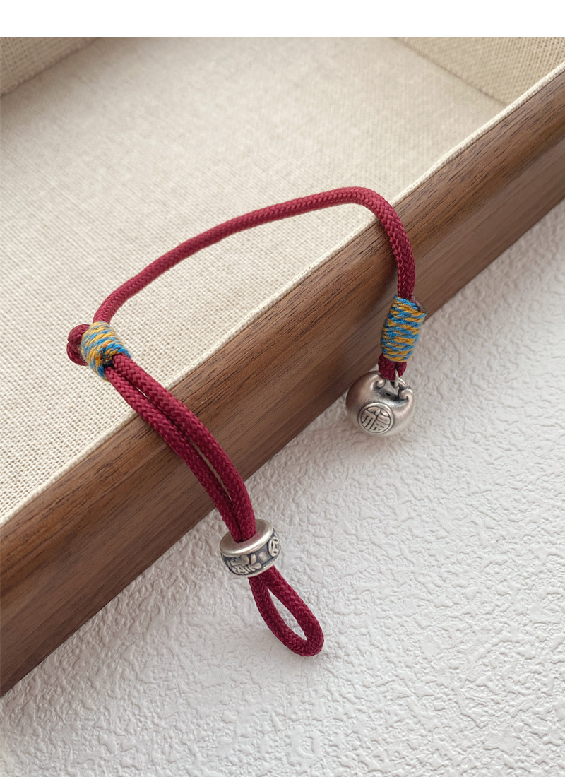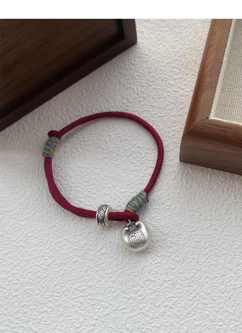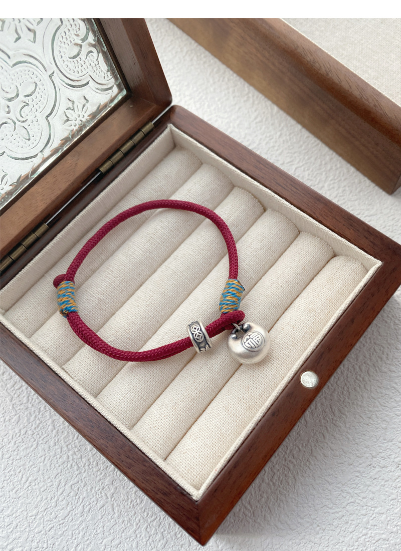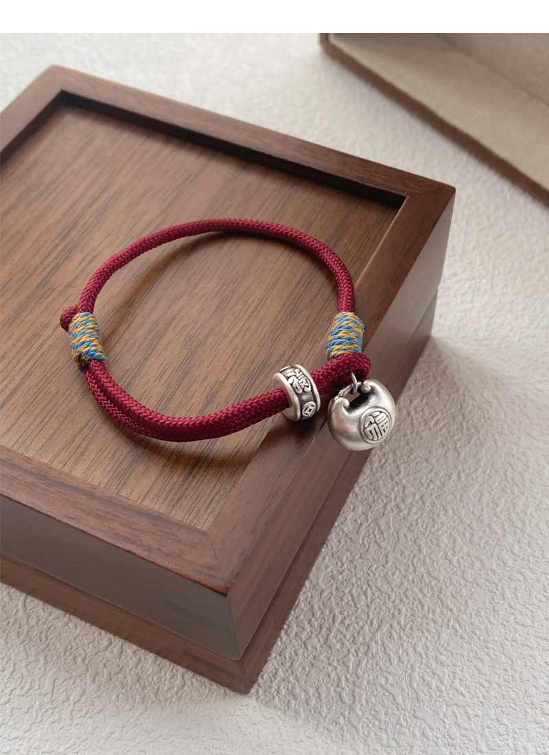 SATN122100014 S999足銀小胖福袋紅繩手鏈女新中式國風設計銀坨坨本命年編織手鏈