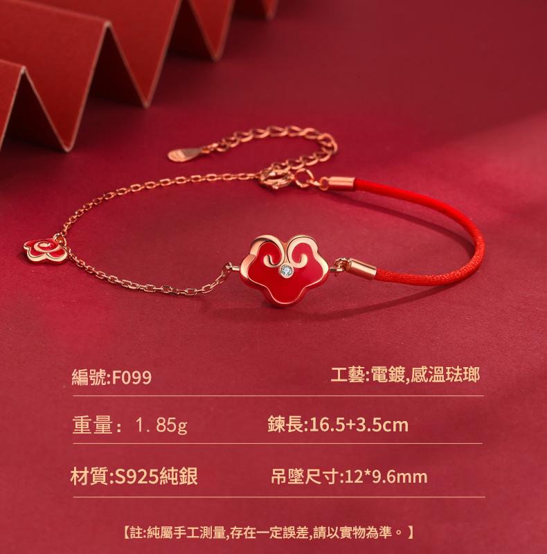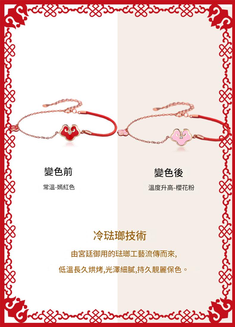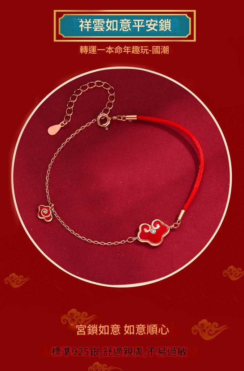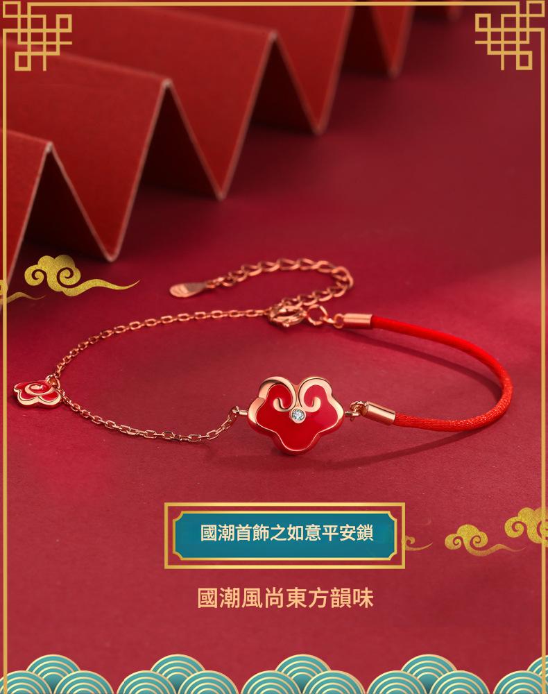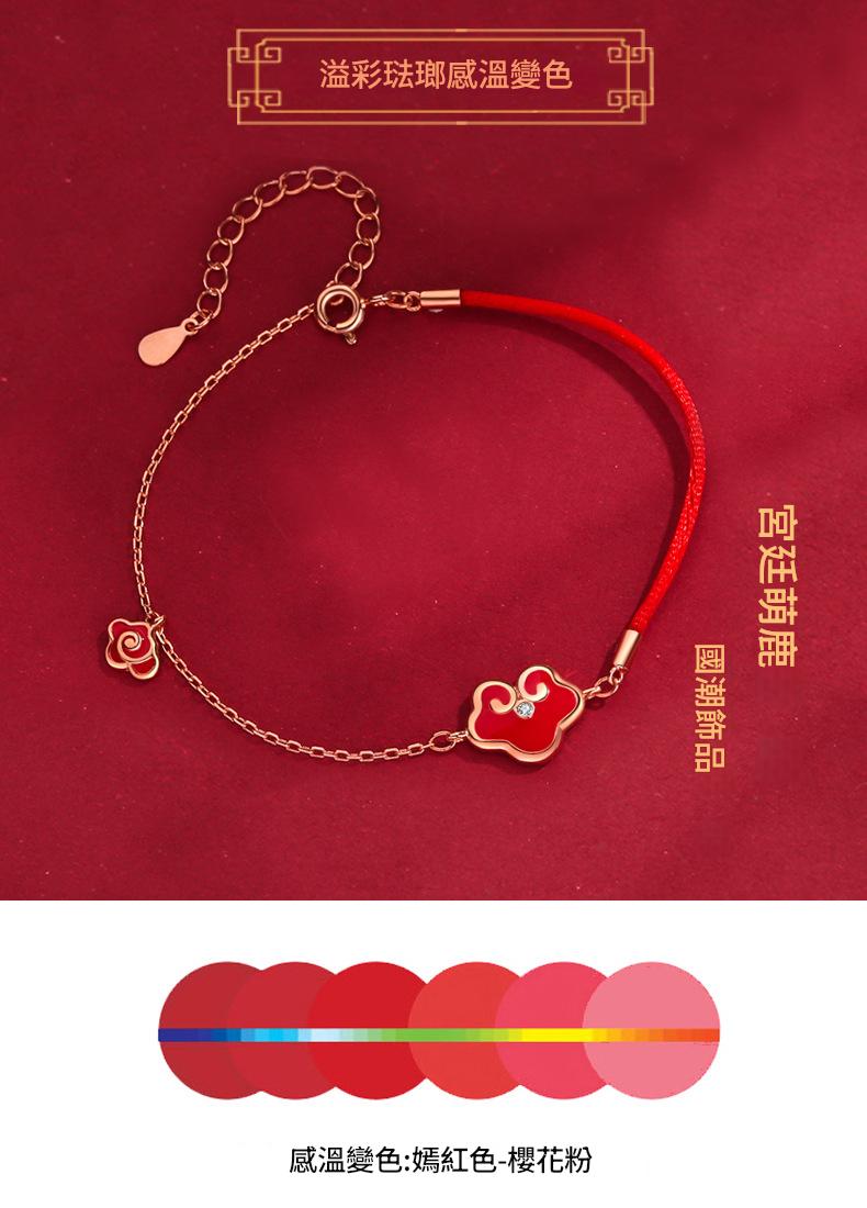 SATN122100017 S925純銀感溫變色平安鎖手鏈女復古宮廷風如意紅繩手鏈新年禮物