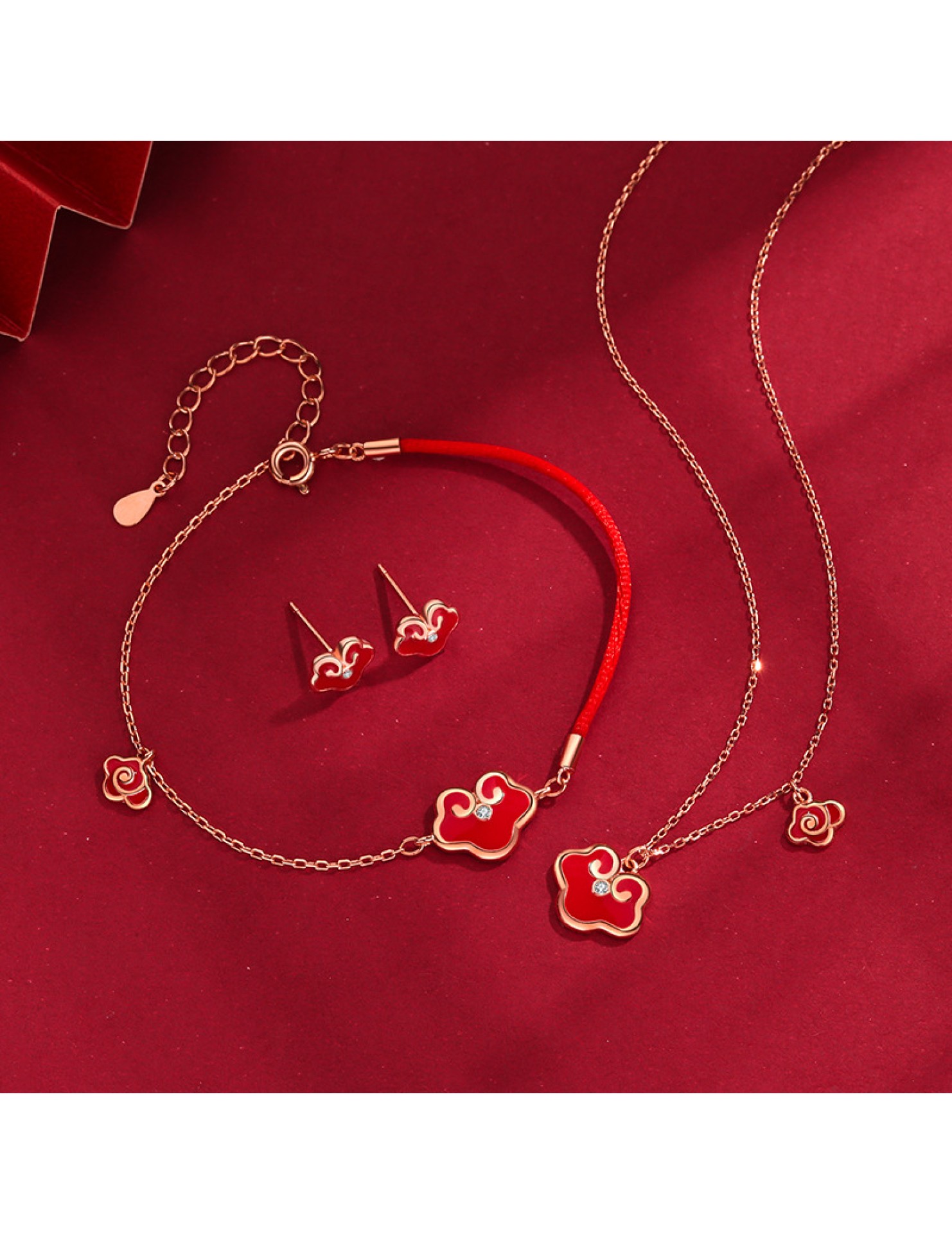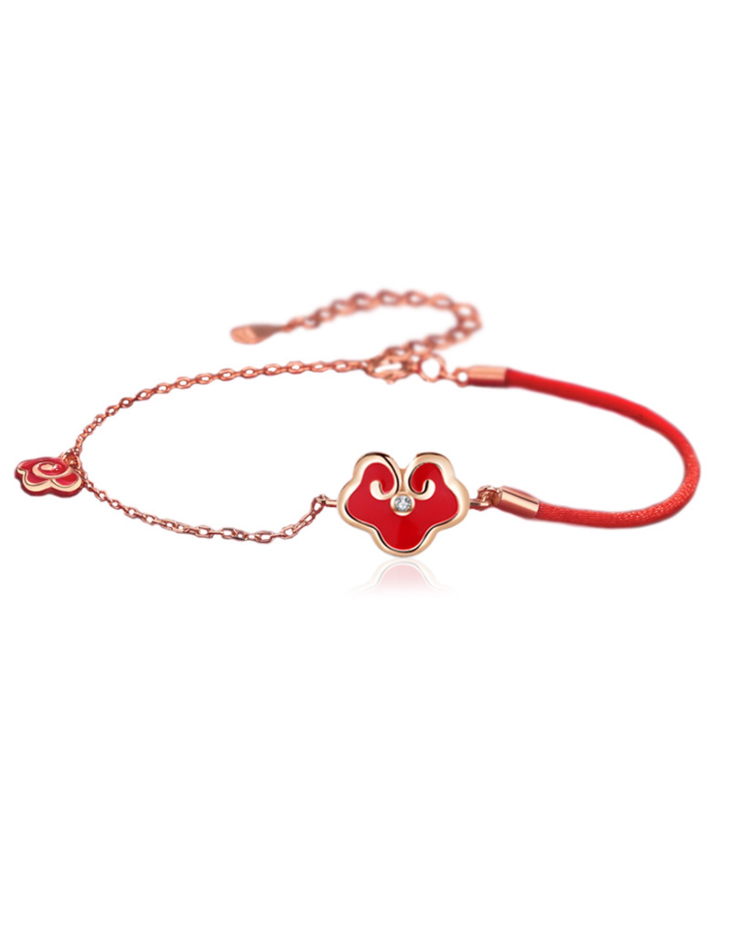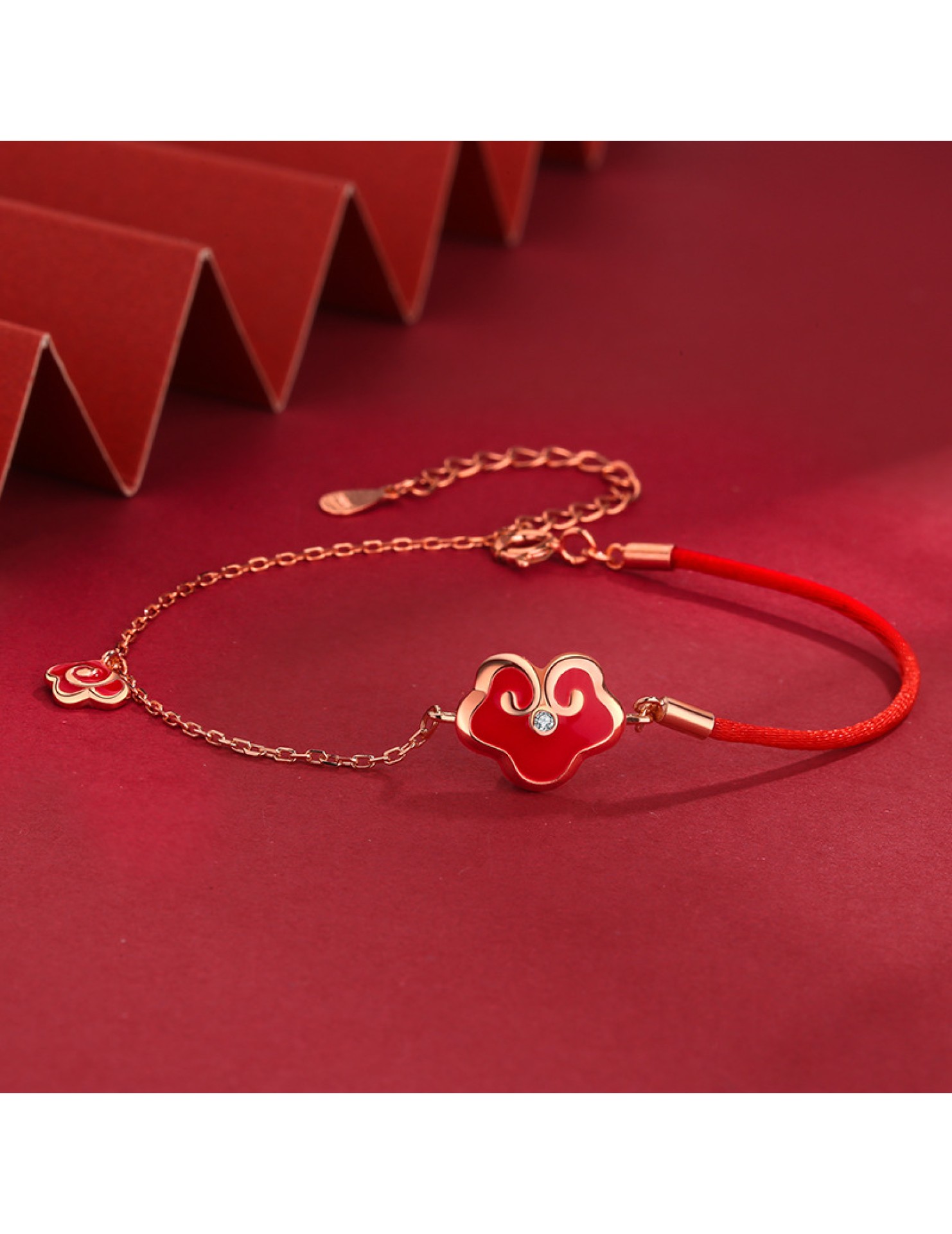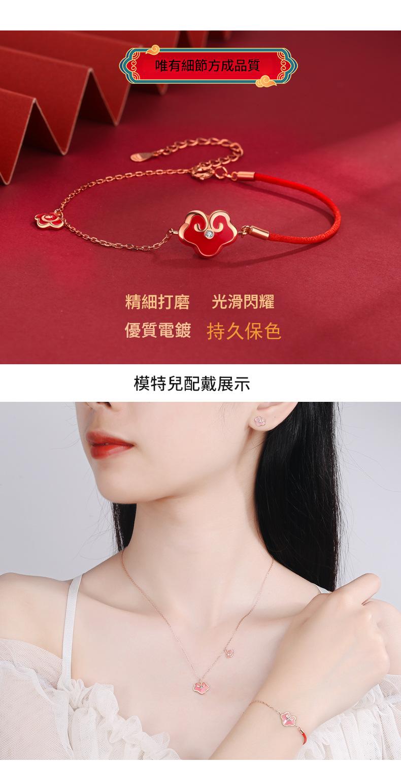 SATN122100017 S925純銀感溫變色平安鎖手鏈女復古宮廷風如意紅繩手鏈新年禮物