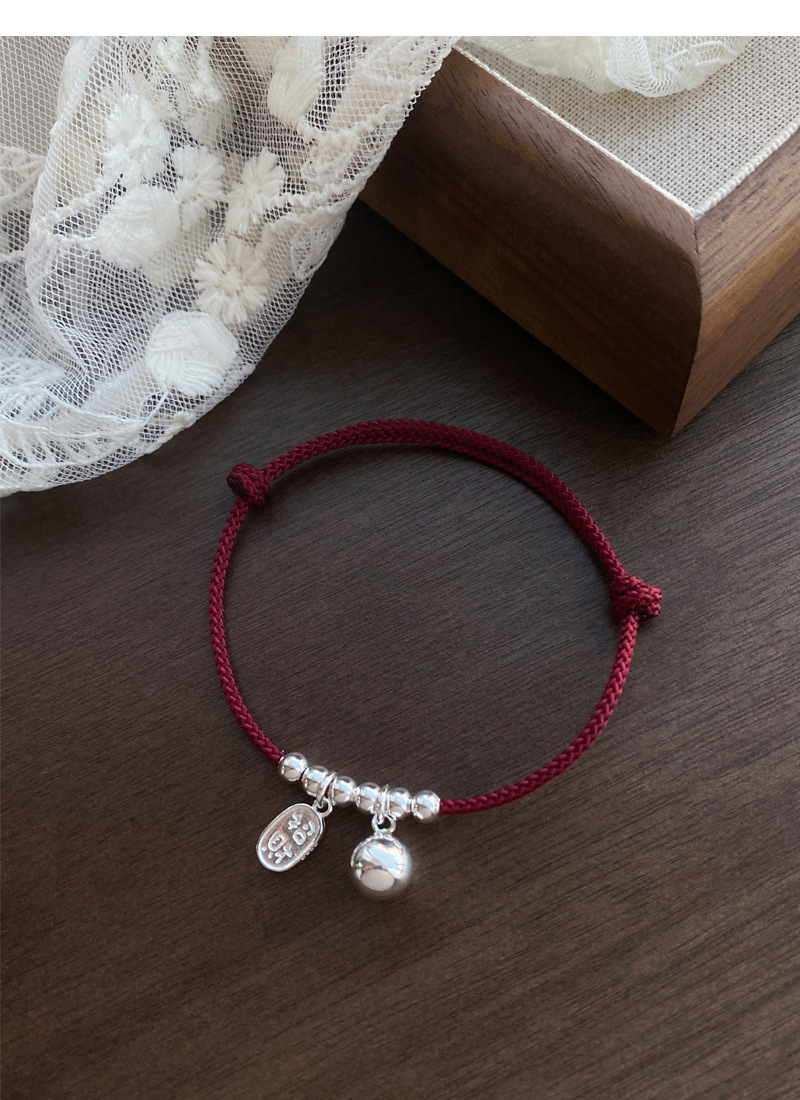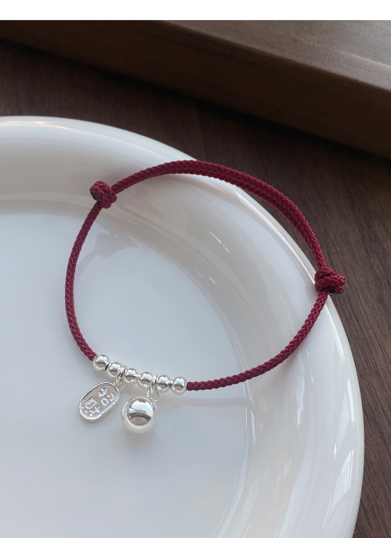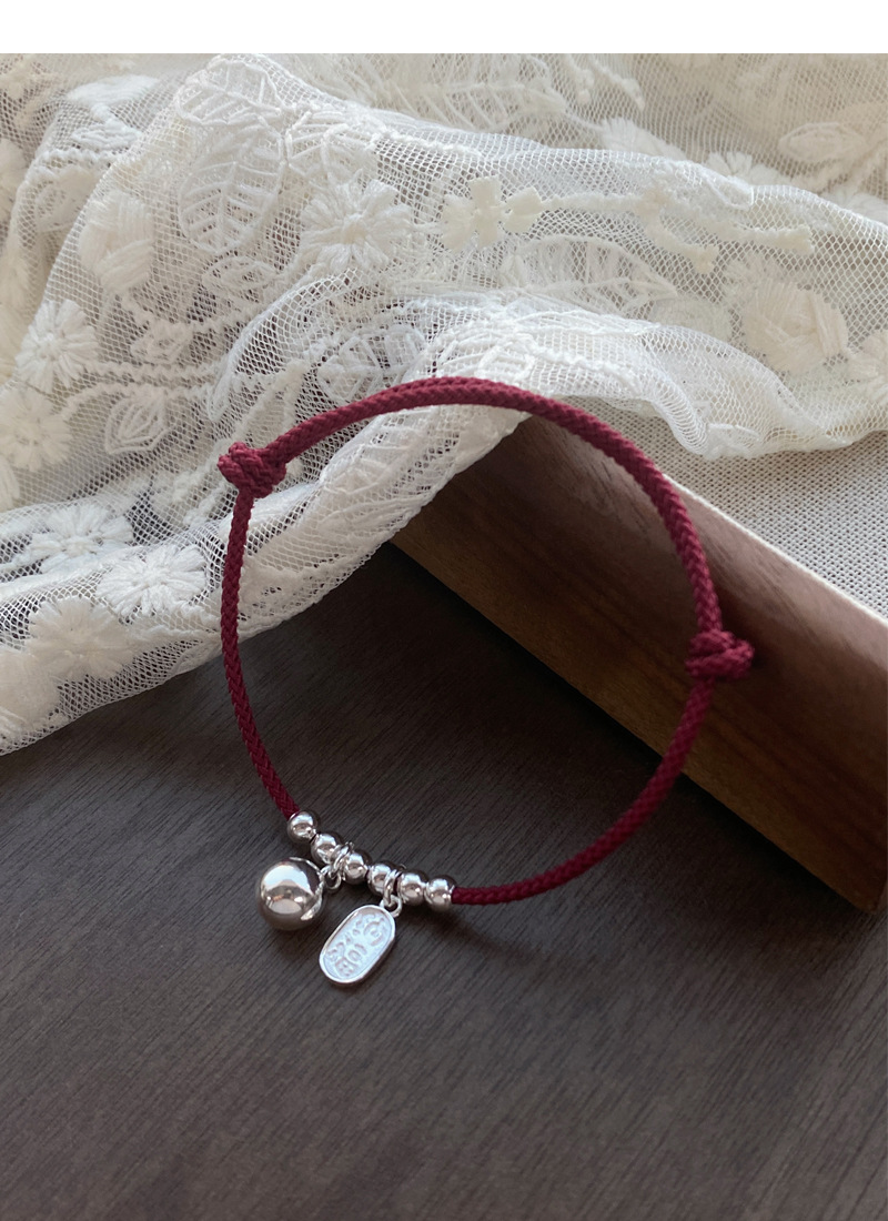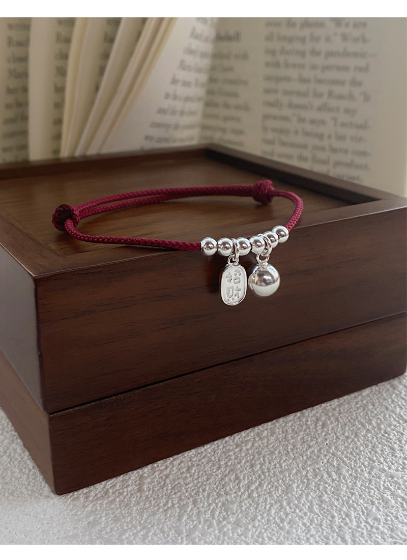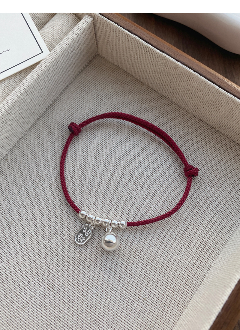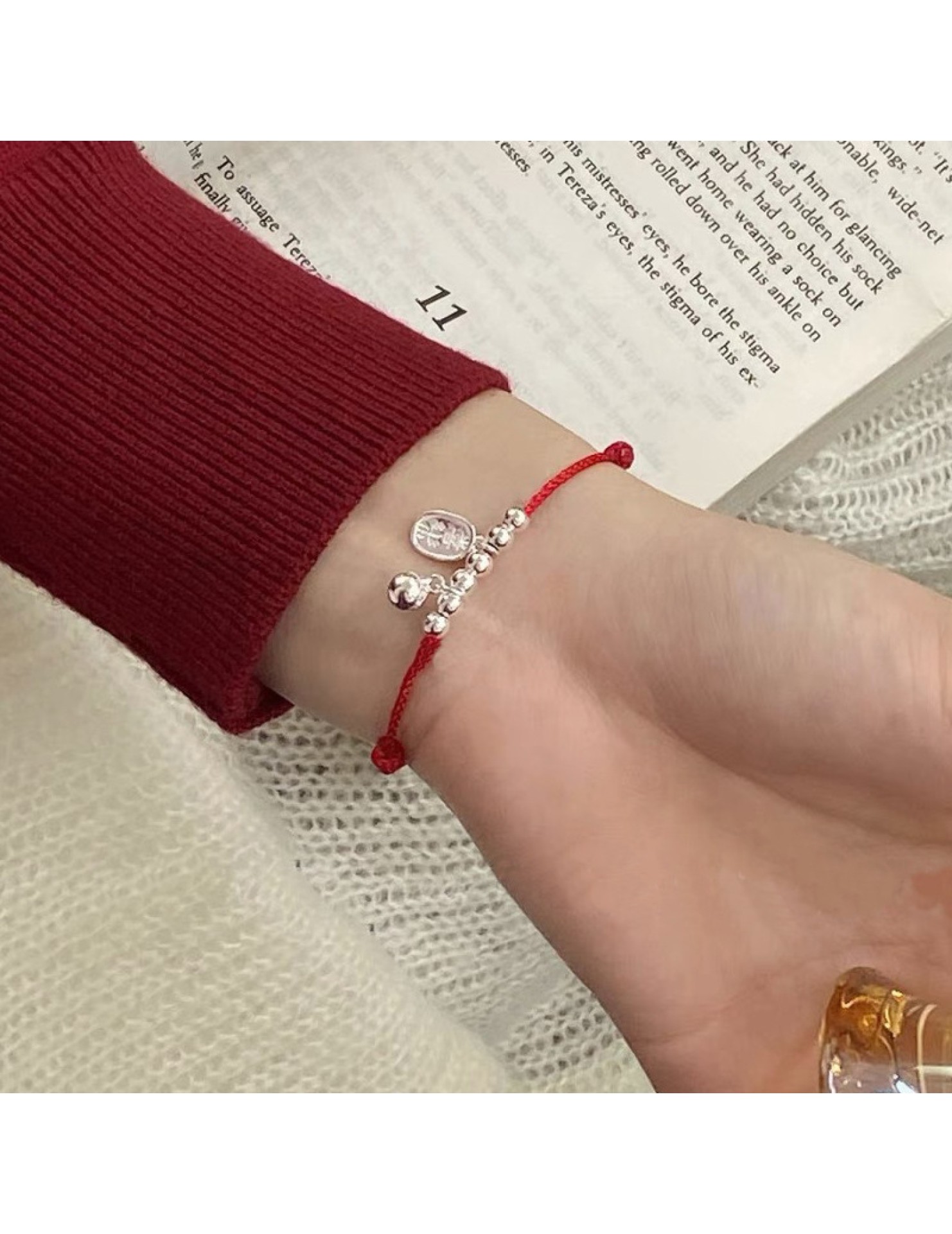 SATN122100022 S925純銀招財納福圓珠紅繩手鏈女簡約輕奢新中式國風設計串珠手環