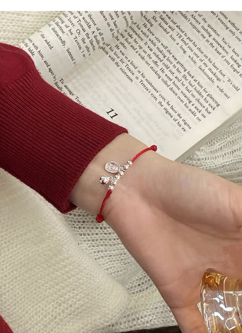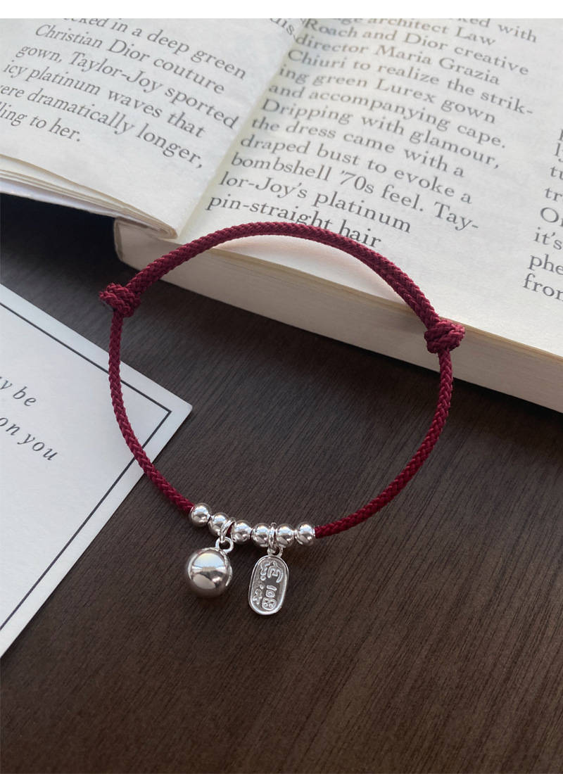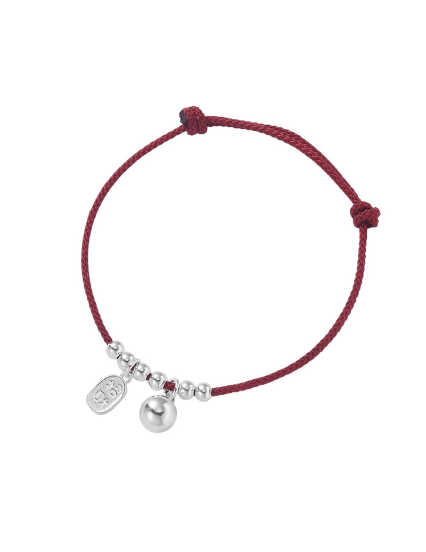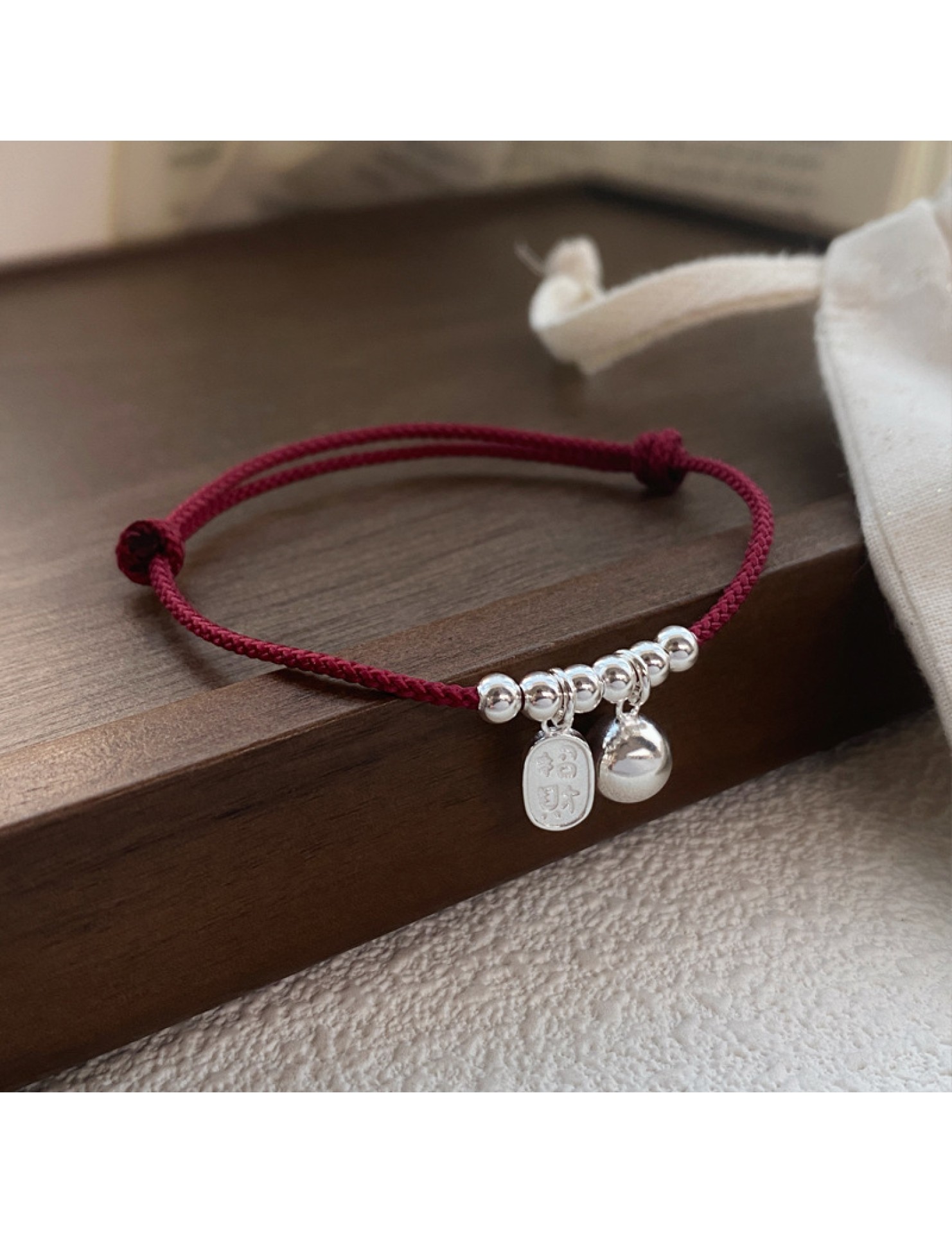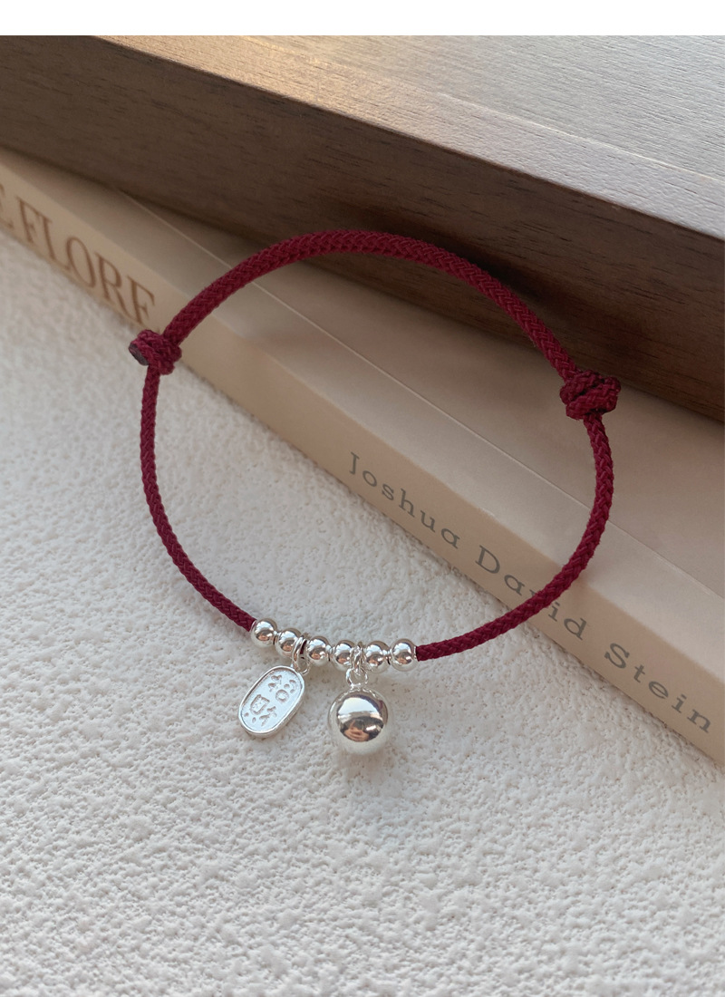 SATN122100022 S925純銀招財納福圓珠紅繩手鏈女簡約輕奢新中式國風設計串珠手環