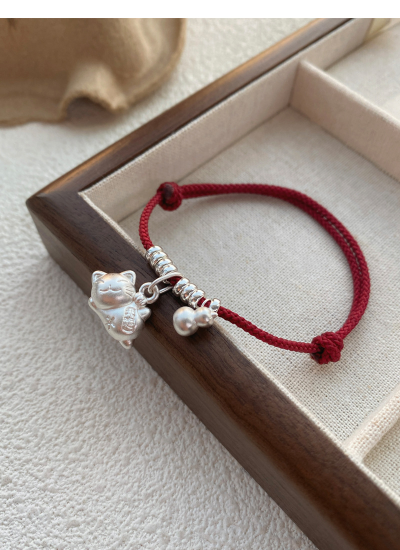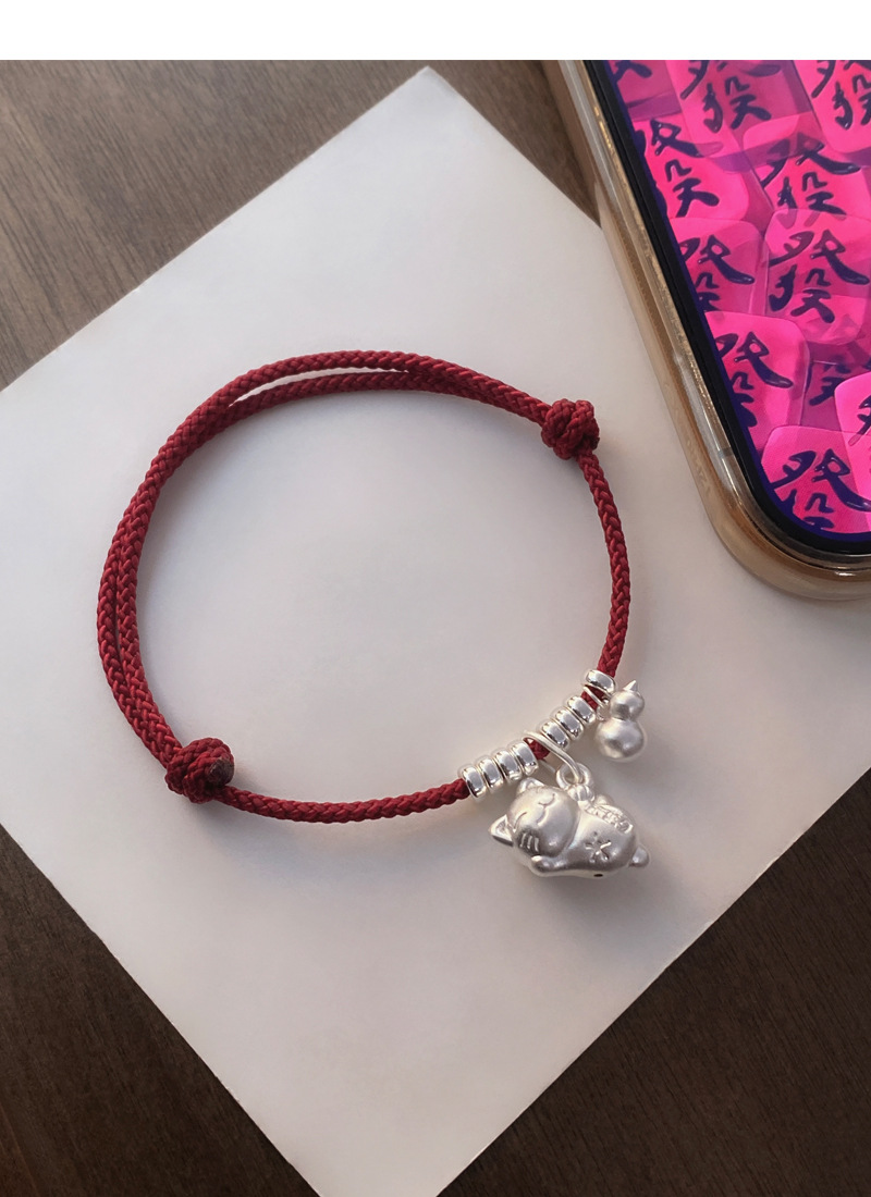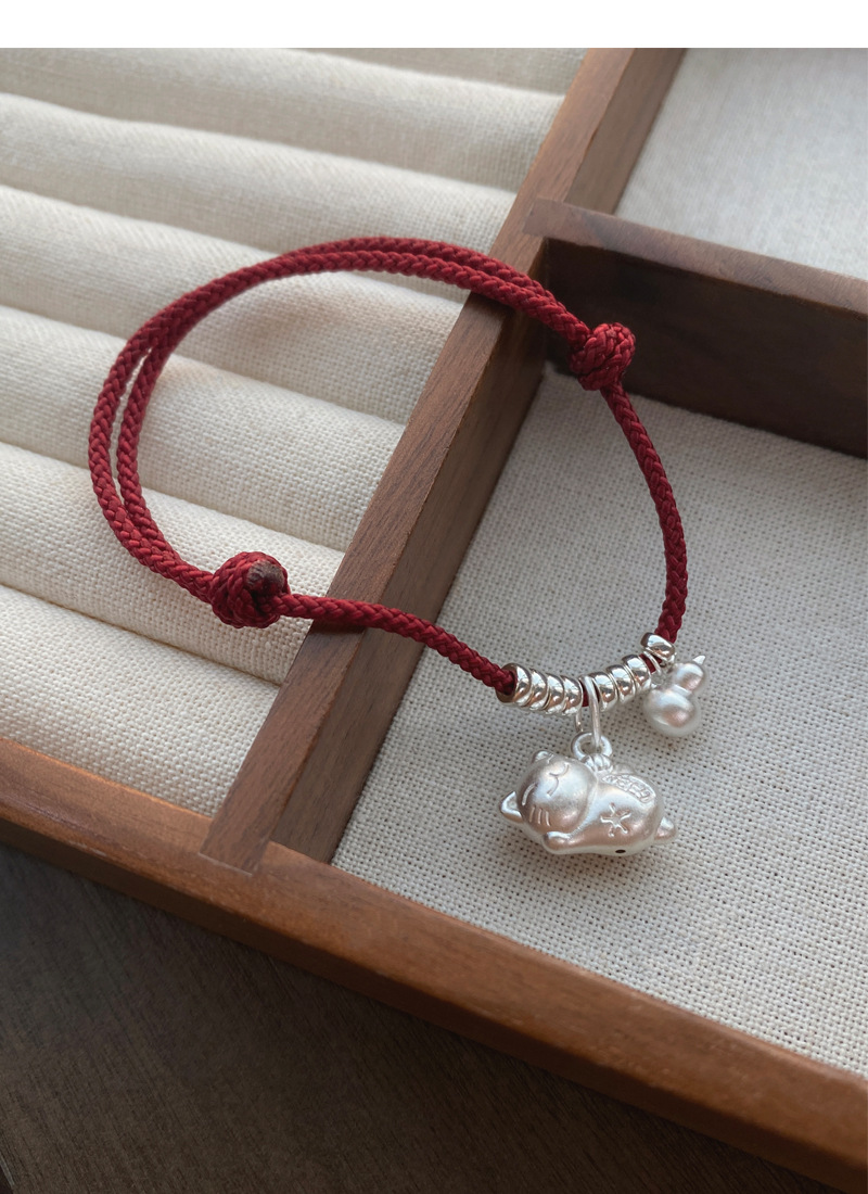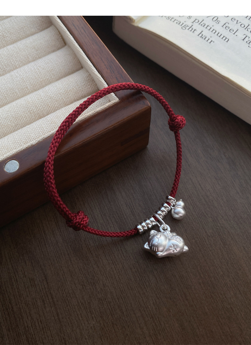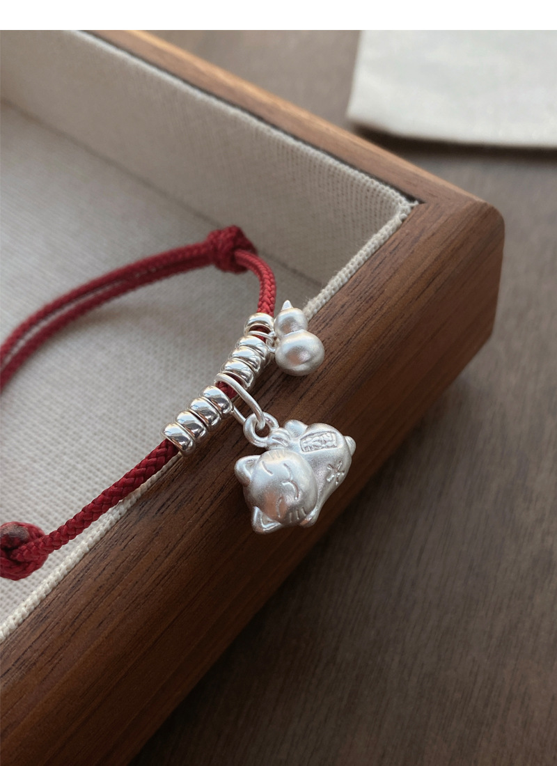 SATN122100024 S925純銀招財貓咪葫蘆紅繩手鏈輕奢小眾精致國風新年創意編織手鏈