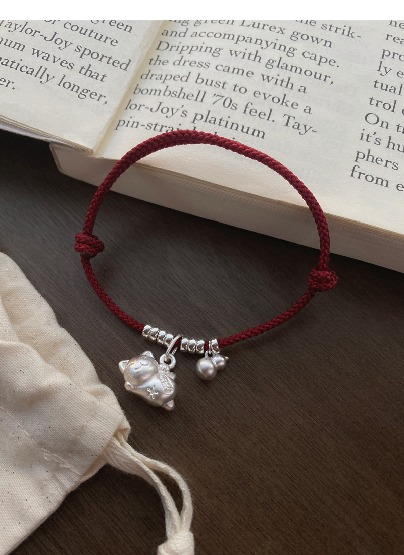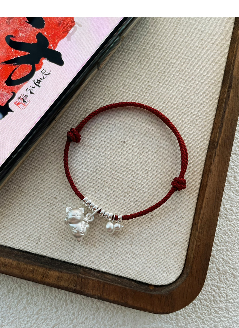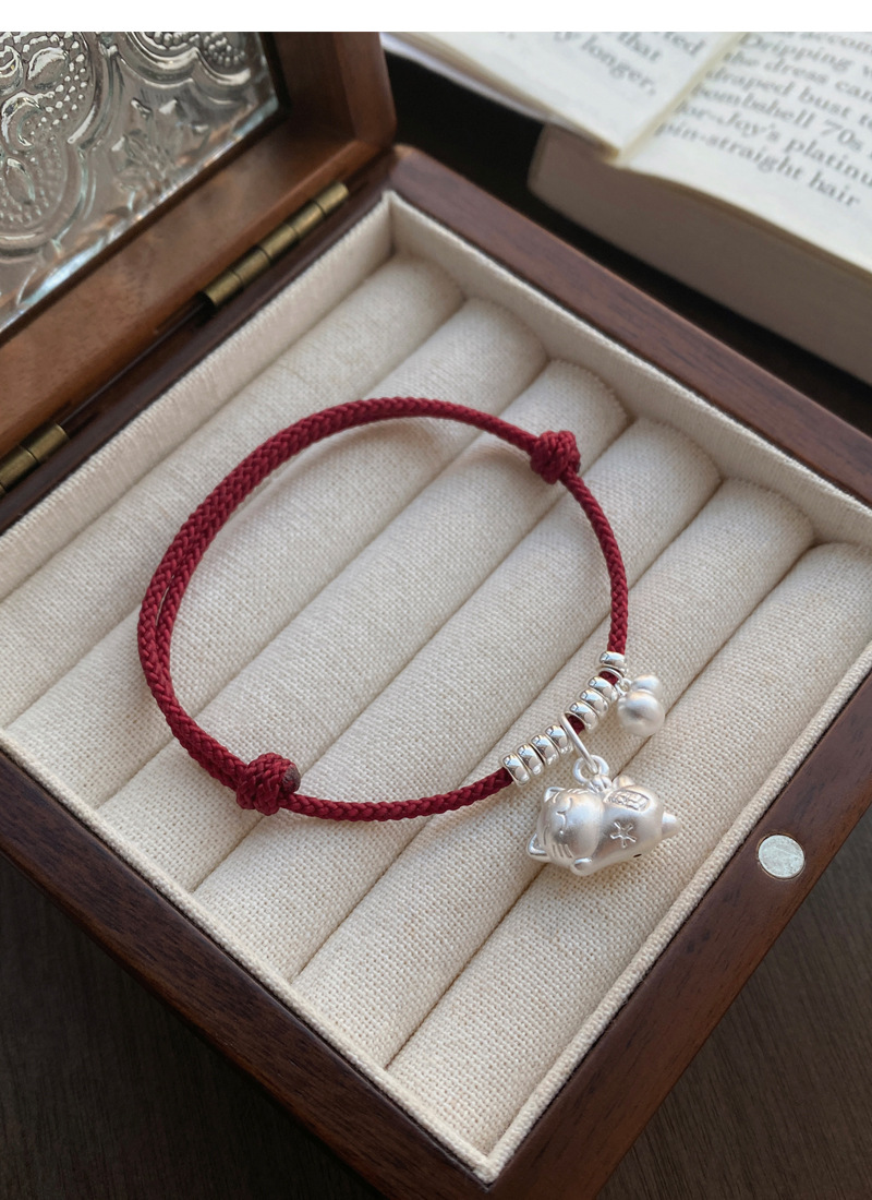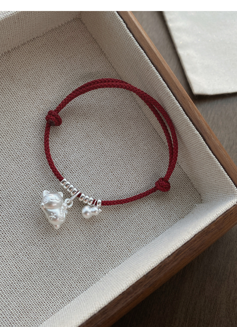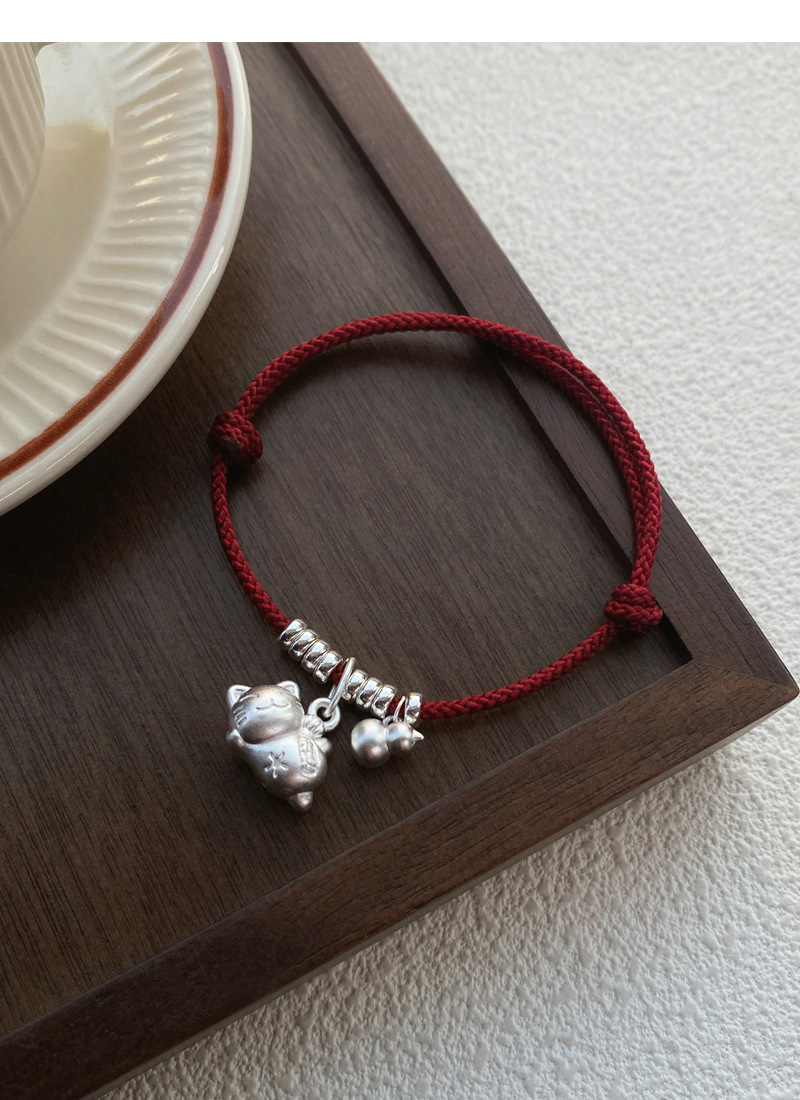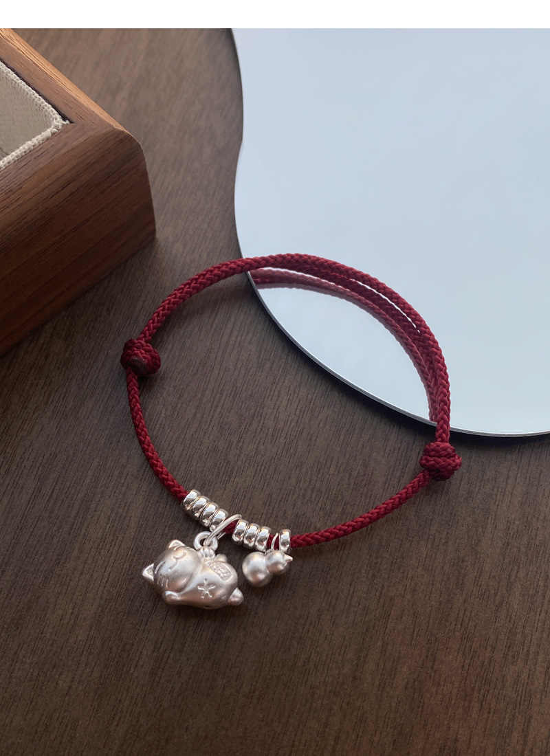 SATN122100024 S925純銀招財貓咪葫蘆紅繩手鏈輕奢小眾精致國風新年創意編織手鏈