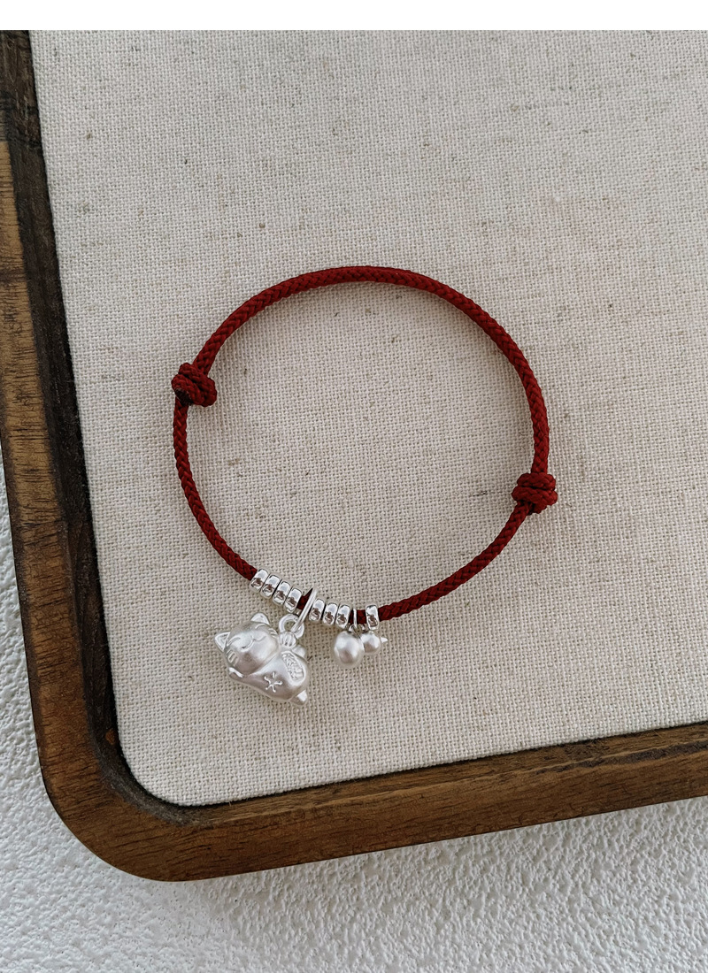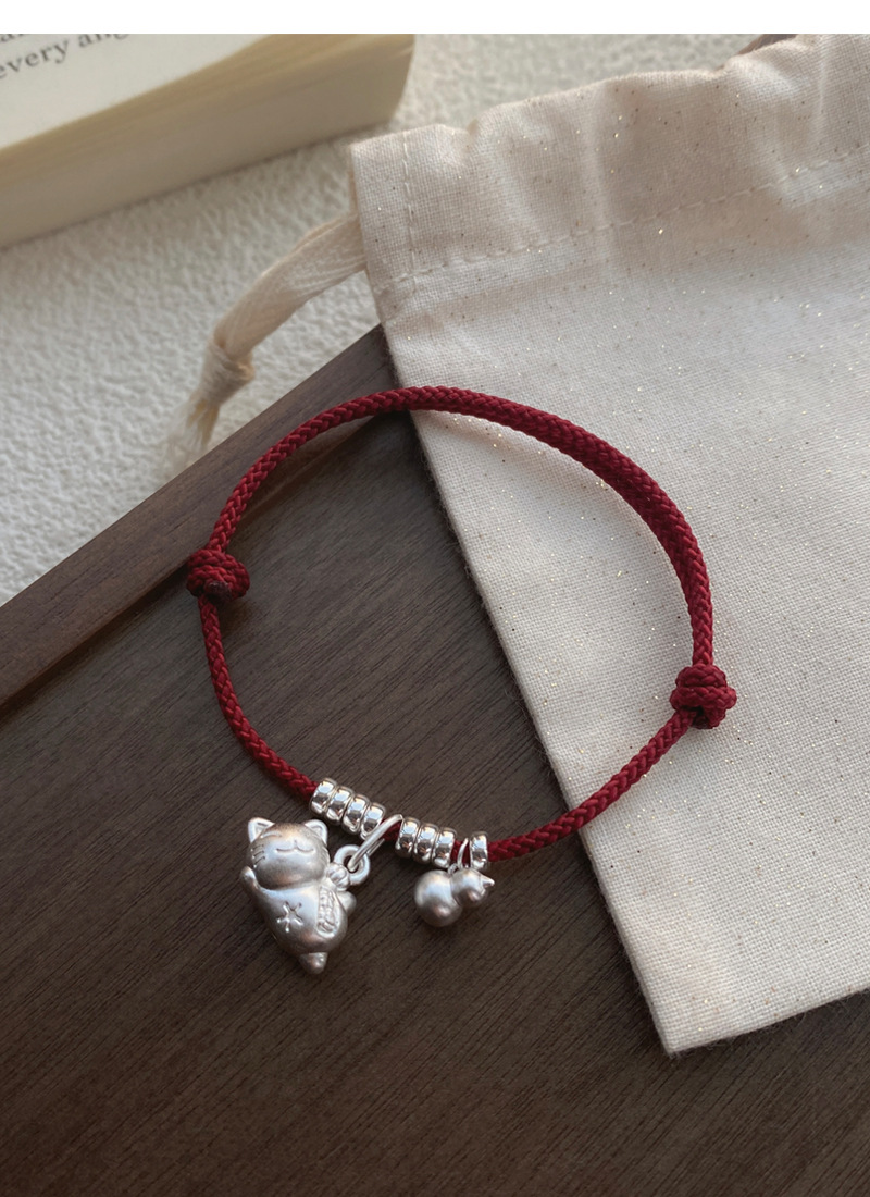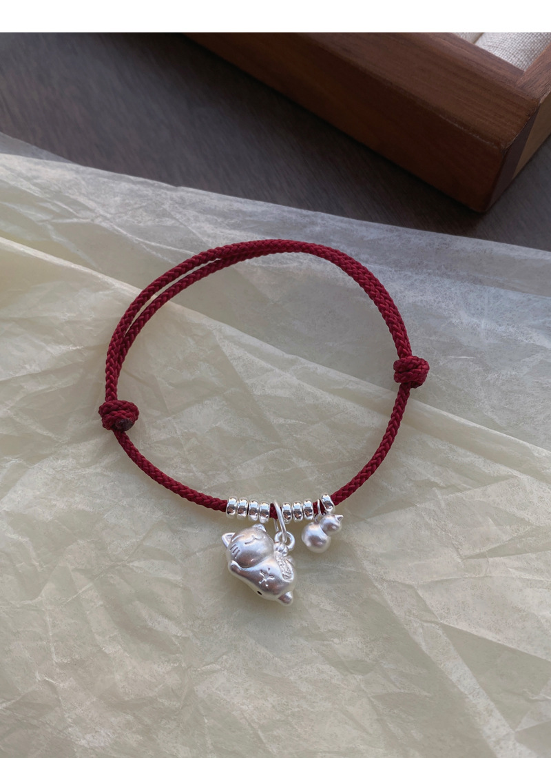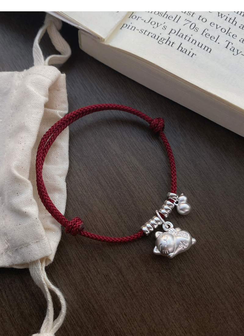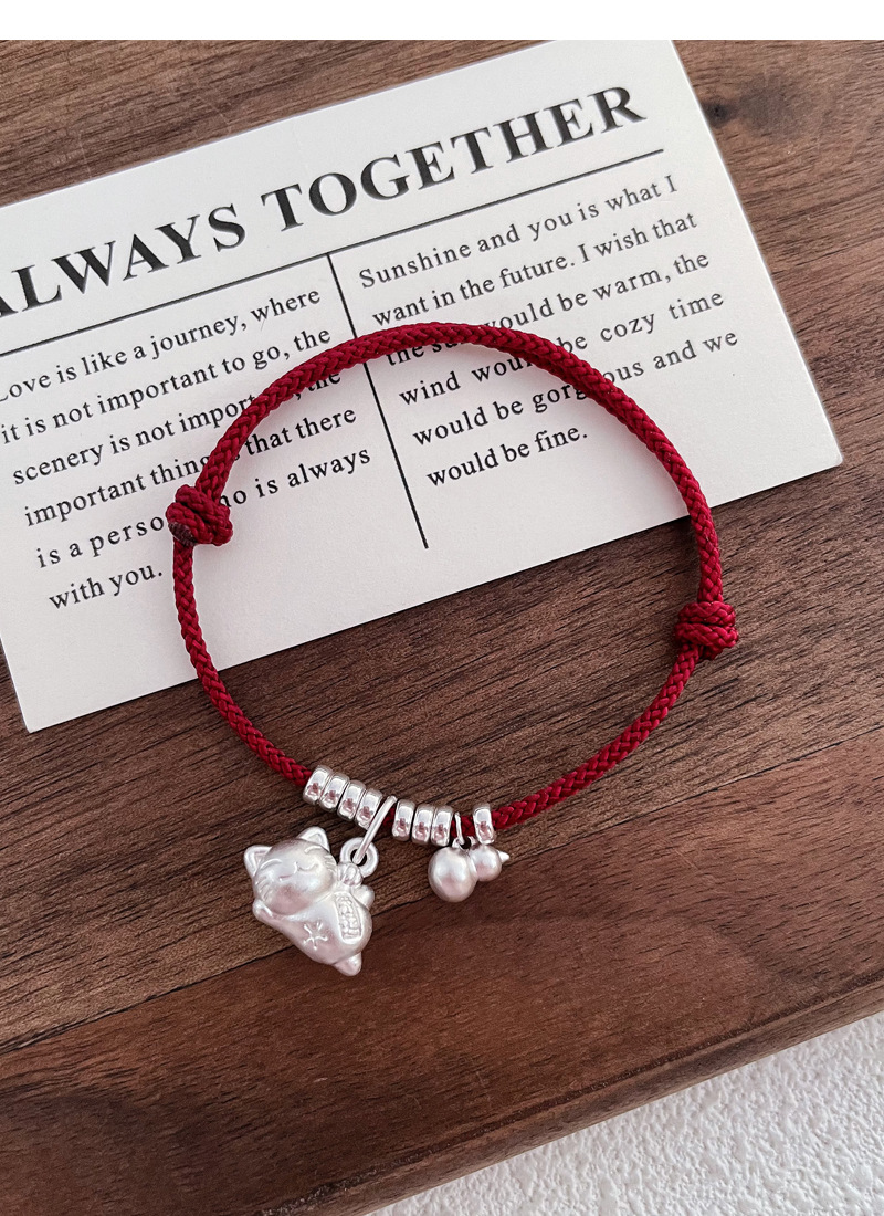 SATN122100024 S925純銀招財貓咪葫蘆紅繩手鏈輕奢小眾精致國風新年創意編織手鏈