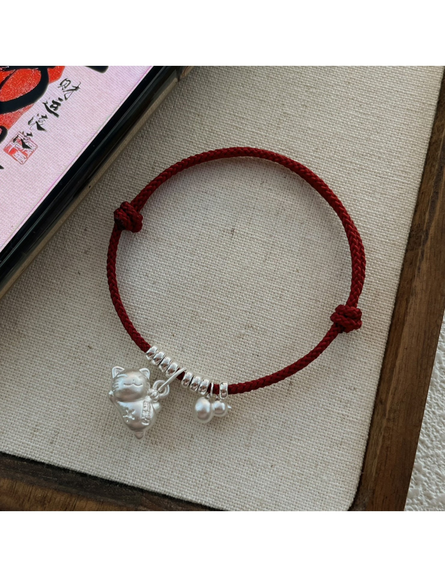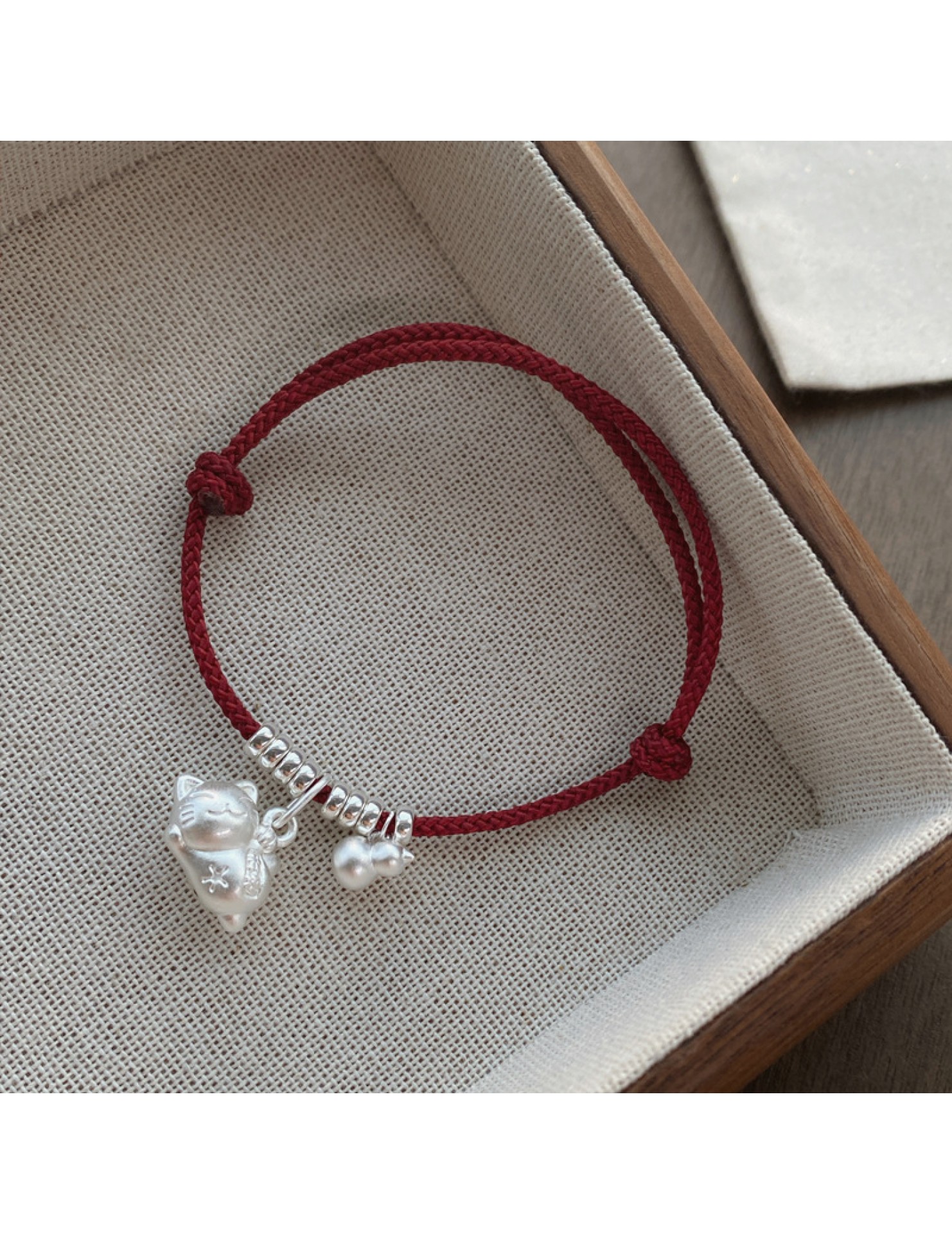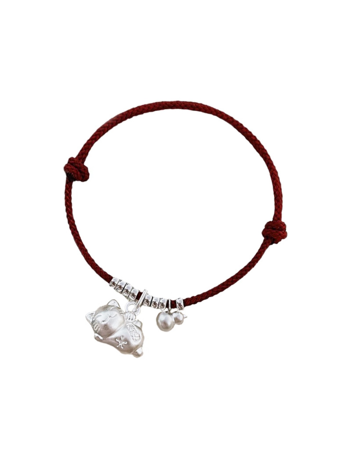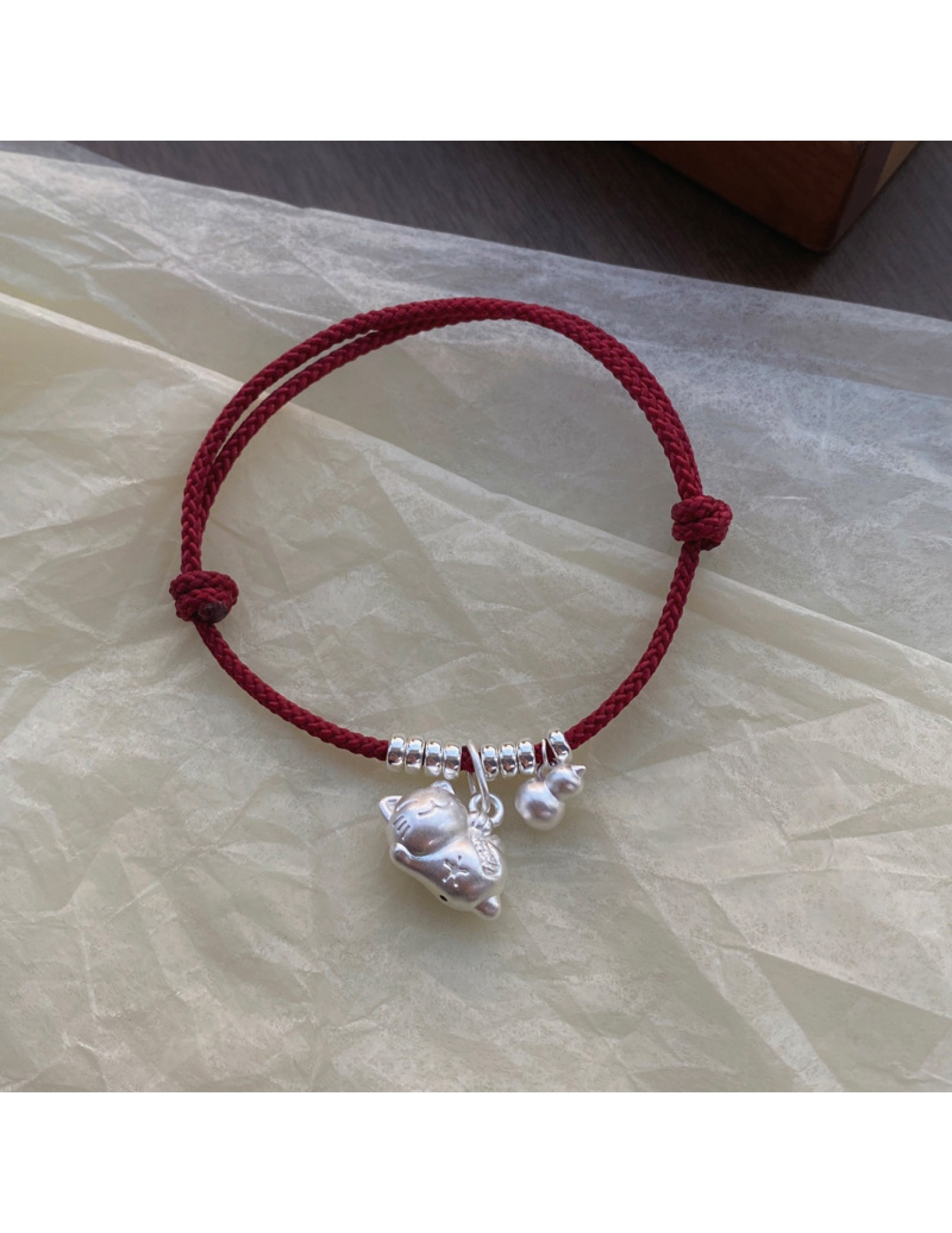 SATN122100024 S925純銀招財貓咪葫蘆紅繩手鏈輕奢小眾精致國風新年創意編織手鏈