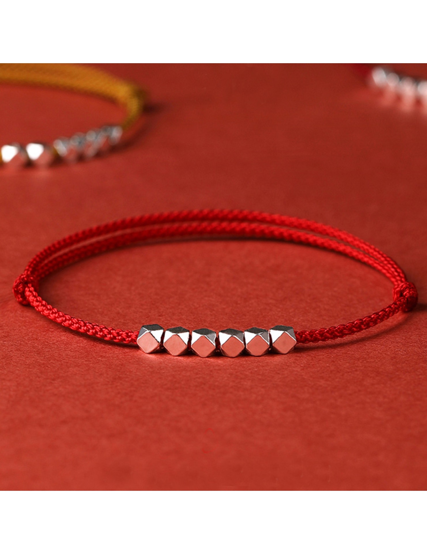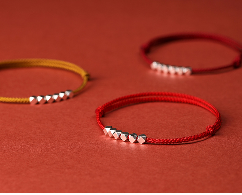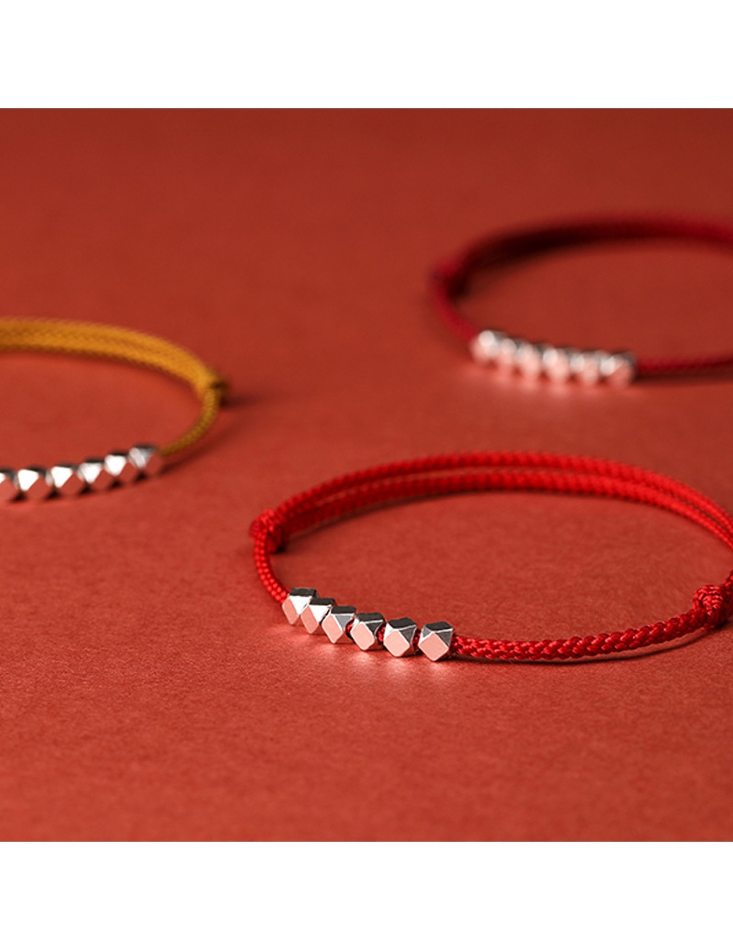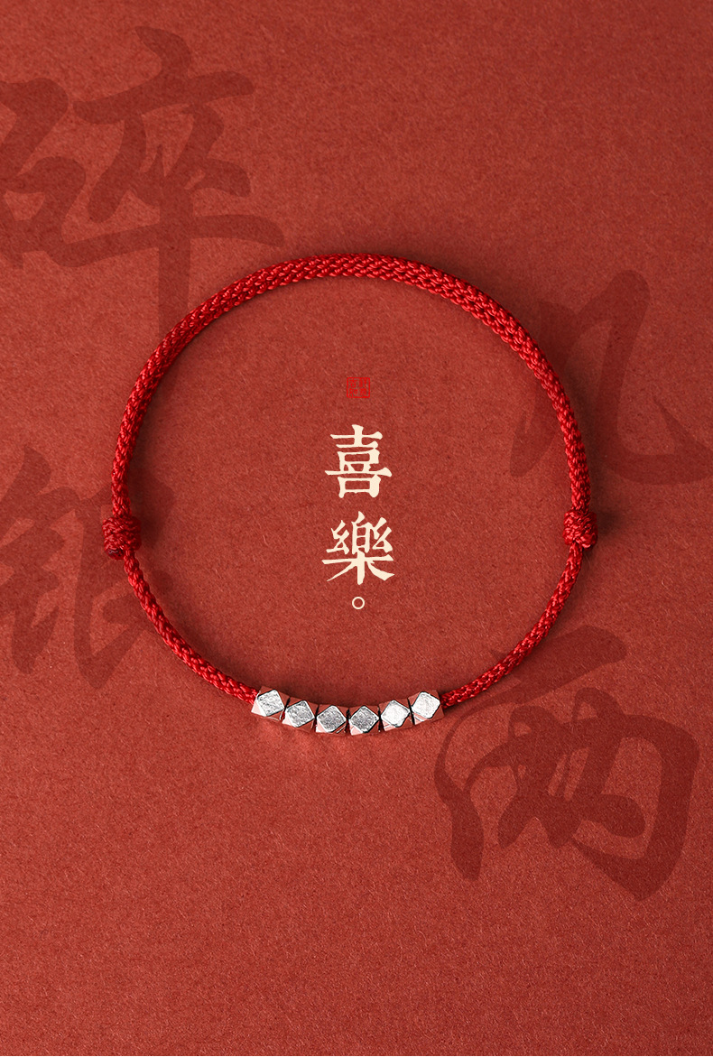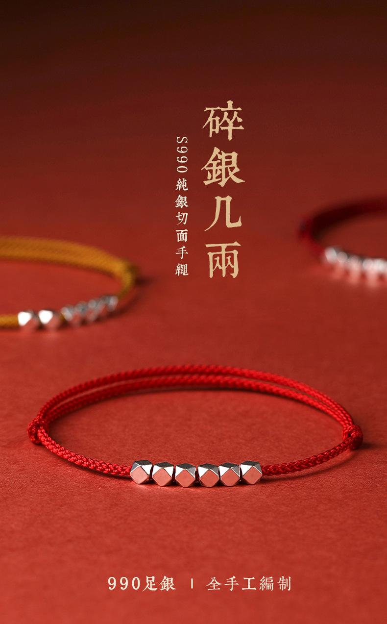SATN122100025 S990純銀本命年碎銀幾兩情侶手鏈男女一對簡約編織紅繩復古手繩