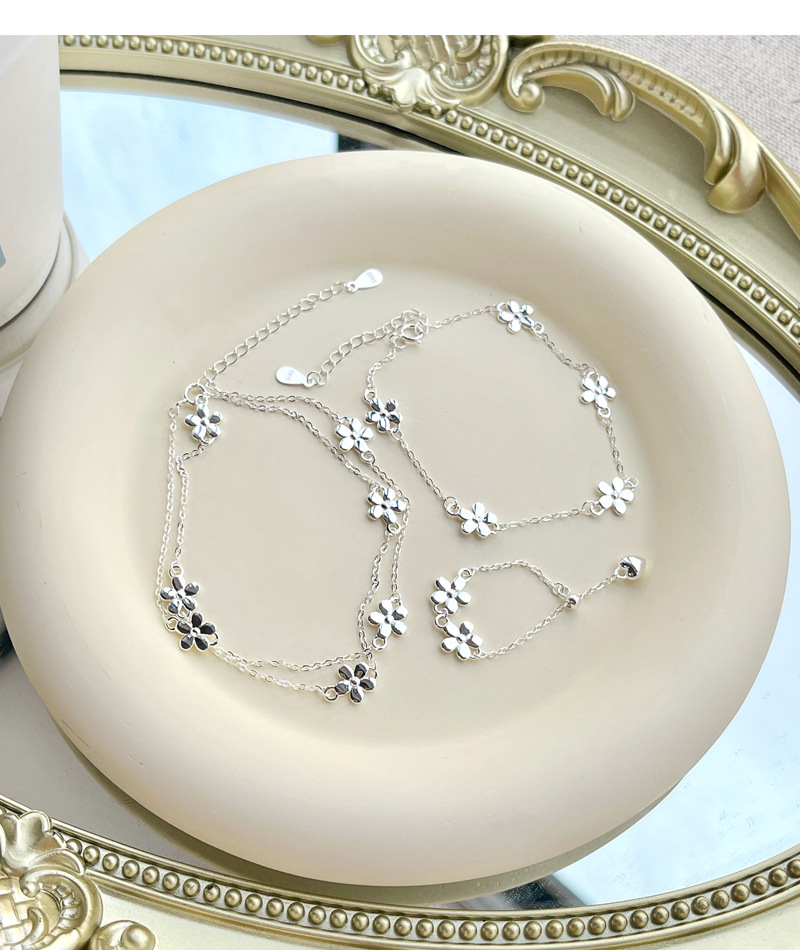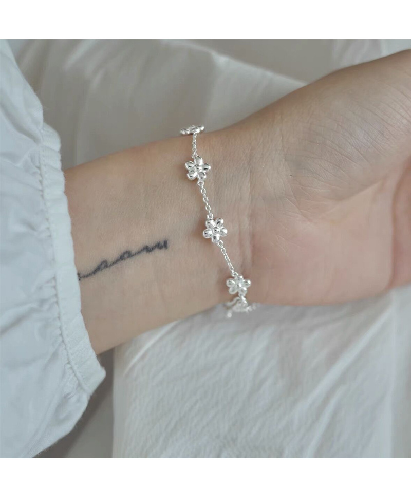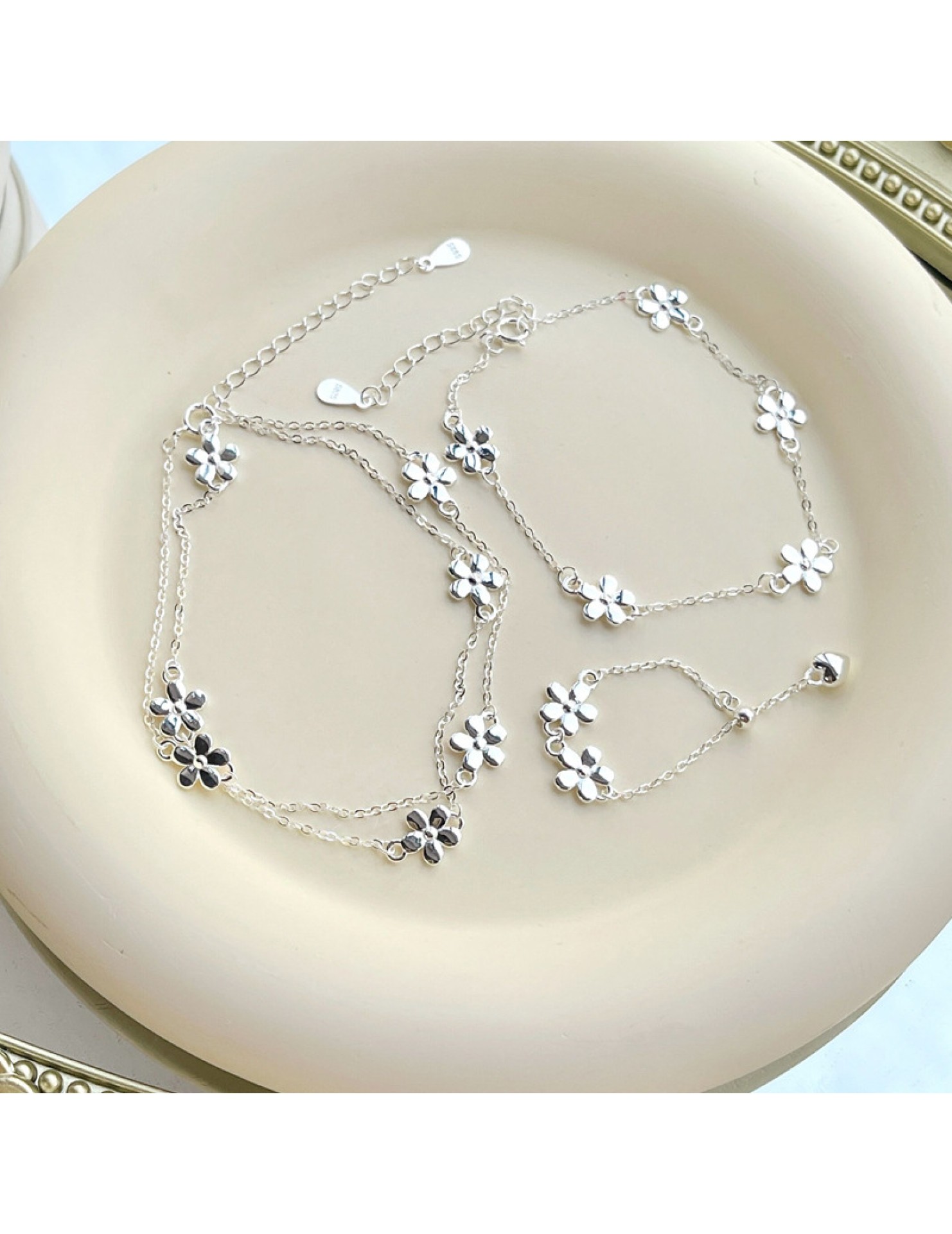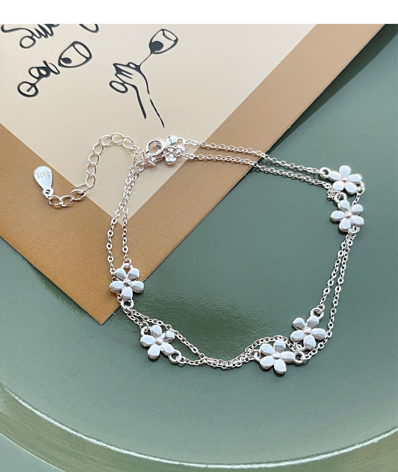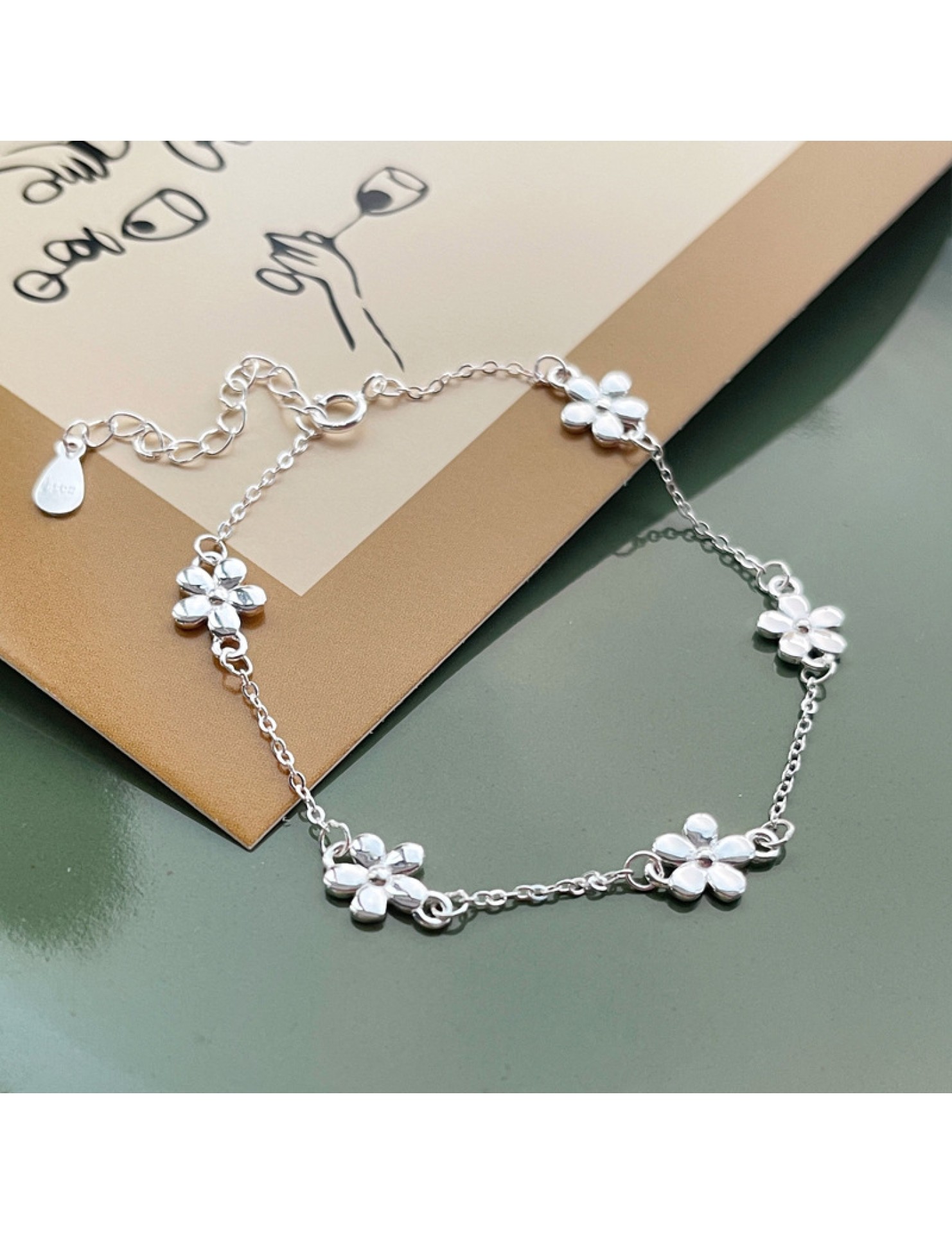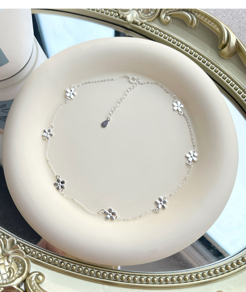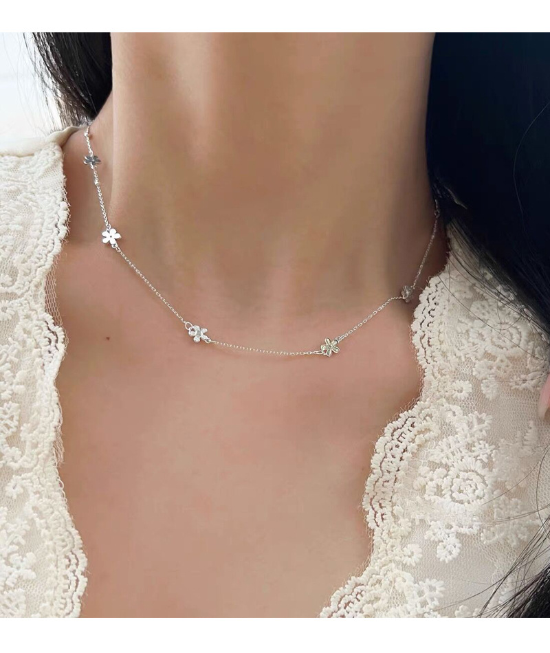 SATN122E100257 S925純銀花朵項鏈女簡約小清新氣質鎖骨鏈甜美森系疊戴風秋冬項飾