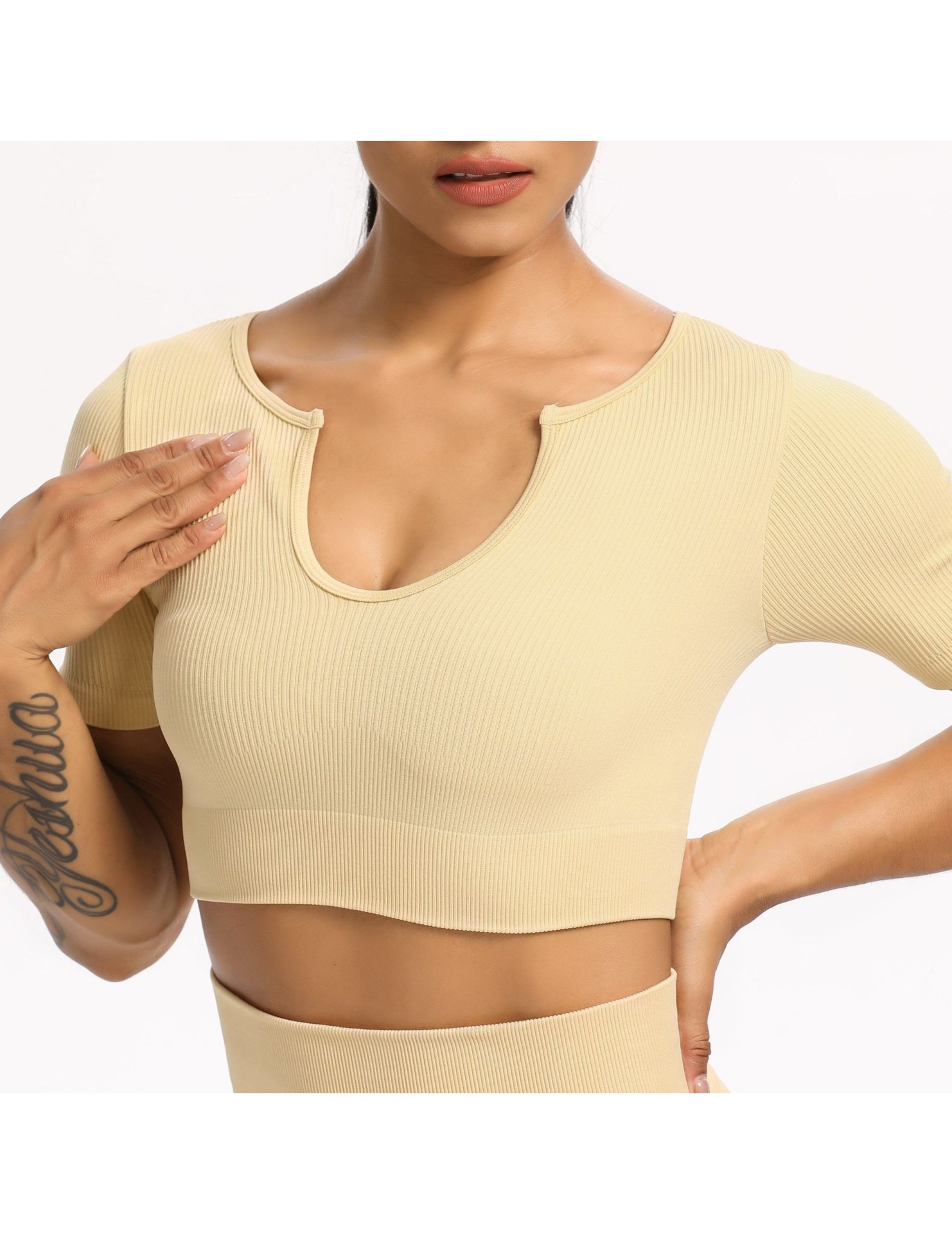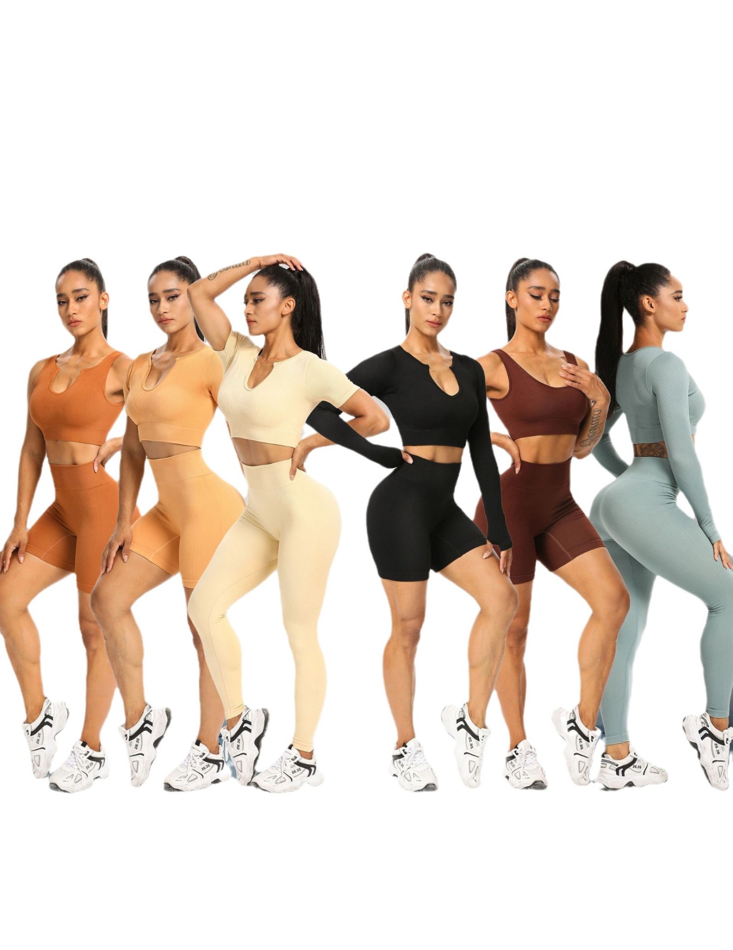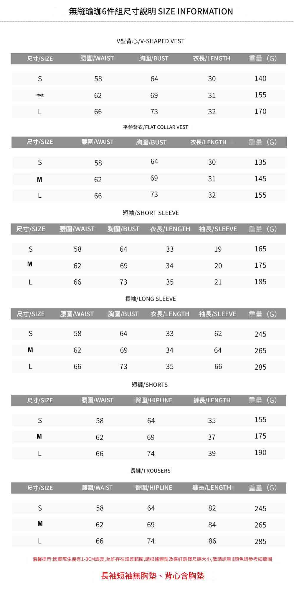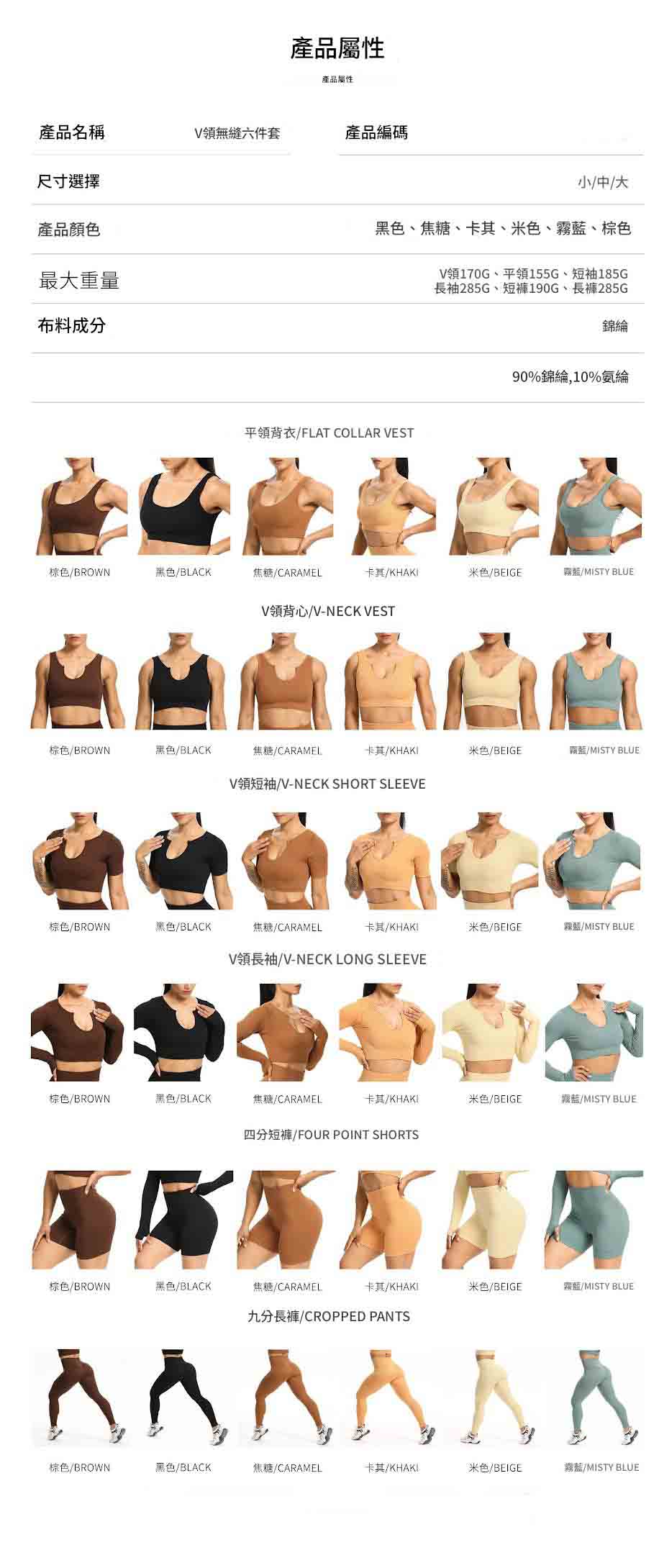 LYG100242-6件套瑜伽套裝 (全套裝備包括V領背心、U領背心、短袖運動T恤、長袖運動T恤、短褲和長褲)