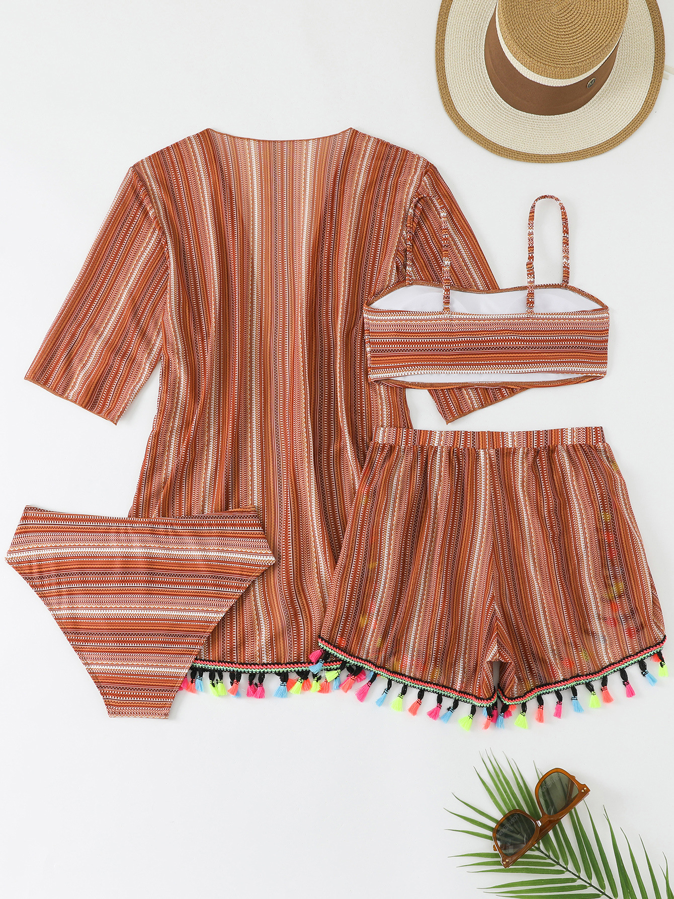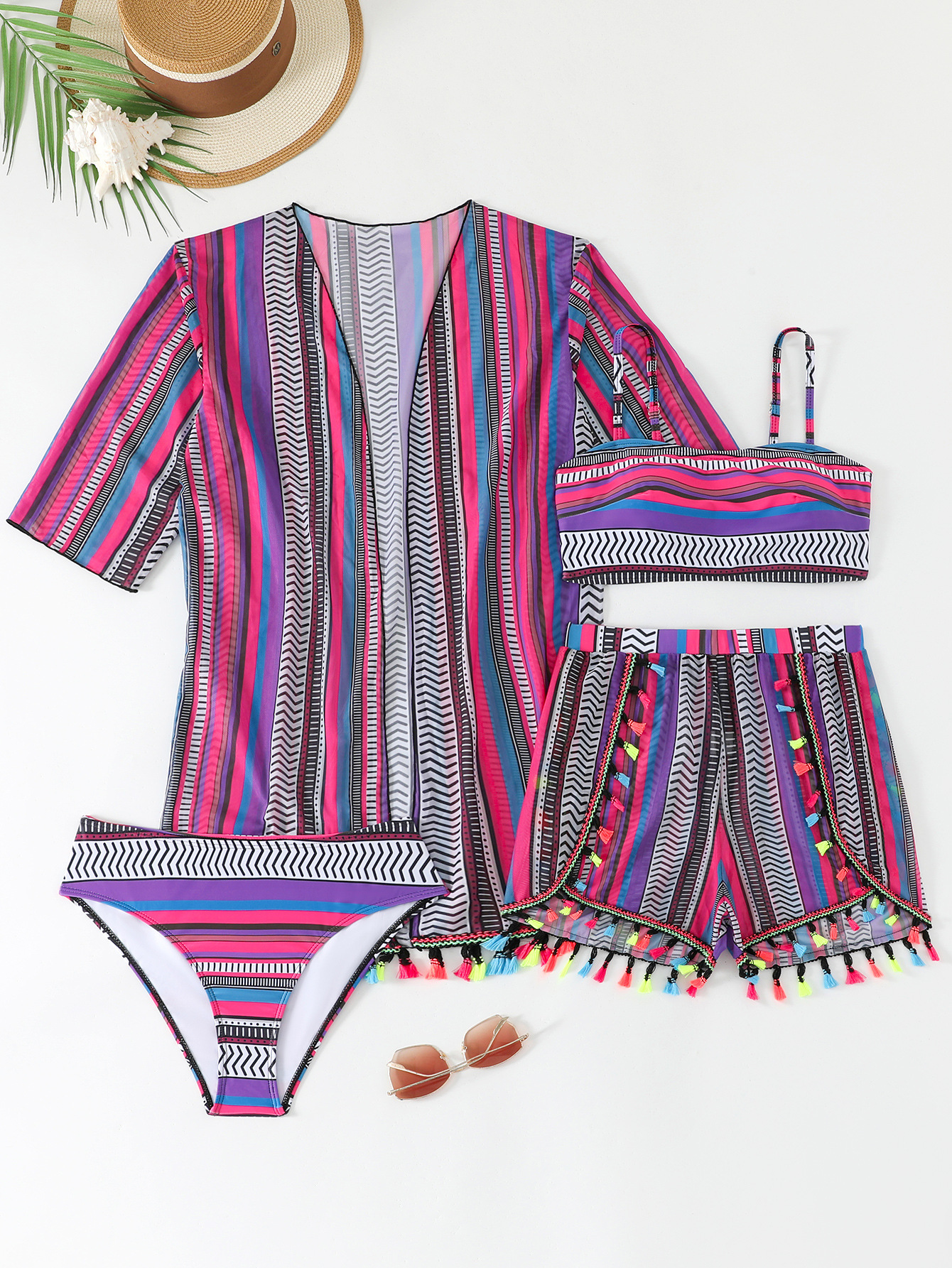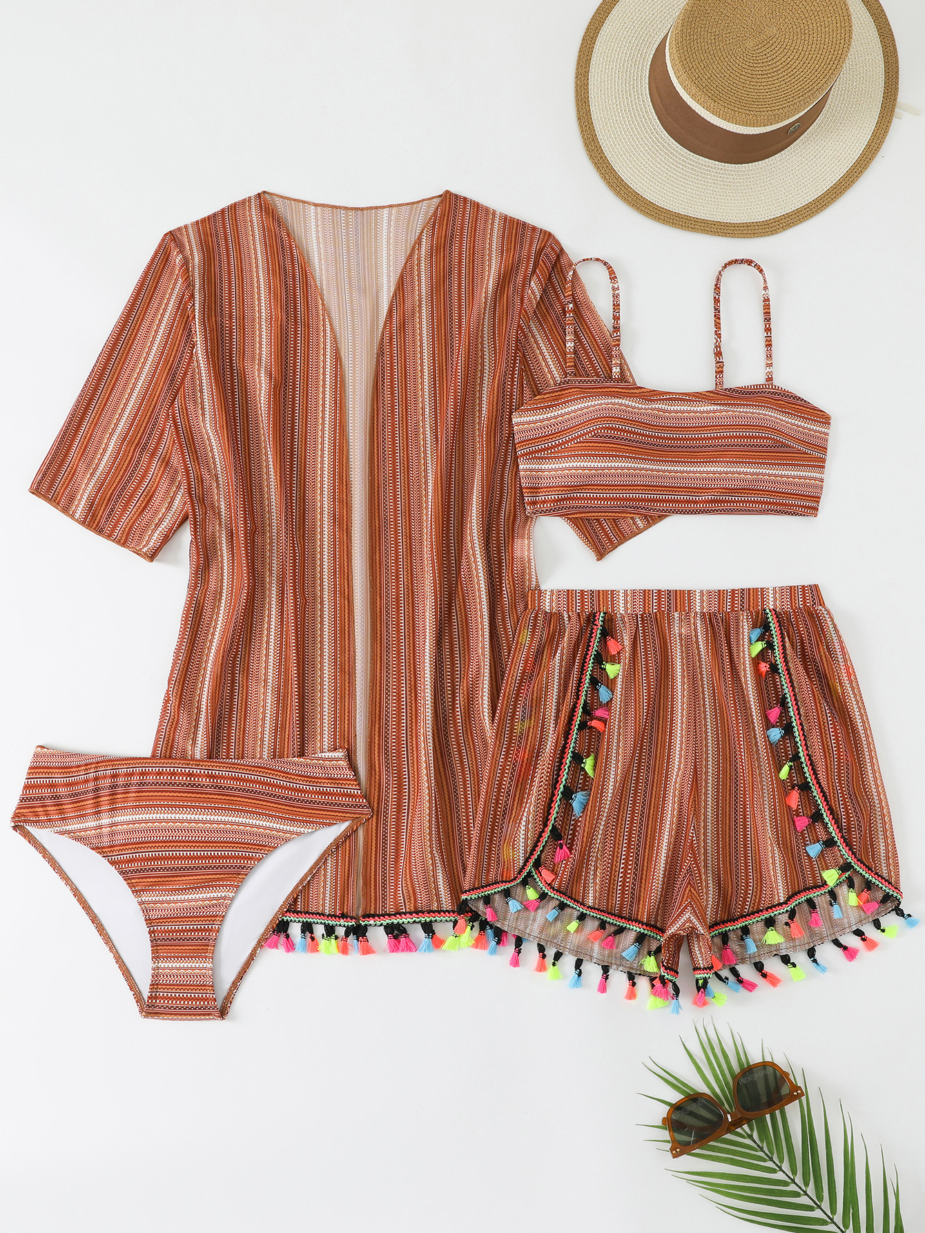 LYXN120100080 2026新款泳衣掛脖吊帶性感流蘇分體比基尼四件套泳裝