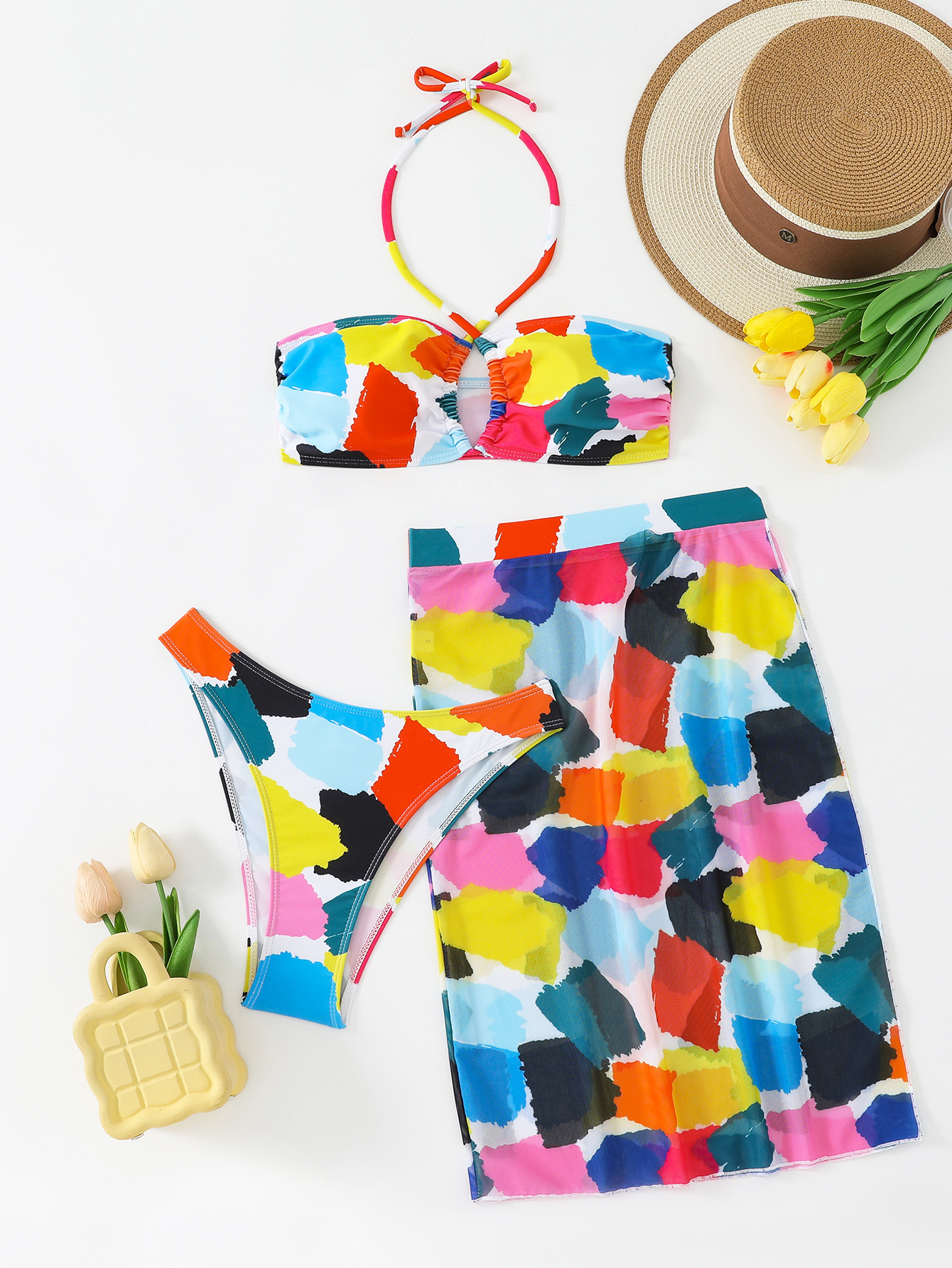 LYXN120100101 2026新款色彩泳裝三件套時尚女士游泳衣比基尼