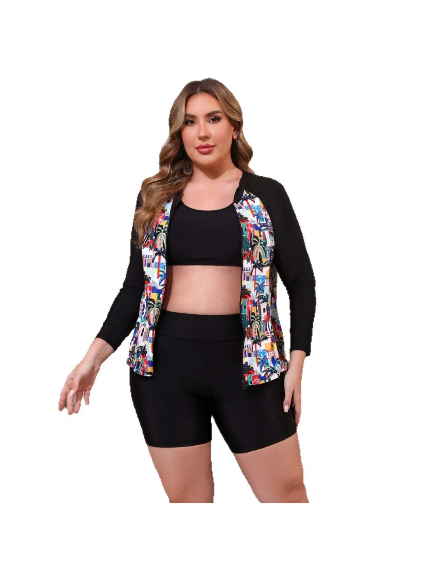 LYXN120100107 女士運動大碼長袖拉鏈開衫分體三件套泳衣女顯瘦