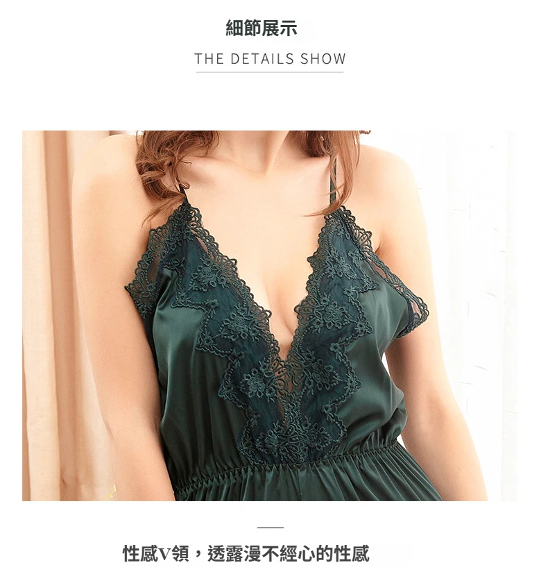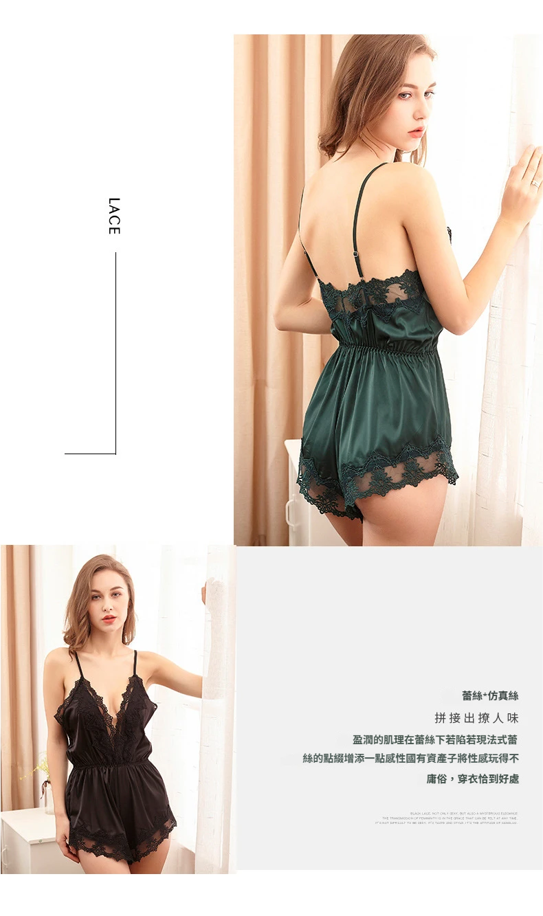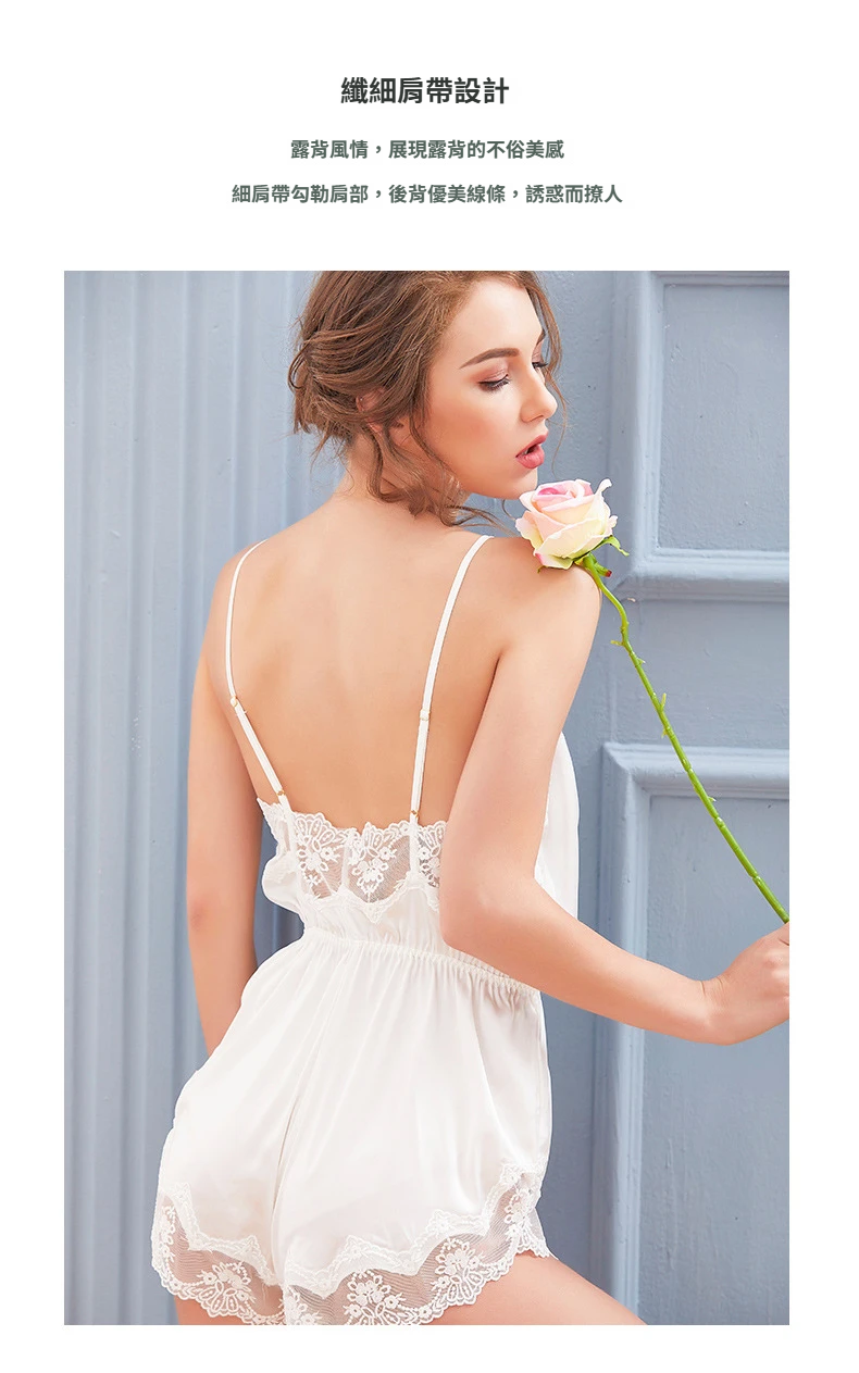 蕾絲綢緞性感內衣女士春夏冰絲連體睡衣女深V仿真絲情趣套裝 LCBN