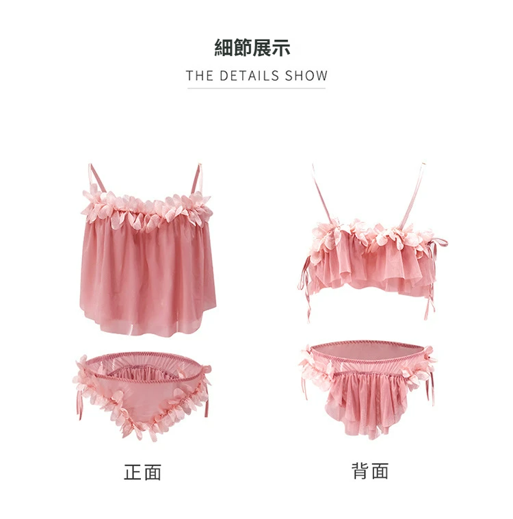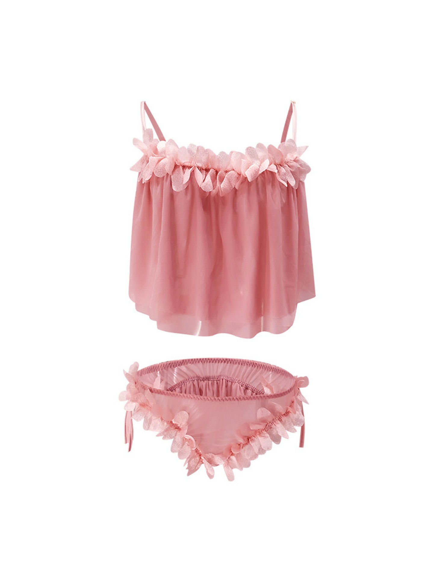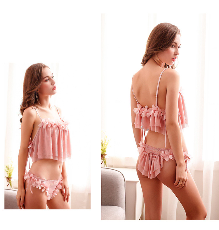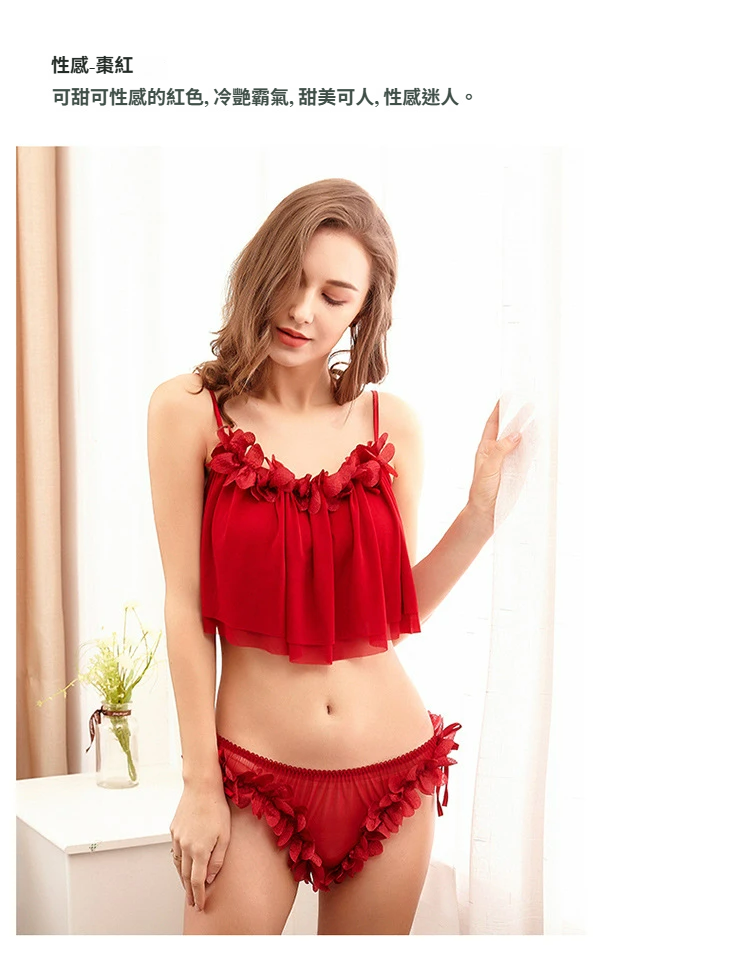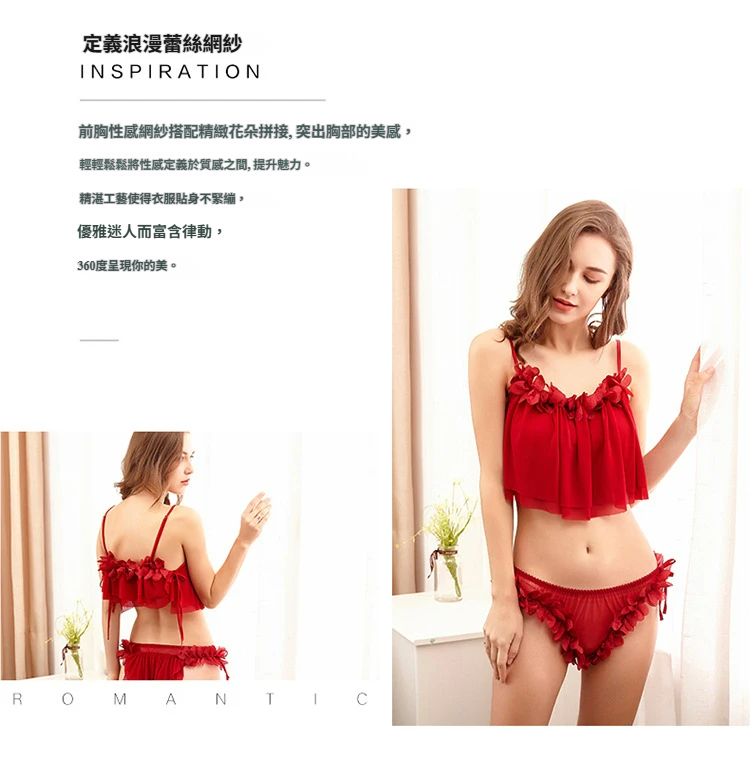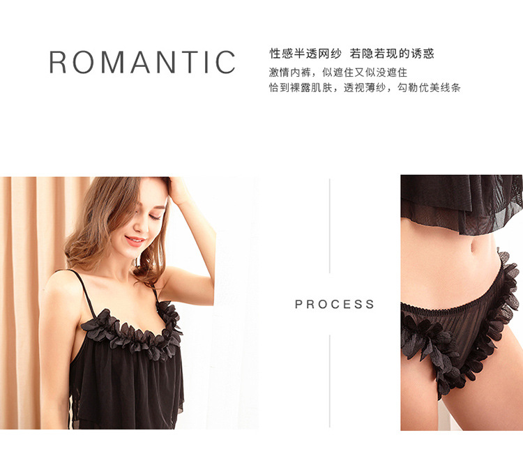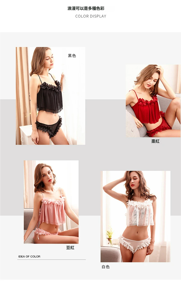歐美超短誘惑性感睡衣女士蕾絲花朵吊帶睡裙女式情趣內衣套裝 LCBN