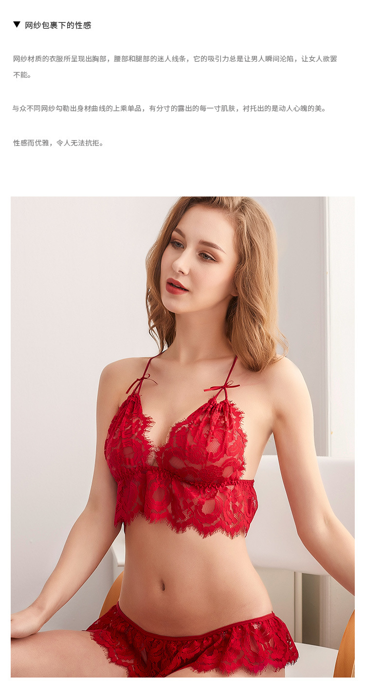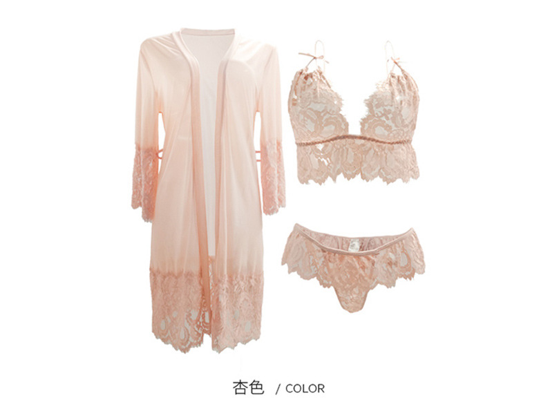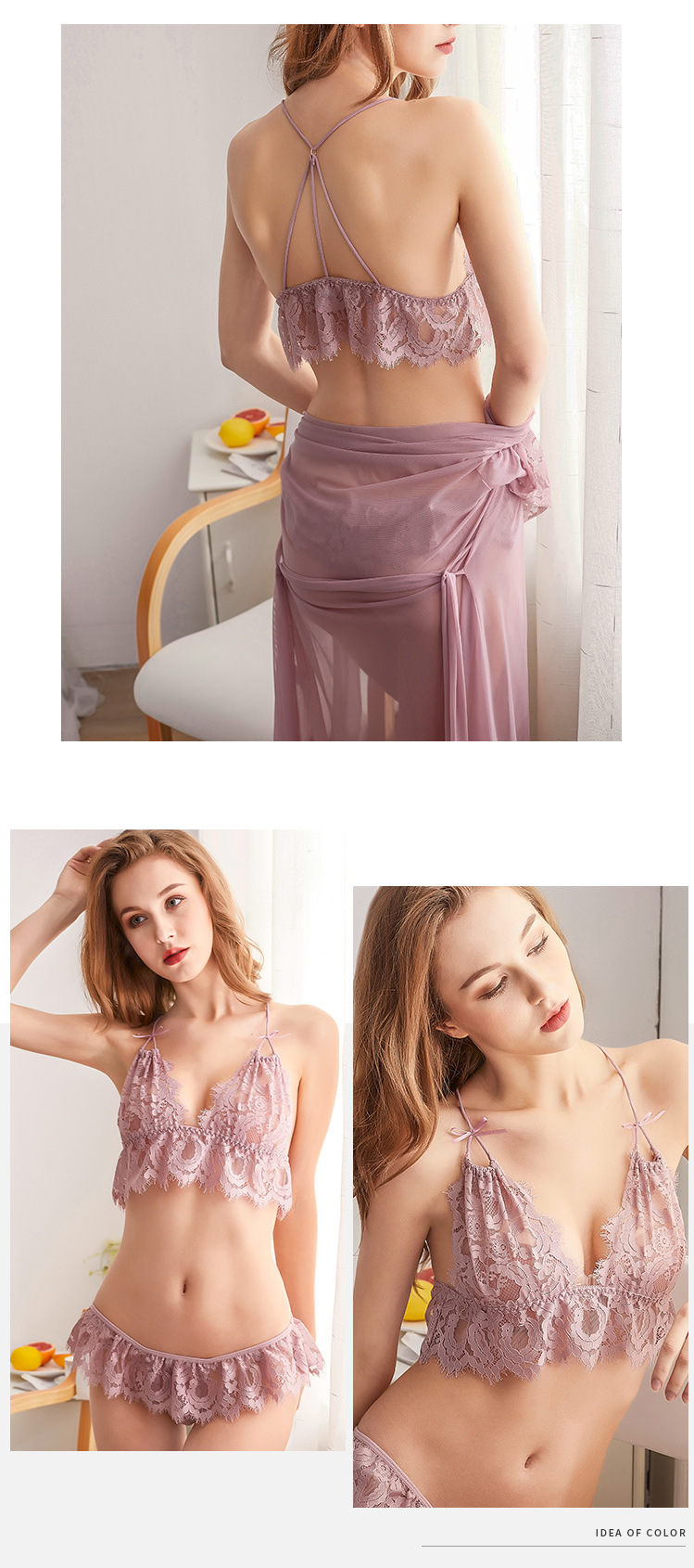 三點式情趣內衣套裝女性感蕾絲睡袍歐美曼妙透明網紗吊帶睡衣