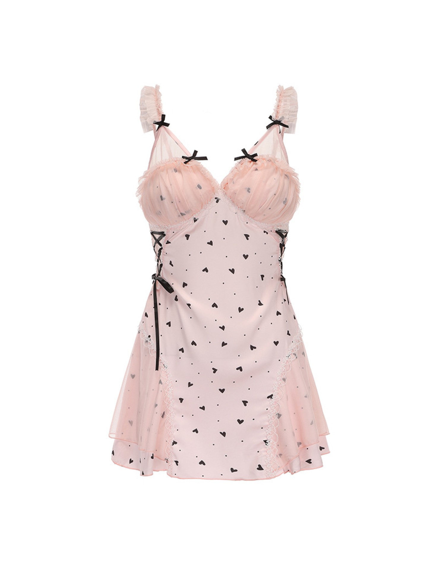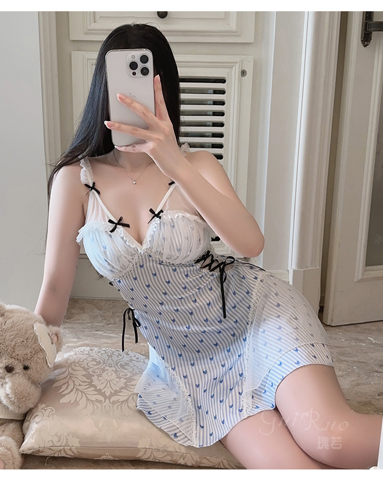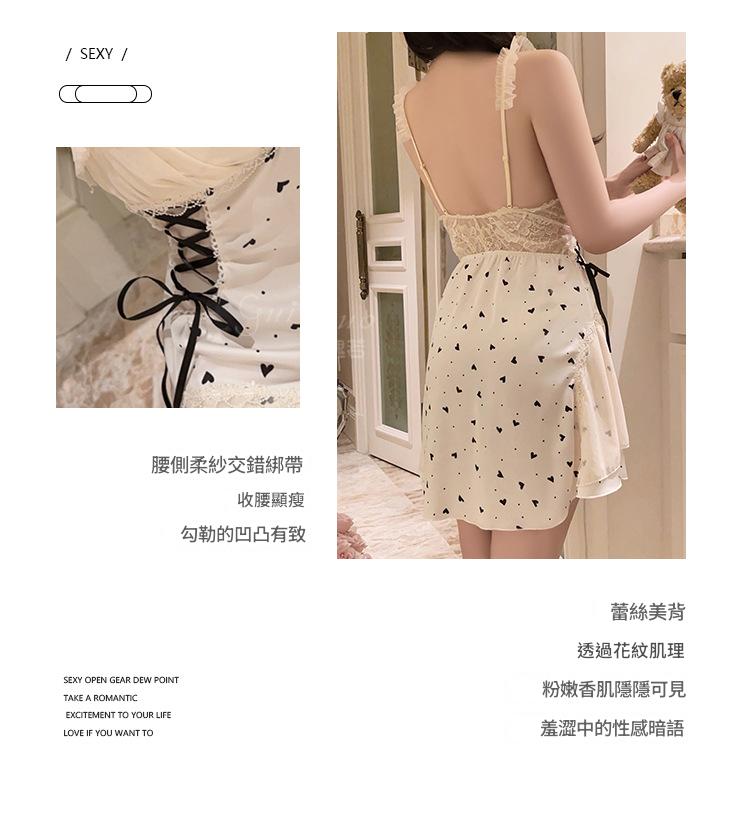 LPLT6319100043 火辣深V加胸墊睡衣甜美透視蕾絲性感大碼睡裙家居服套裝