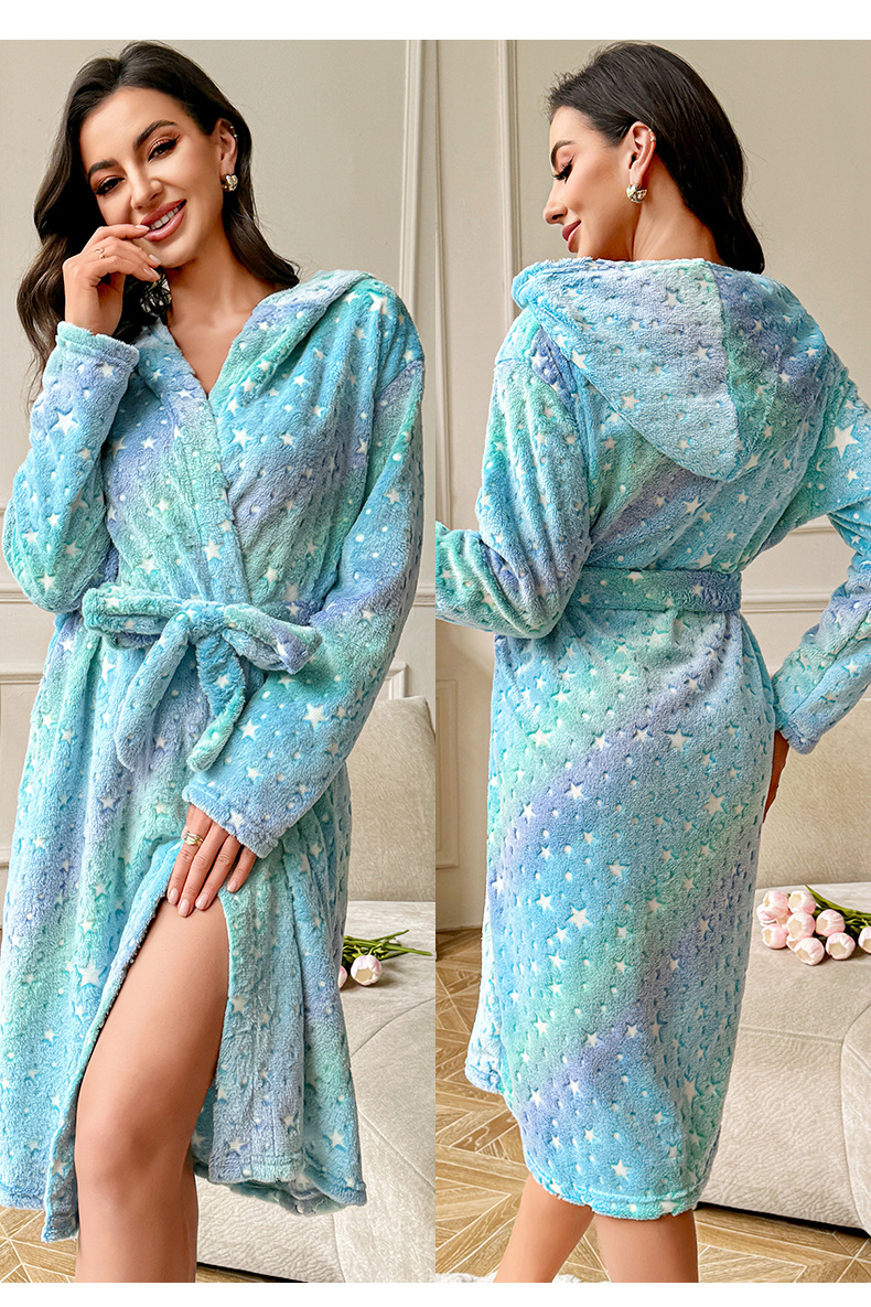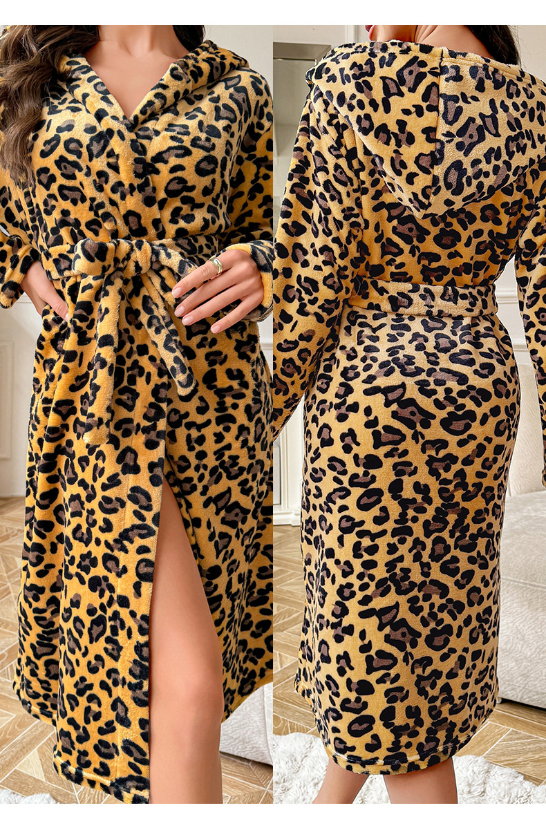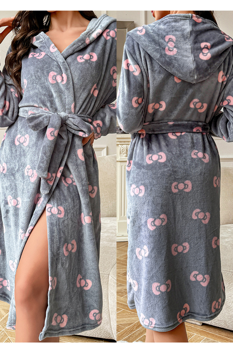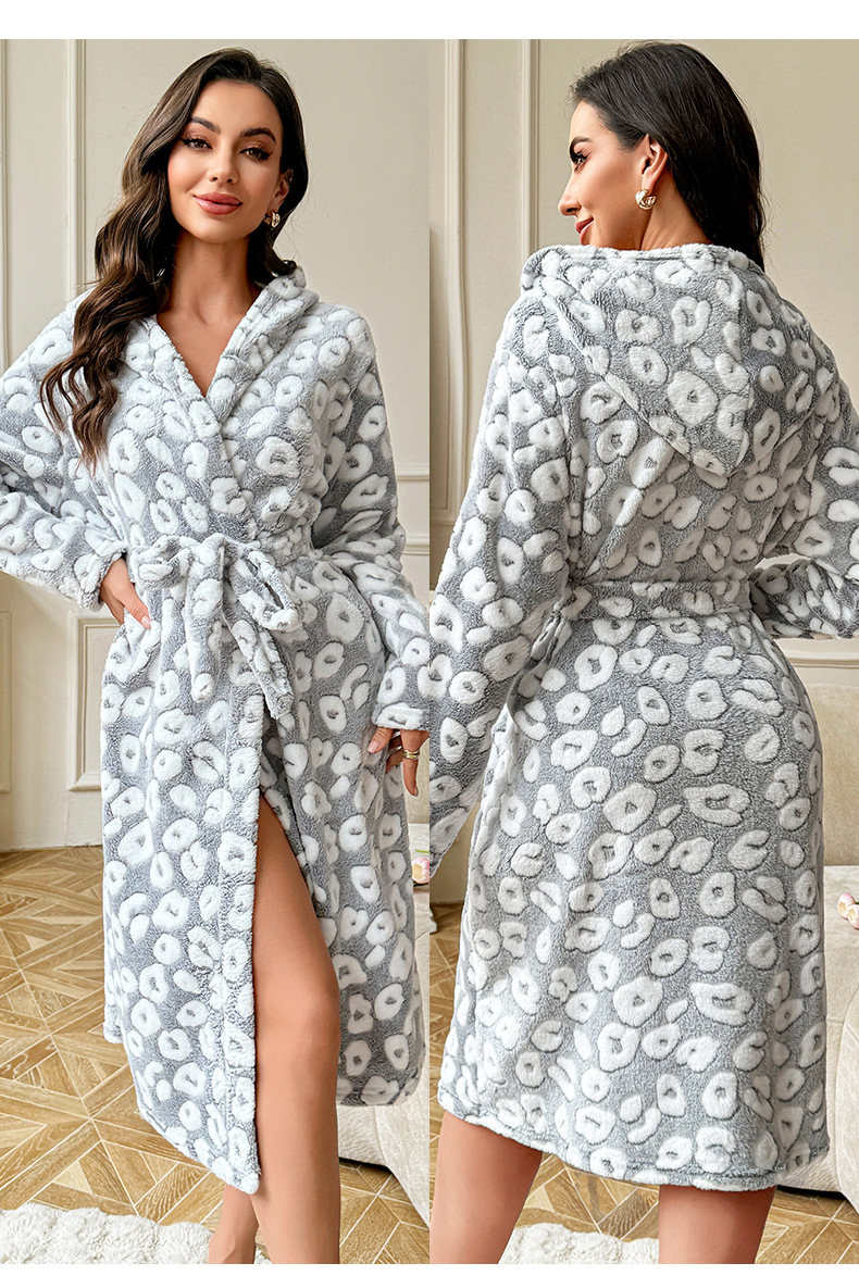 秋冬毛絨絨寬松睡袍長袖雙面絨系帶保暖睡衣家居服晨袍 LCBN