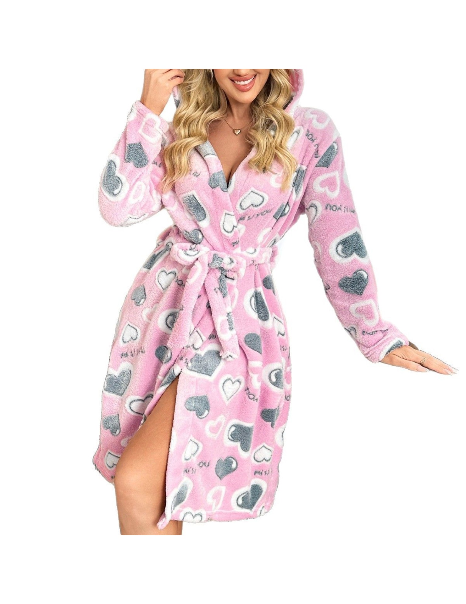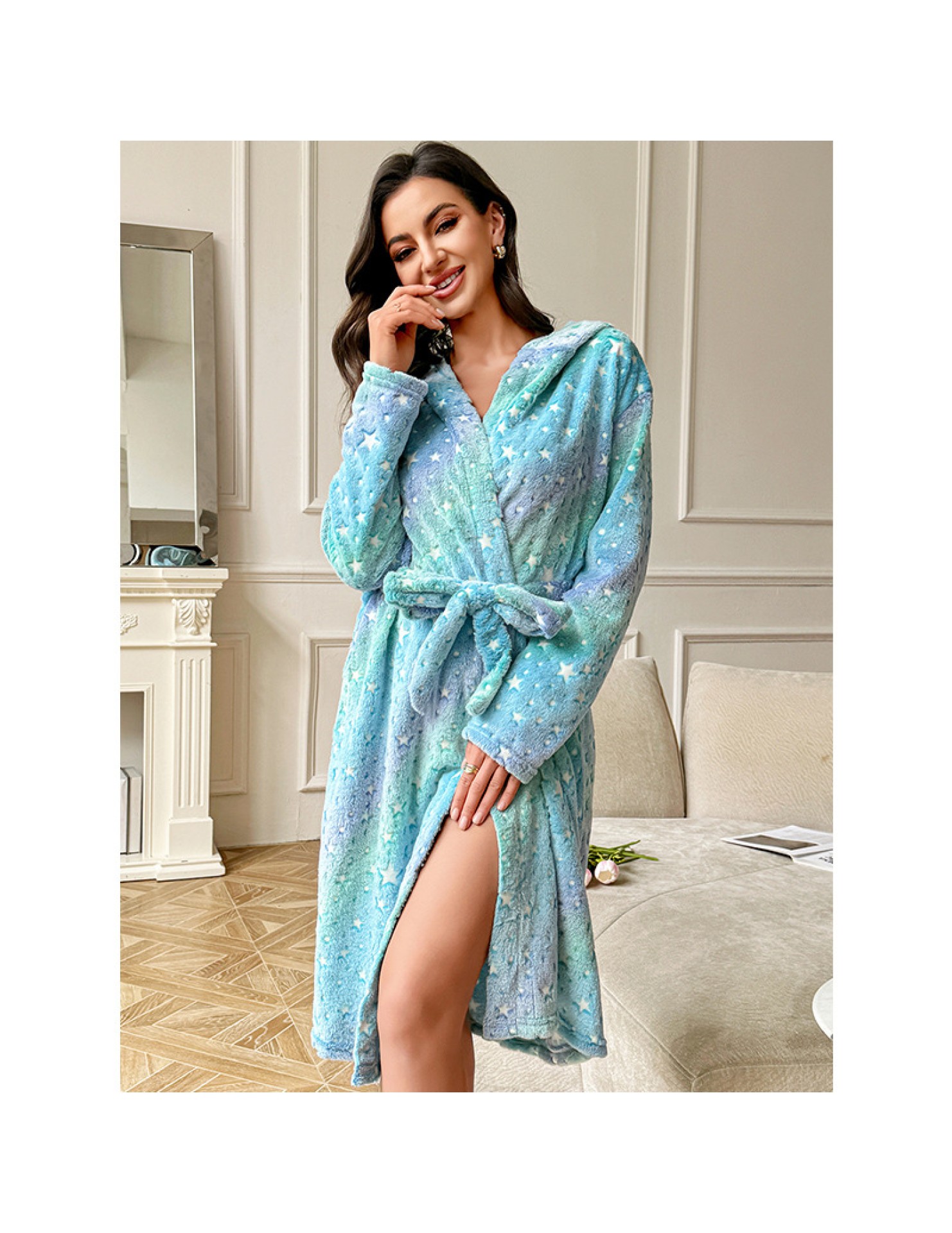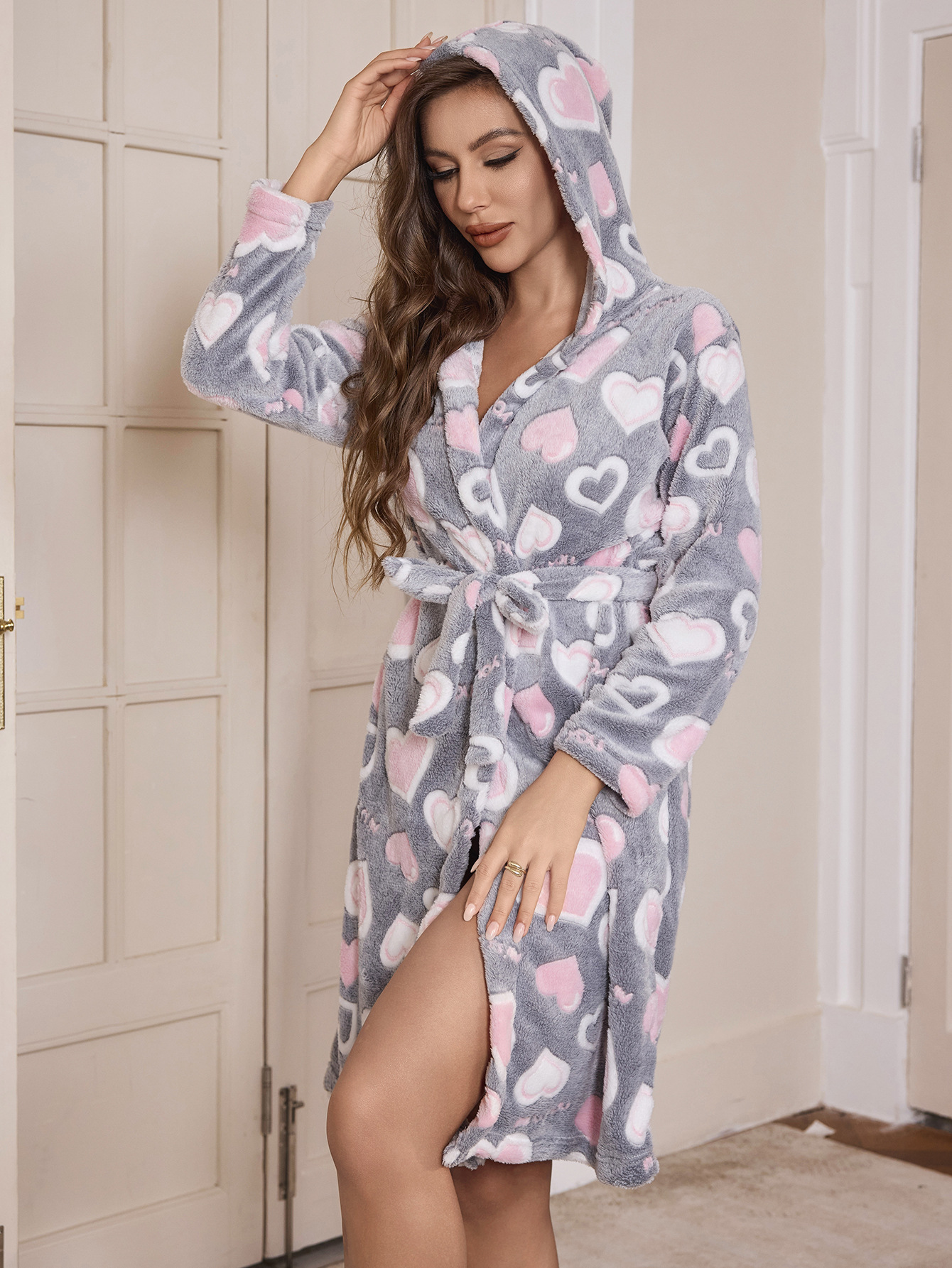 秋冬毛絨絨寬松睡袍長袖雙面絨系帶保暖睡衣家居服晨袍 LCBN