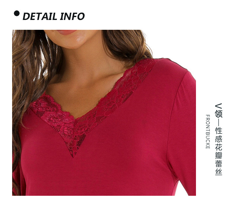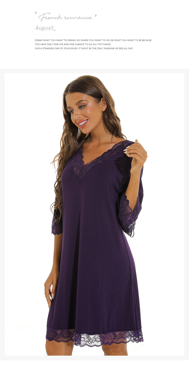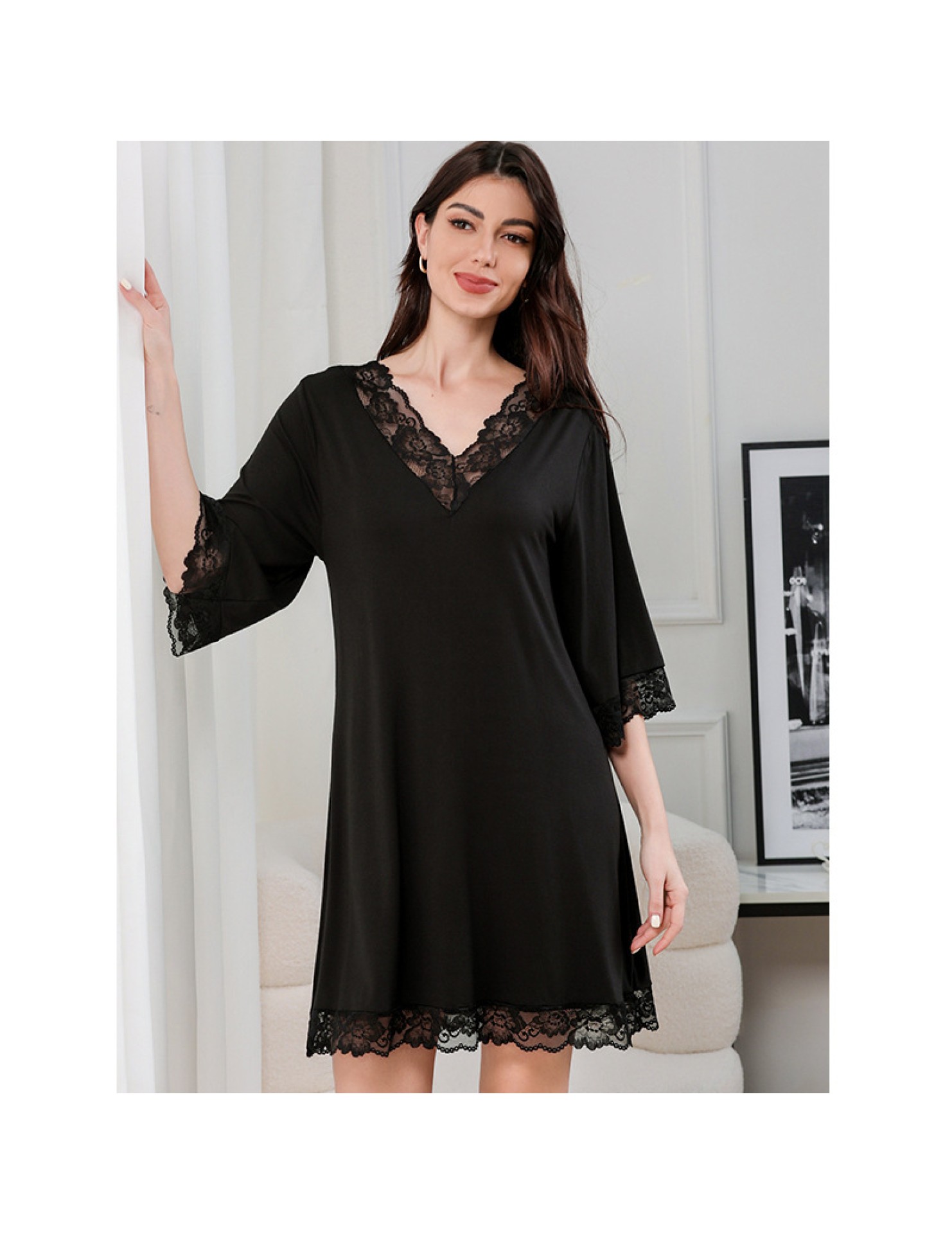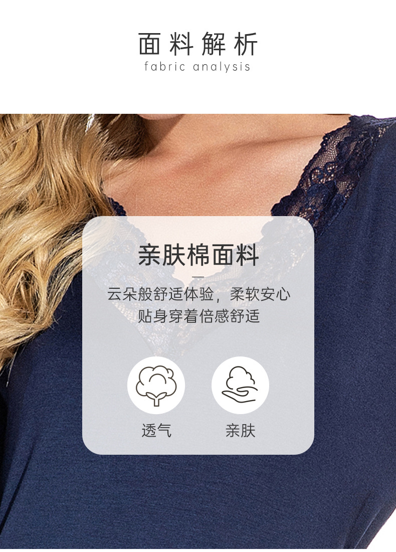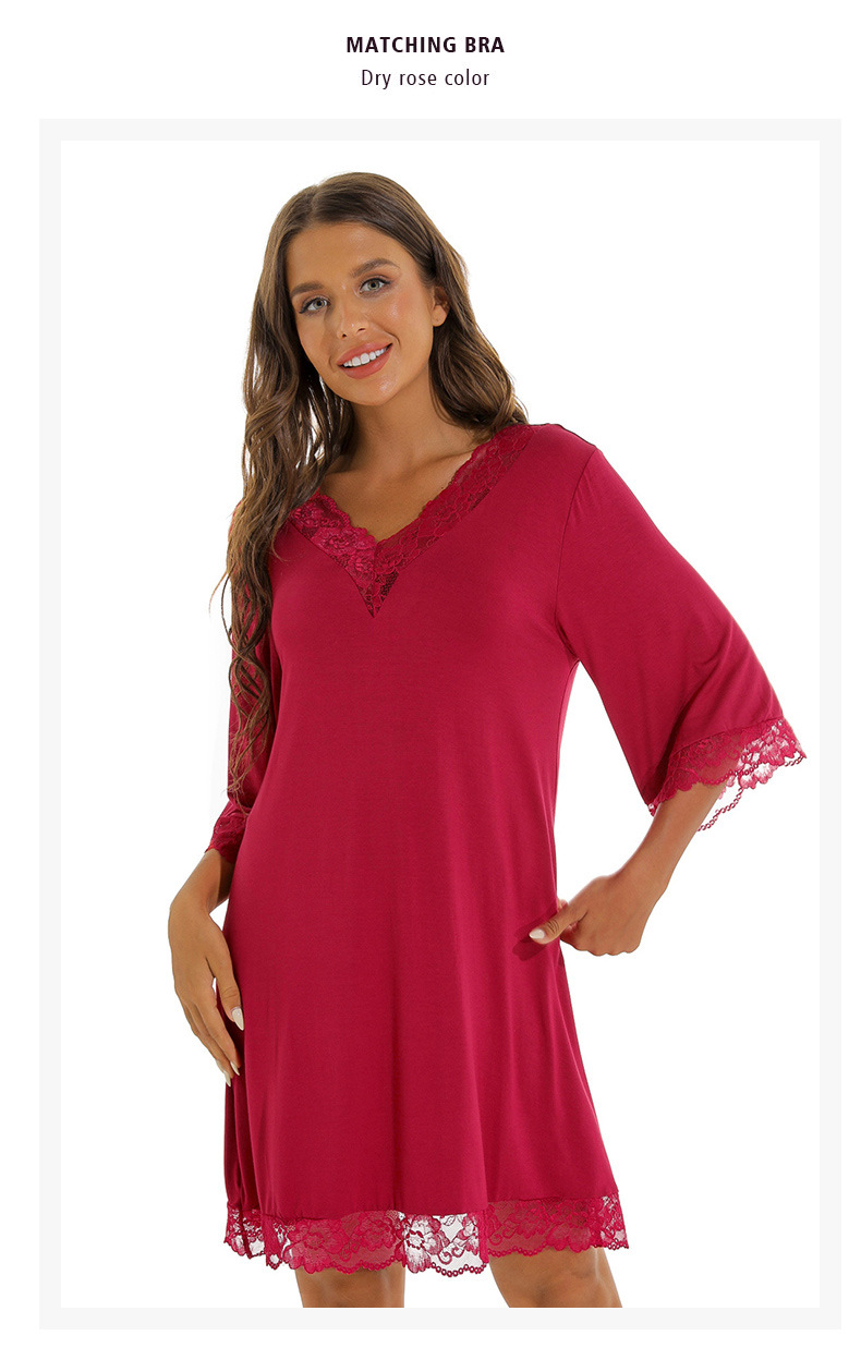 蕾絲性感V領純莫代爾棉居家服睡衣女大碼寬松七分袖睡裙 LCBN