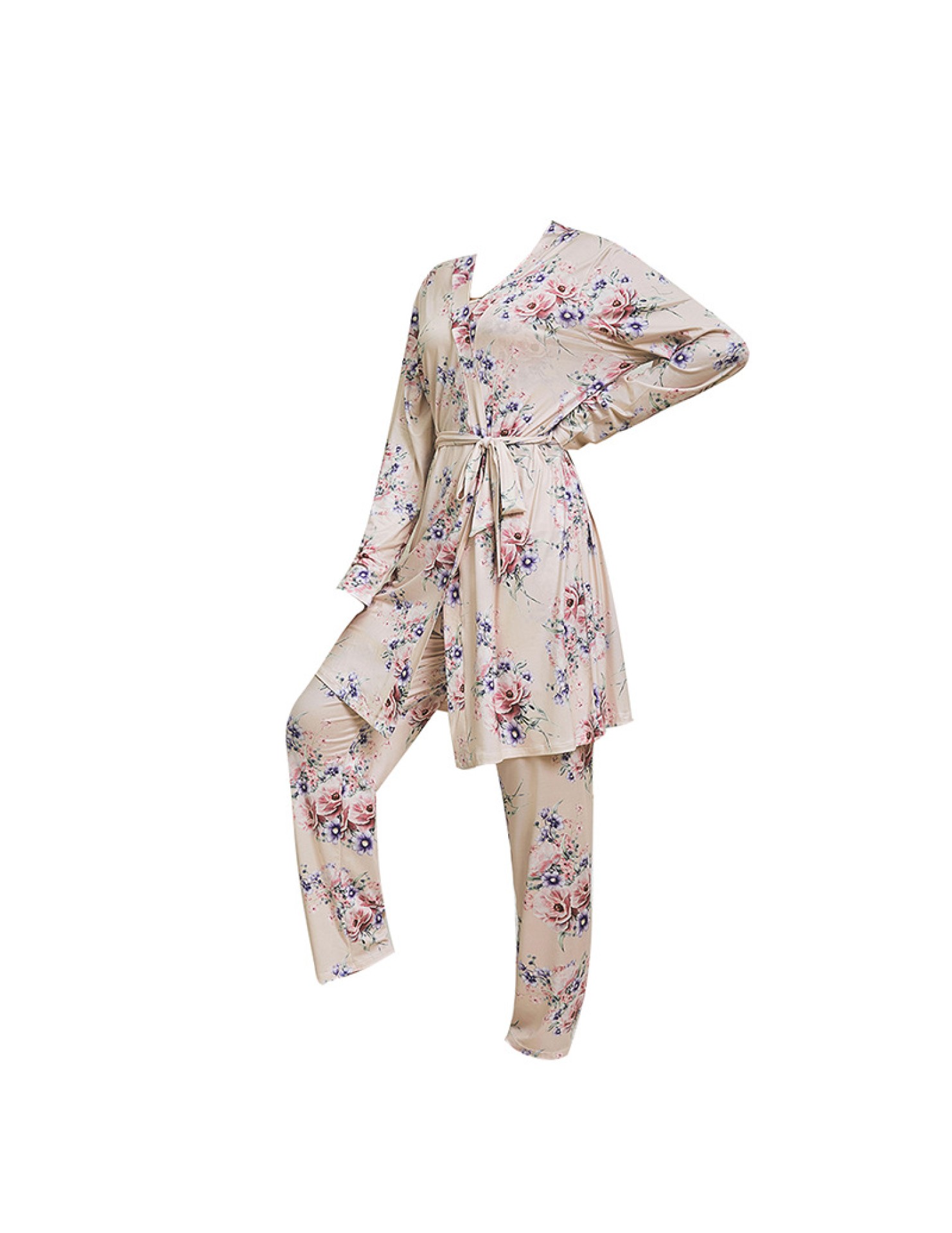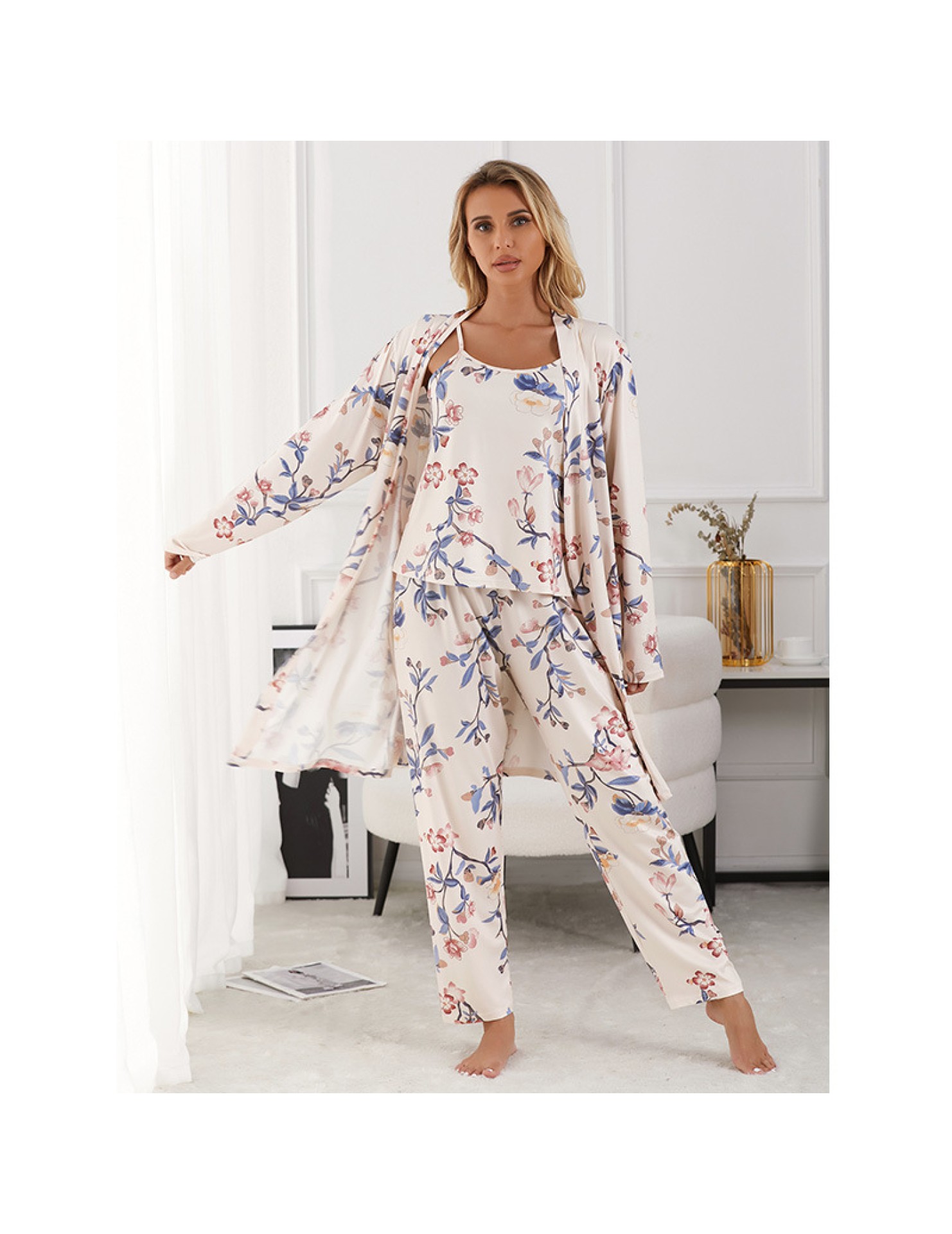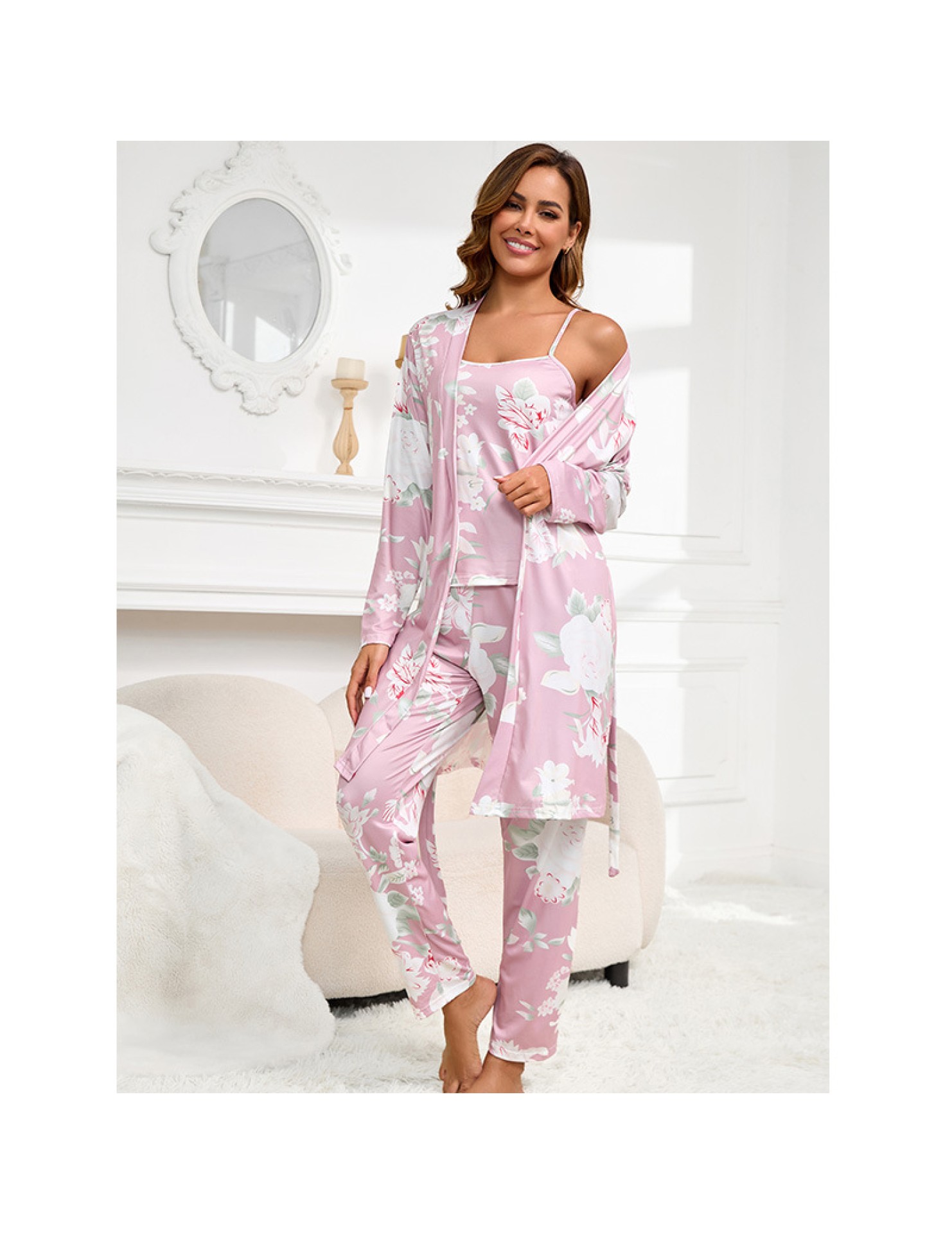 睡衣女棉款睡袍吊帶睡裙長褲三件套歐美秋季家居服 LCBN