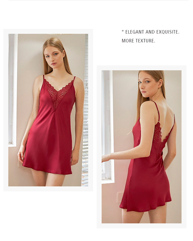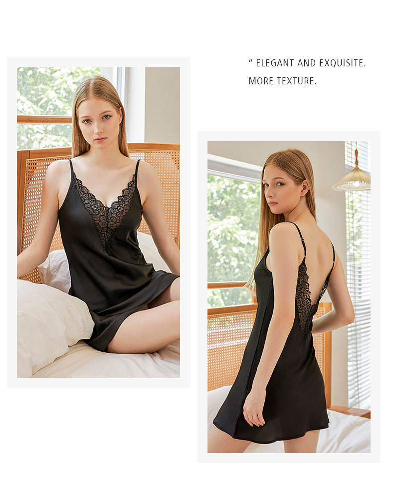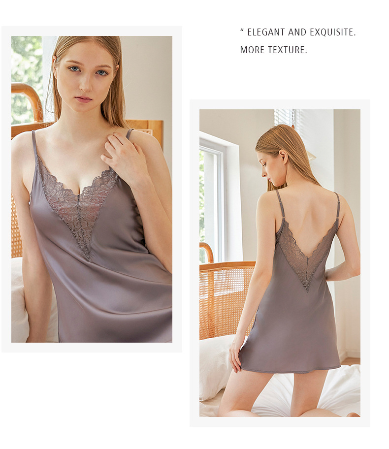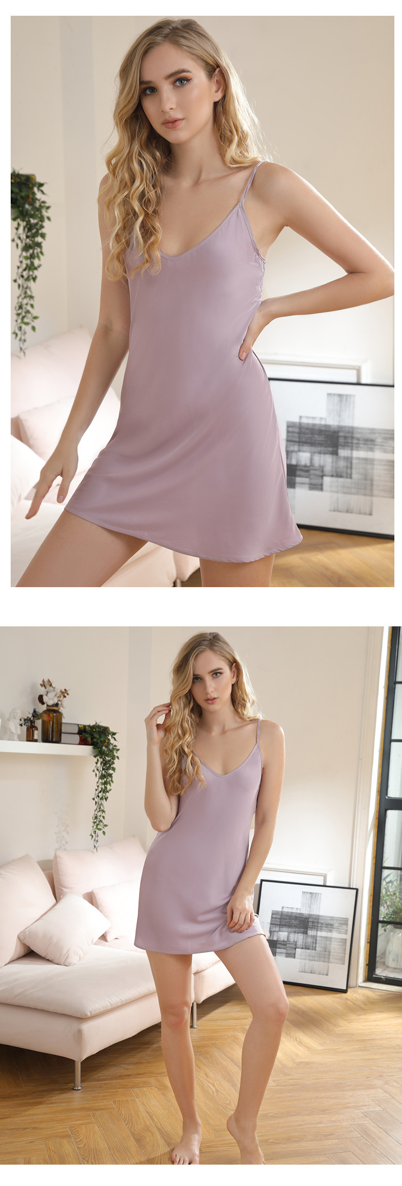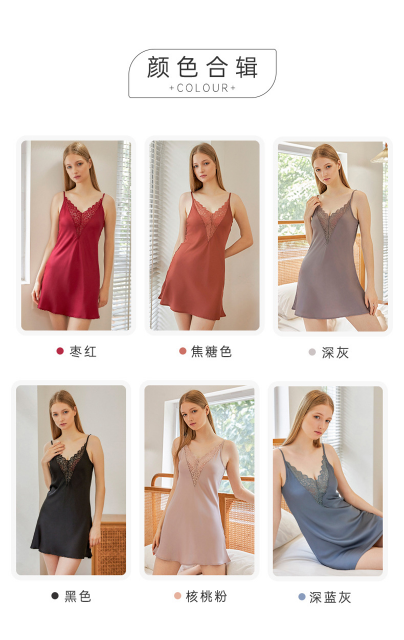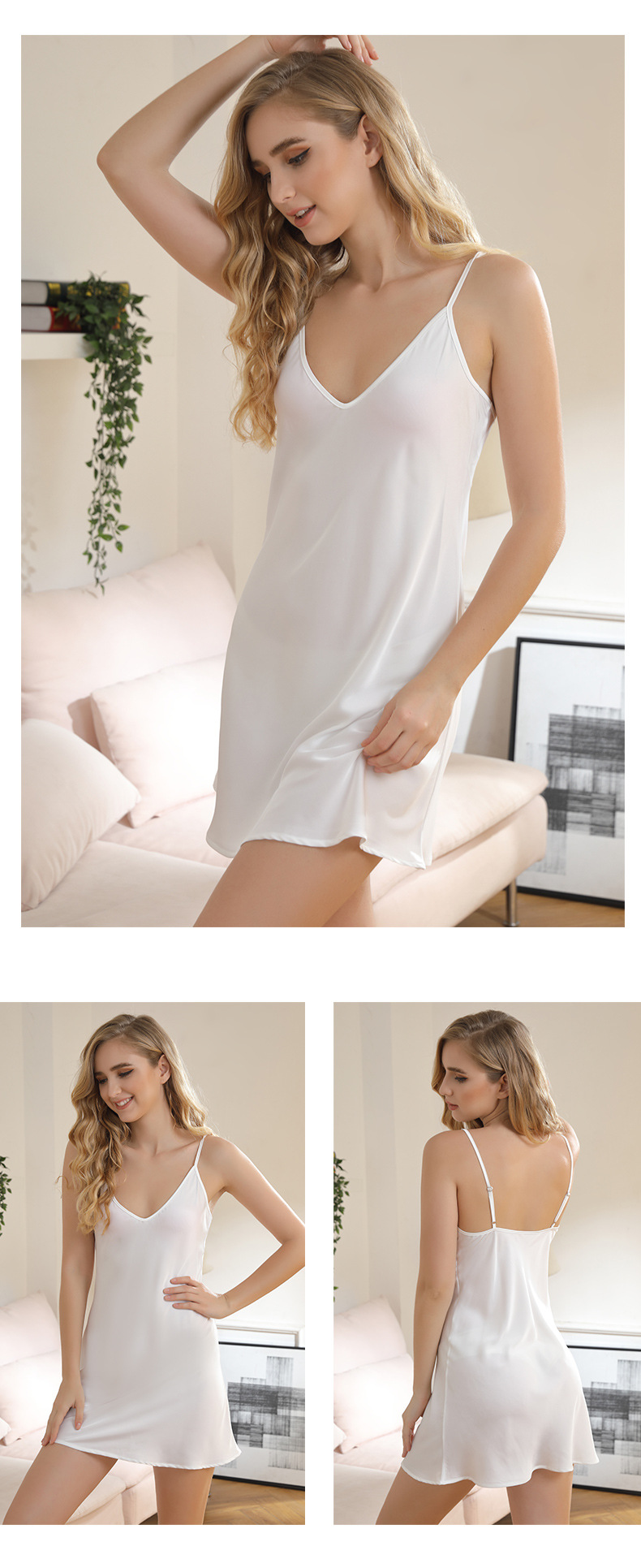 Satin女士深V仿真絲性感內衣春夏冰絲休閑時尚居家服睡衣吊帶睡裙 LCBN