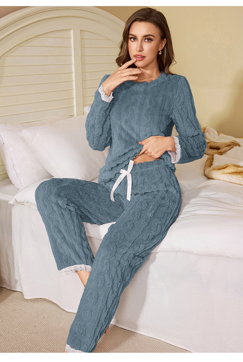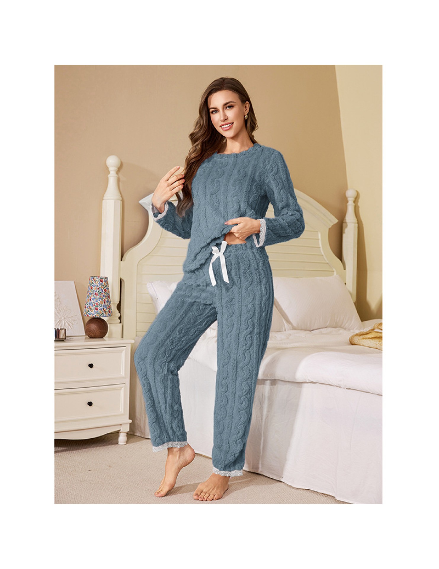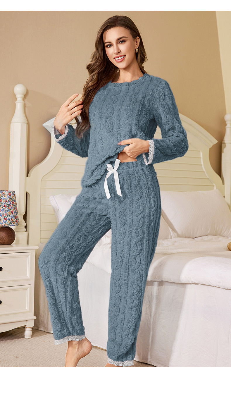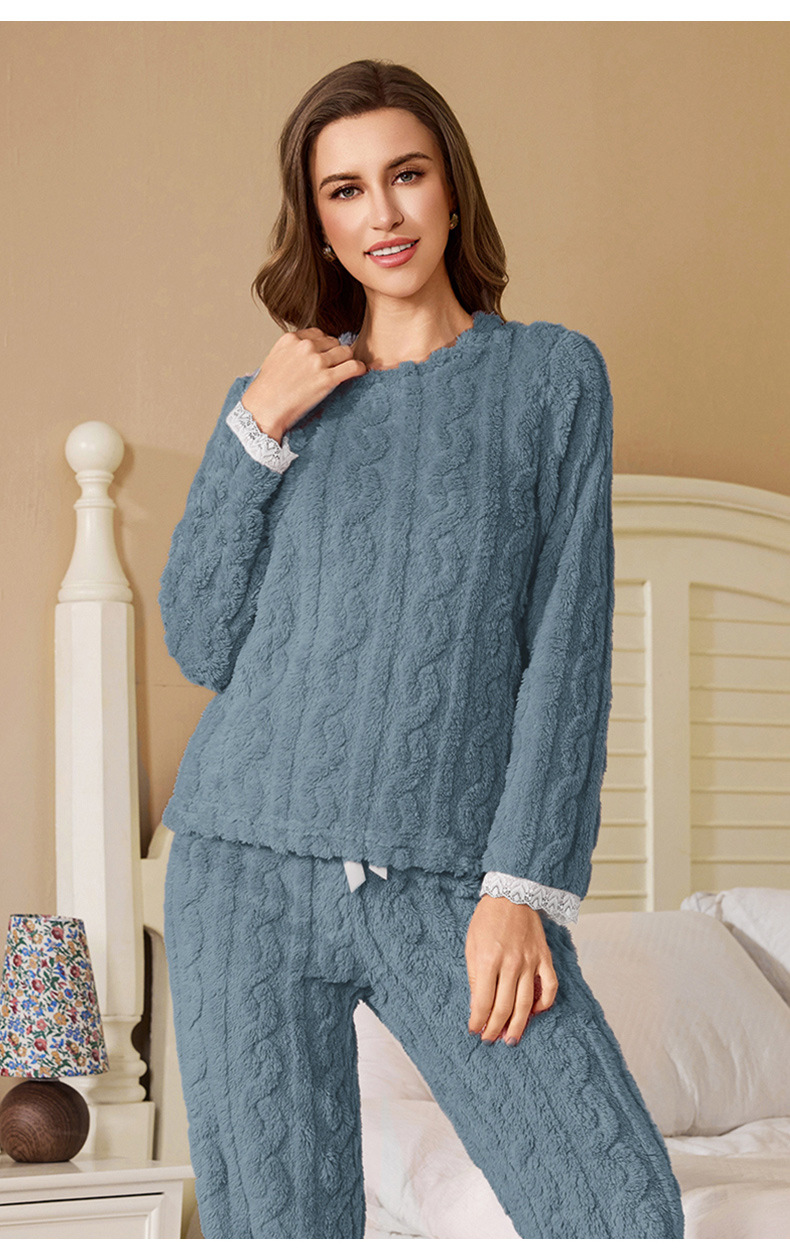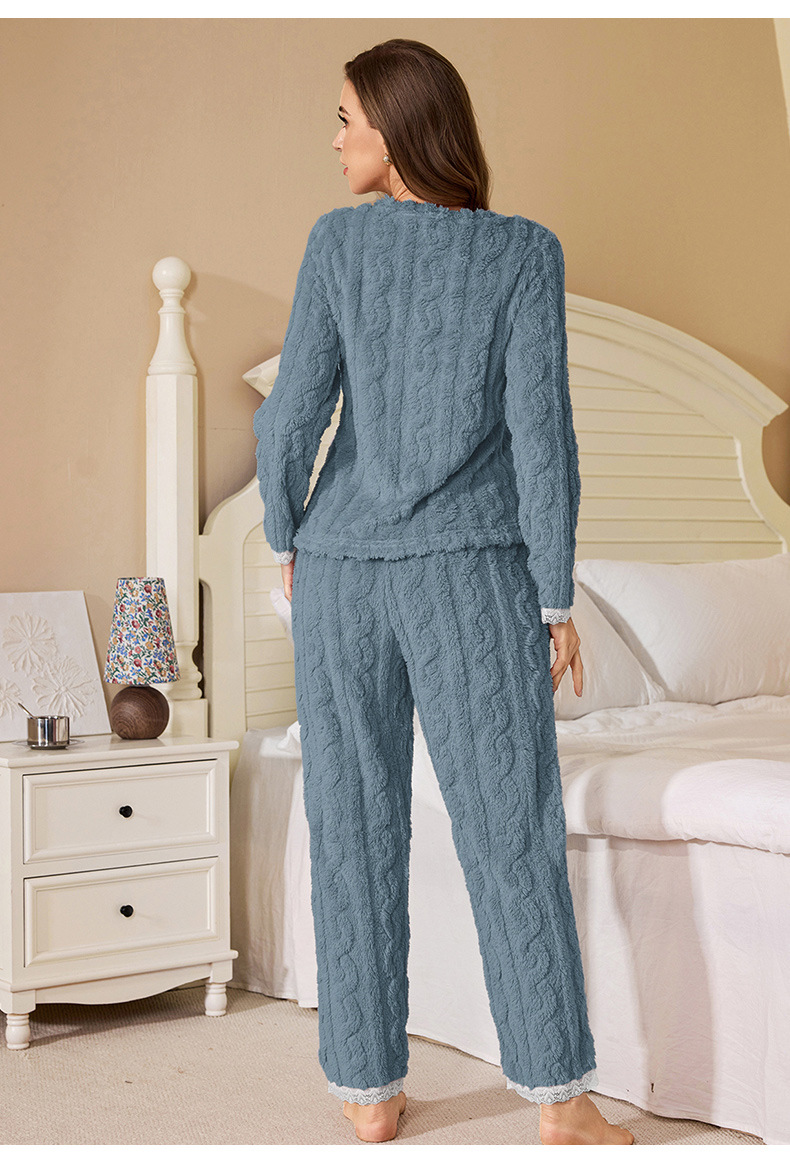 珊瑚絨提花睡衣套裝女冬季純色加厚寬松休閑保暖粉色家居服兩件套 LCBN