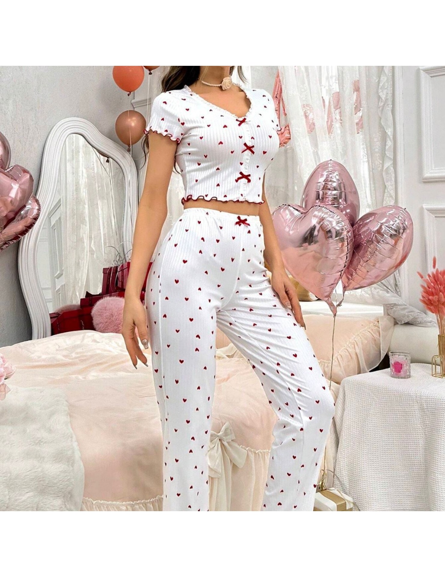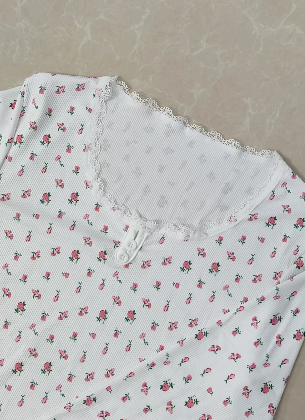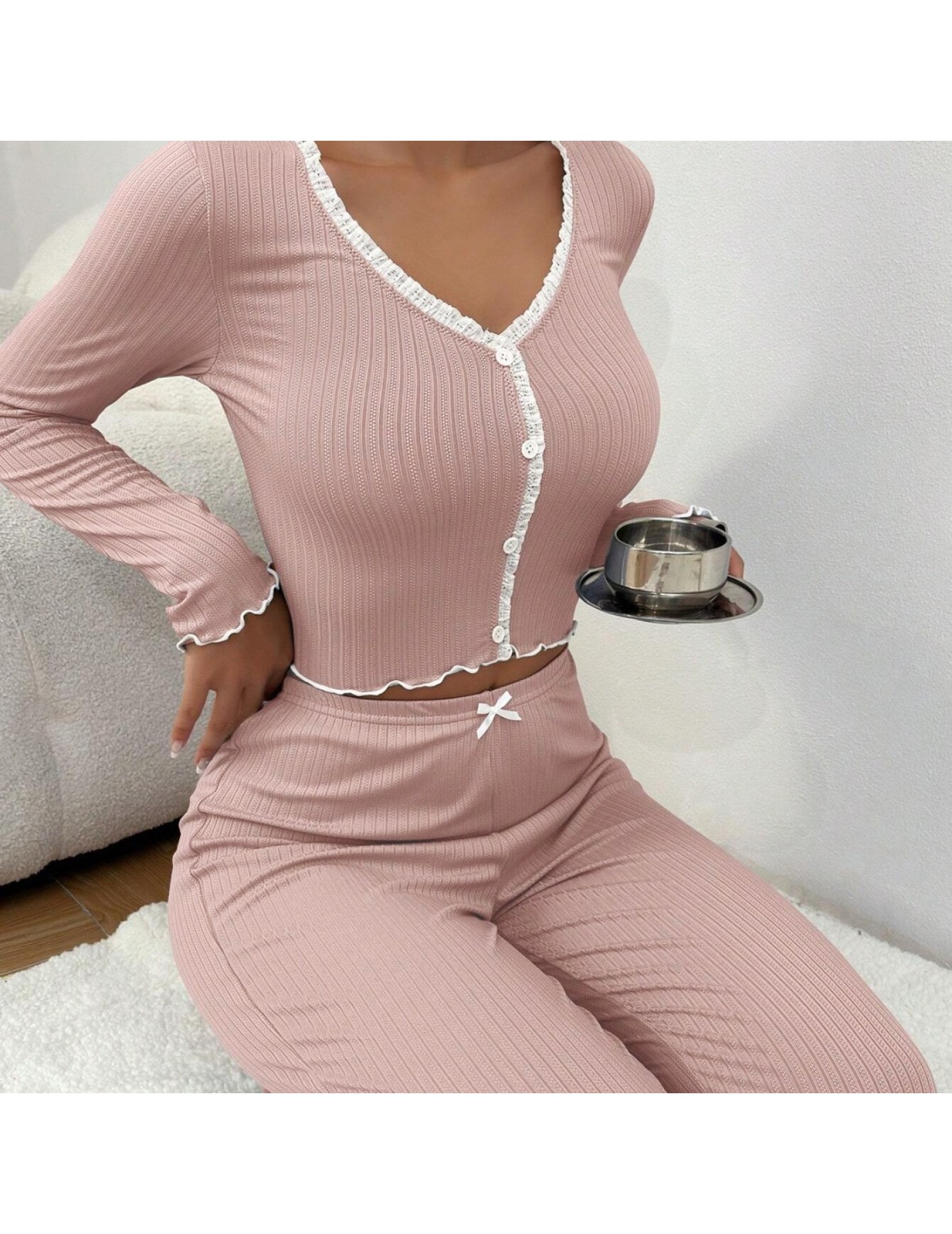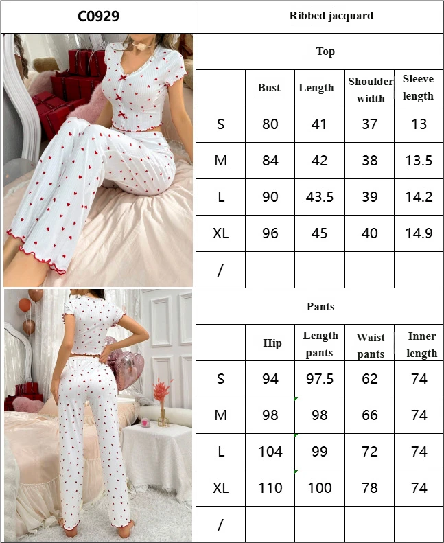新款歐美家居服睡衣長袖長褲修身性感花邊雙長套裝Pajamas LCBN