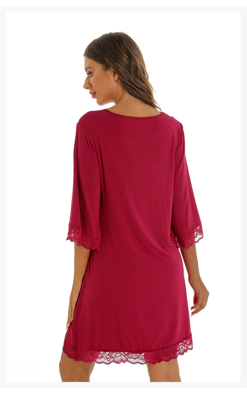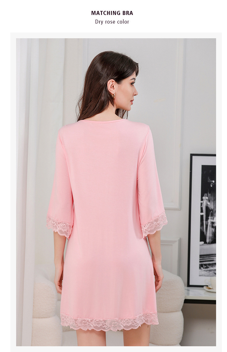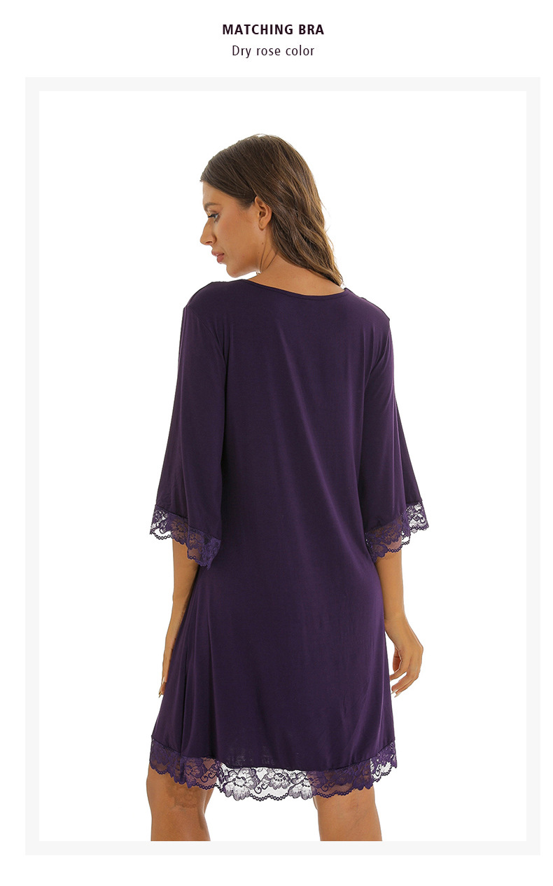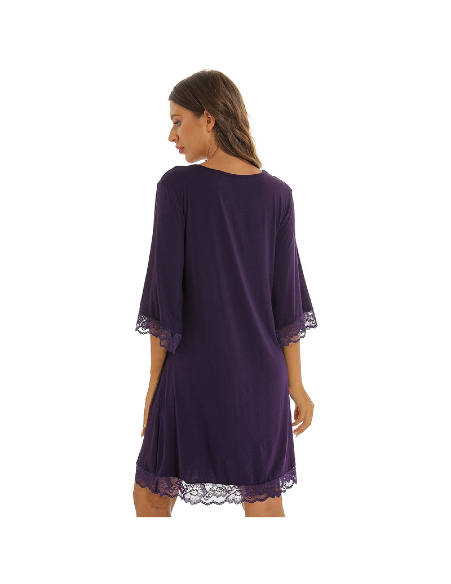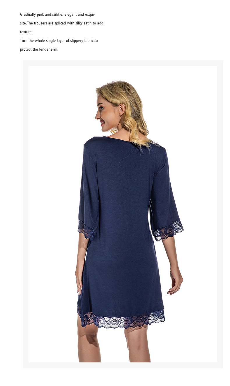 蕾絲性感V領純棉居家服睡衣女款大碼寬松七分袖睡裙 LCBN