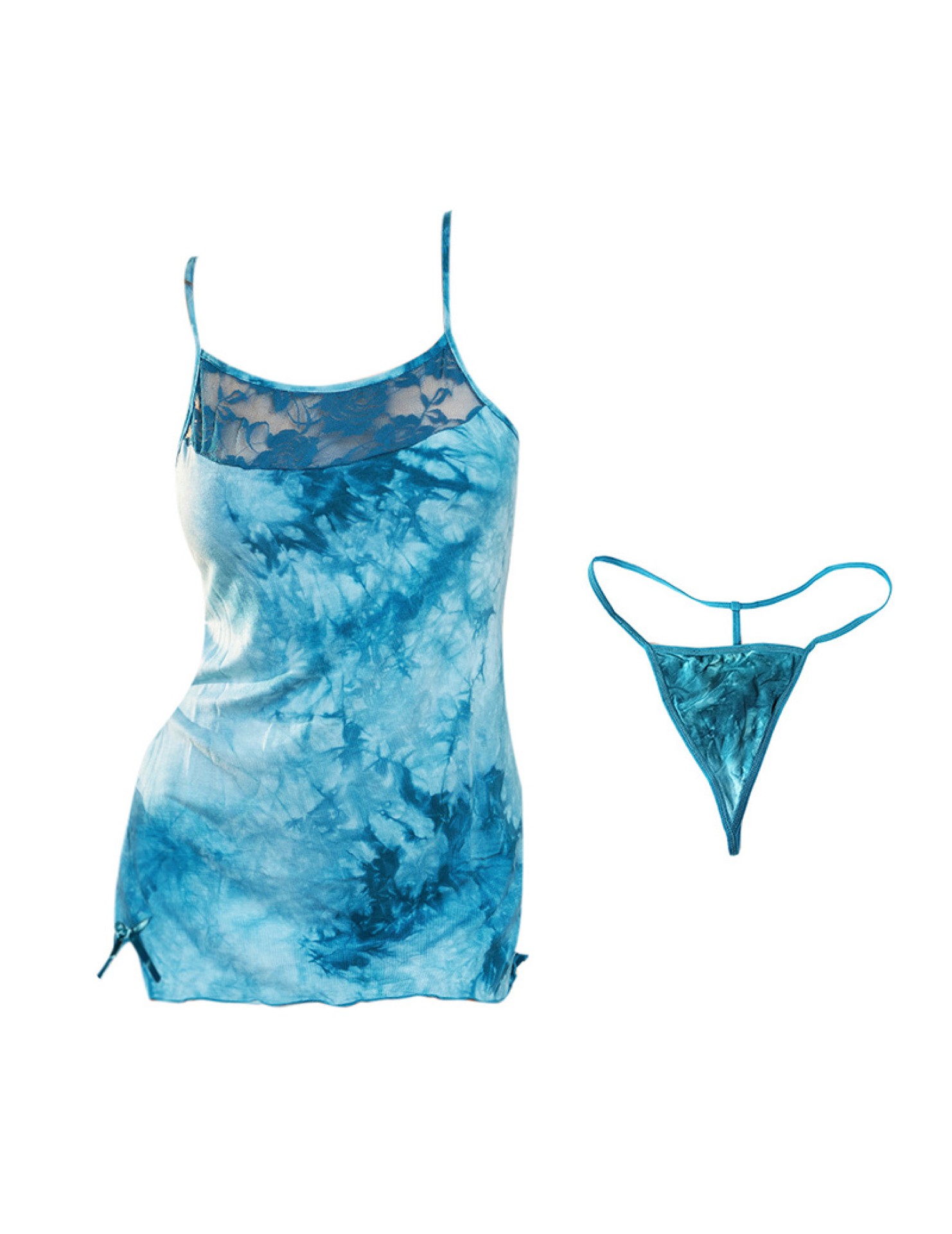 蕾絲性感透視睡衣女莫代爾吊帶睡裙女時尚扎染純欲風居家情趣 LCBN