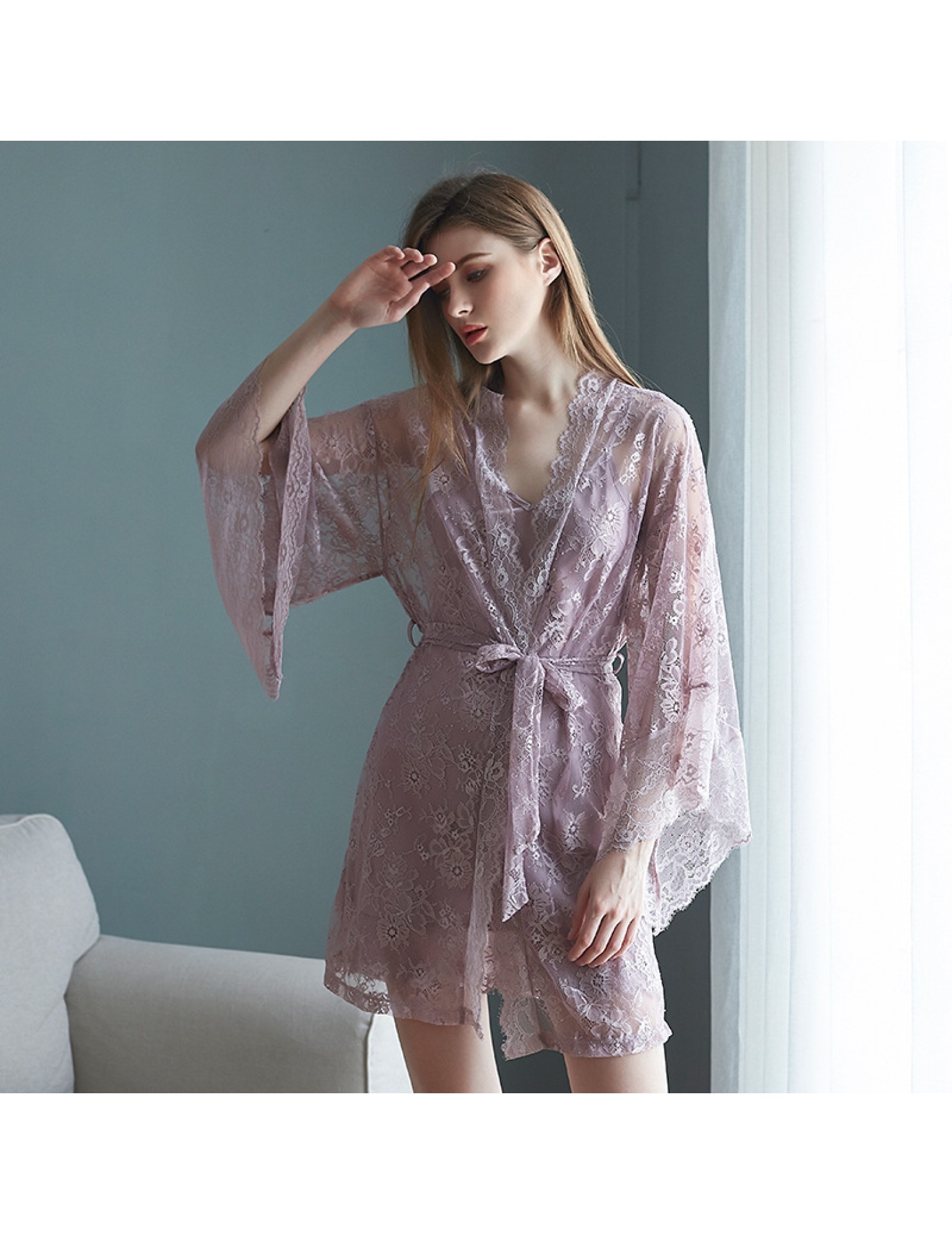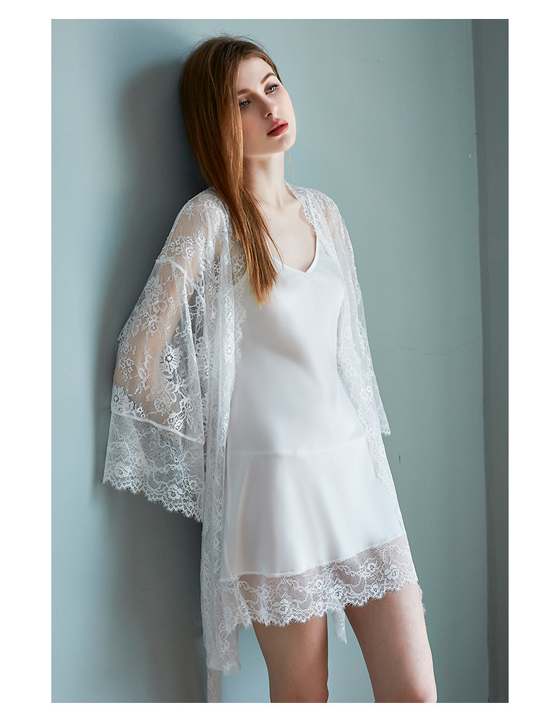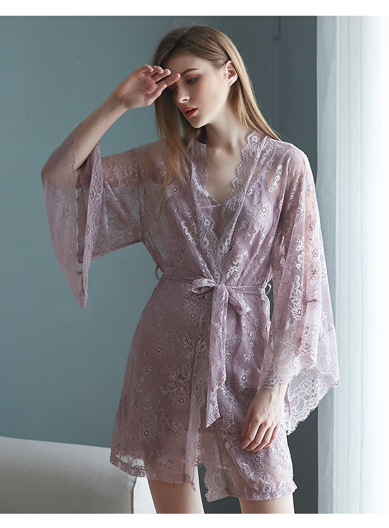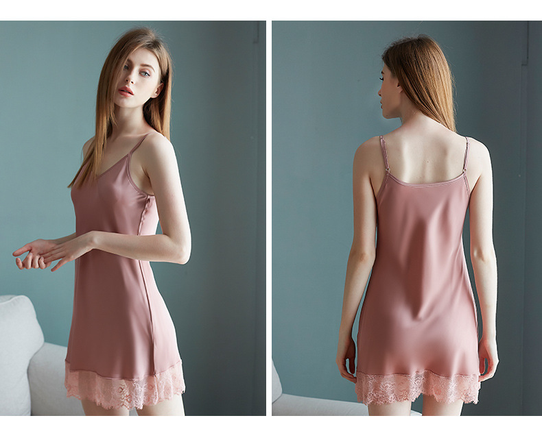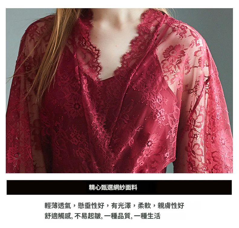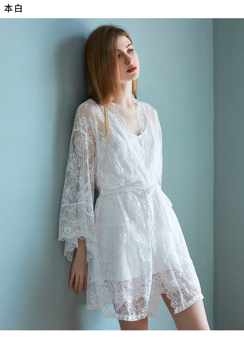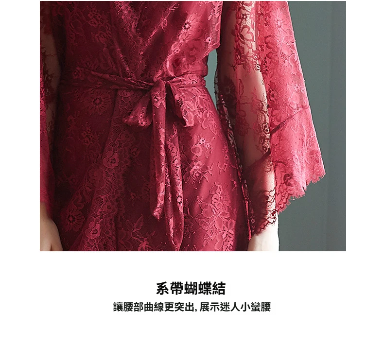新款冰絲吊帶睡裙蕾絲性感睡袍兩件套絲質睡衣女士性感家居服 LCBN
