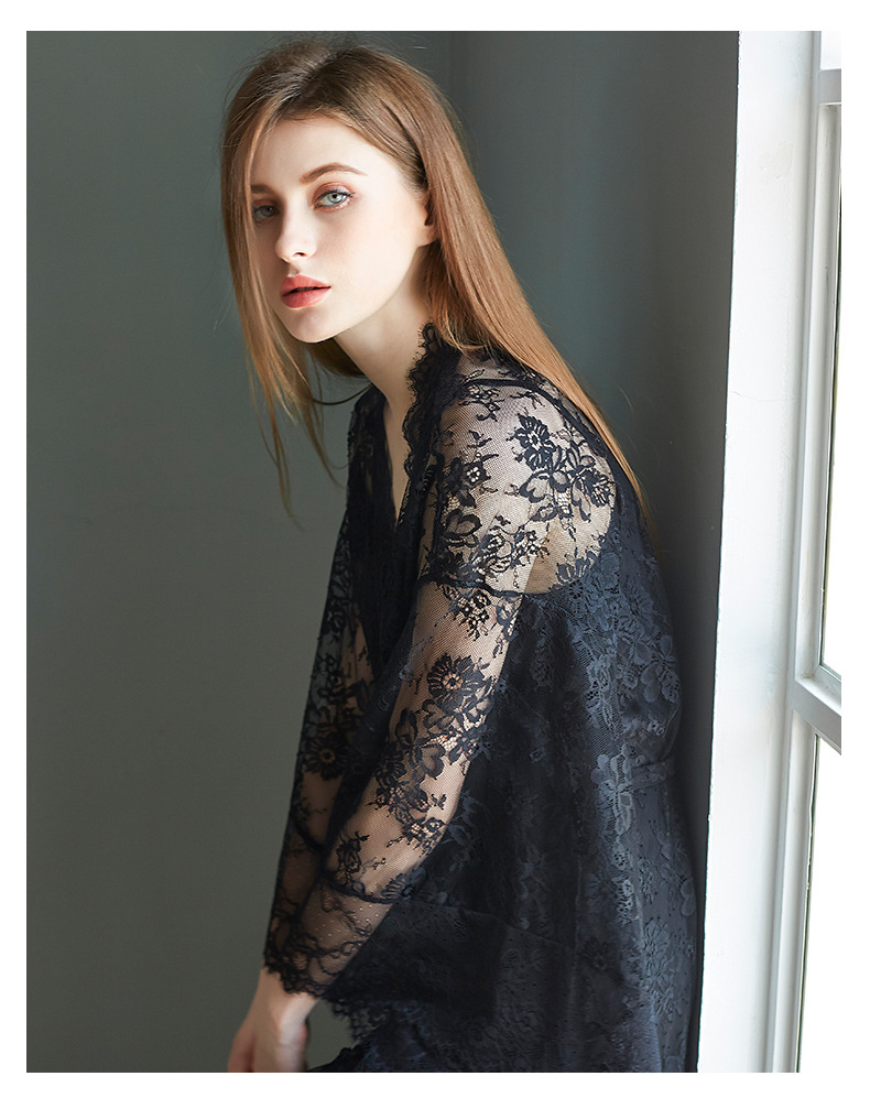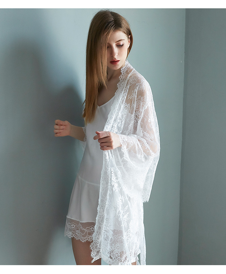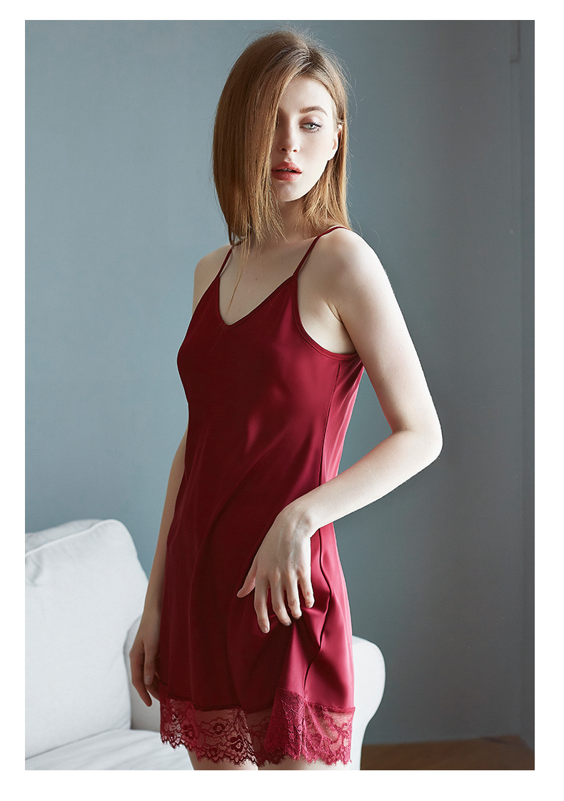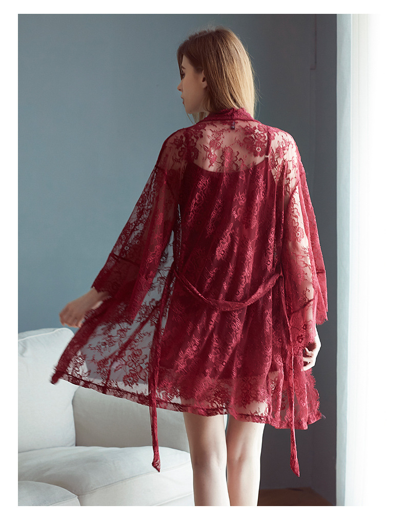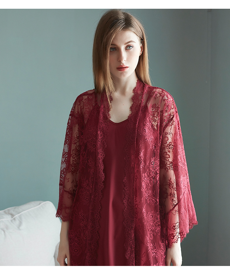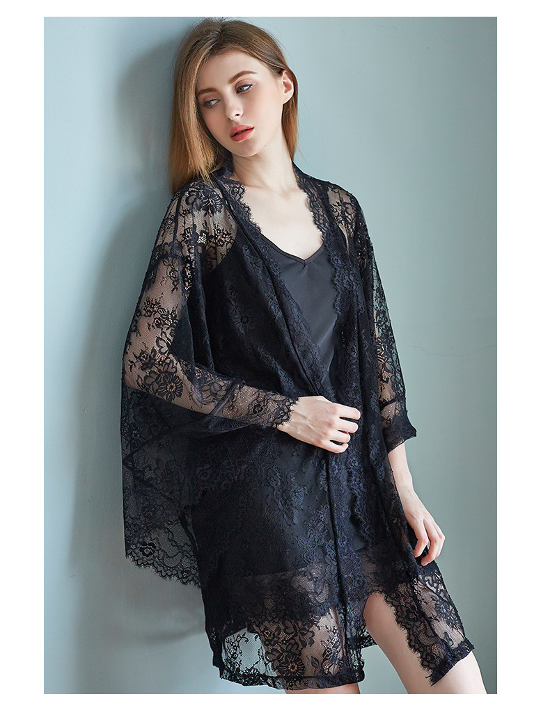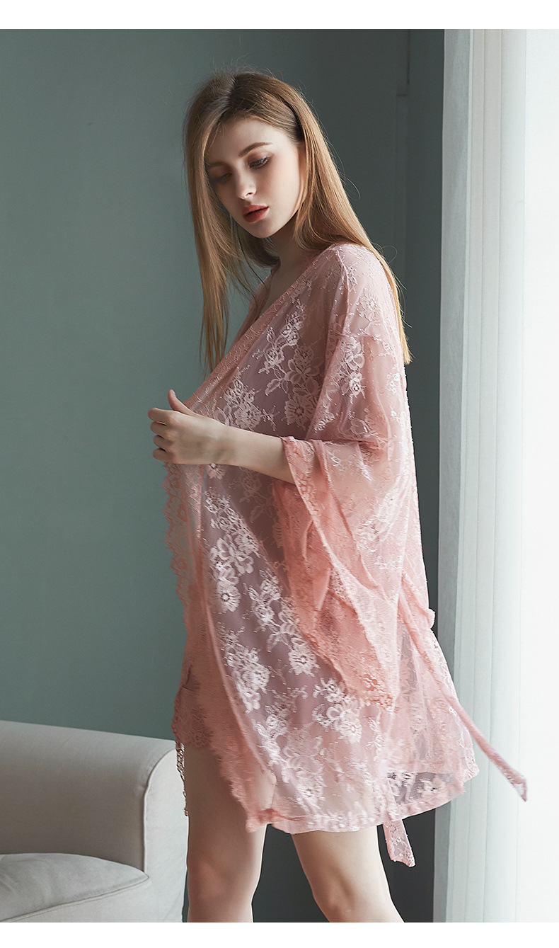新款冰絲吊帶睡裙蕾絲性感睡袍兩件套絲質睡衣女士性感家居服 LCBN