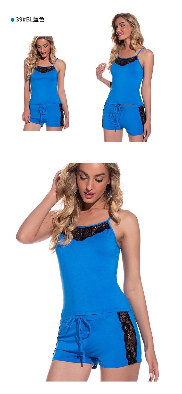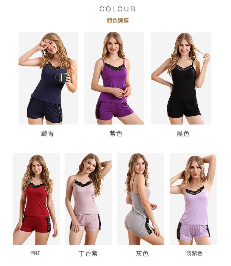 LCBN251225100255 新款莫代爾女士夏季性感吊帶睡衣套裝針織棉歐美蕾絲家居服