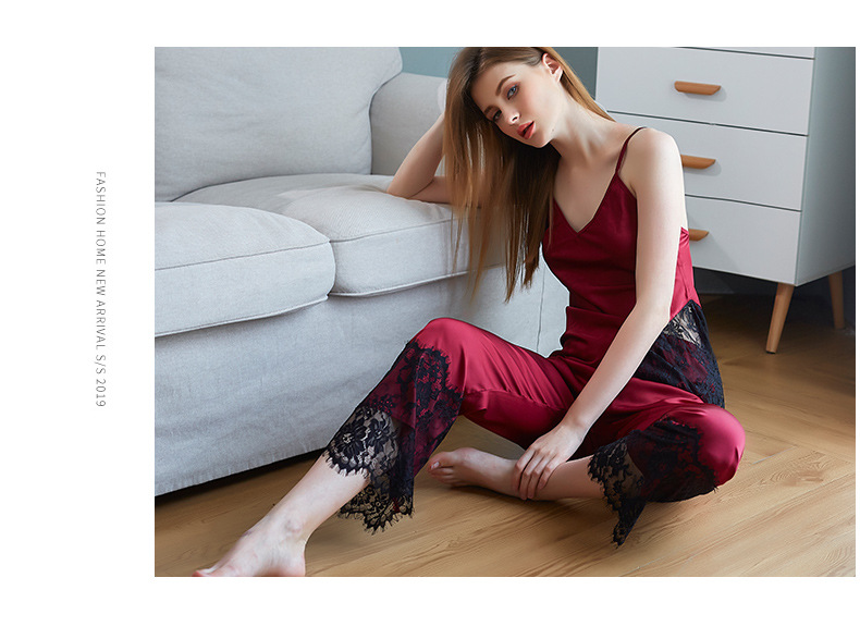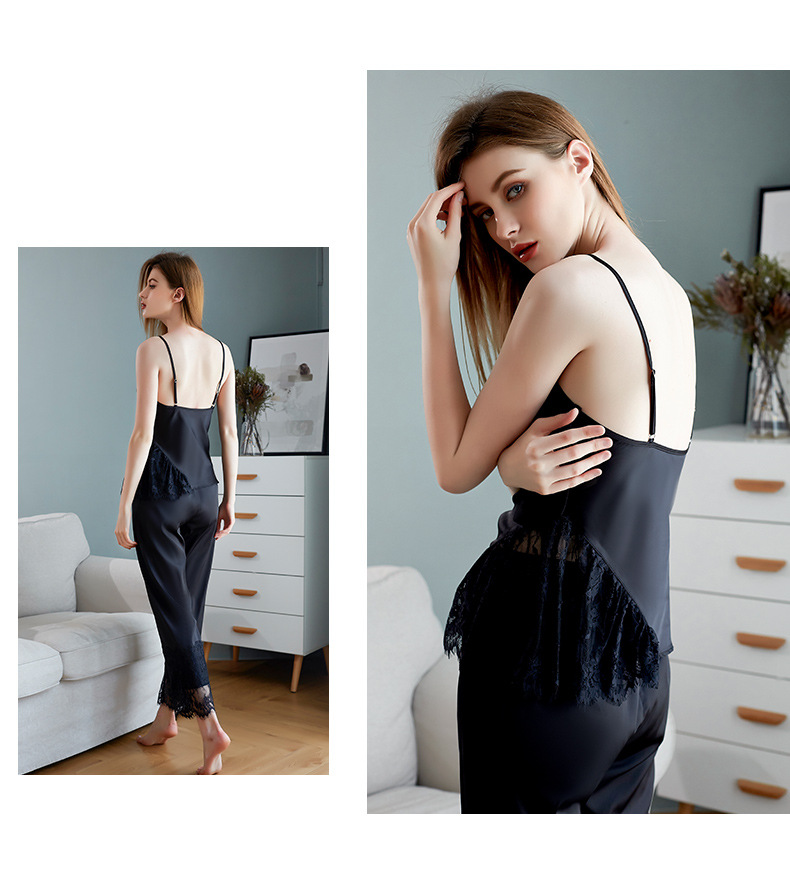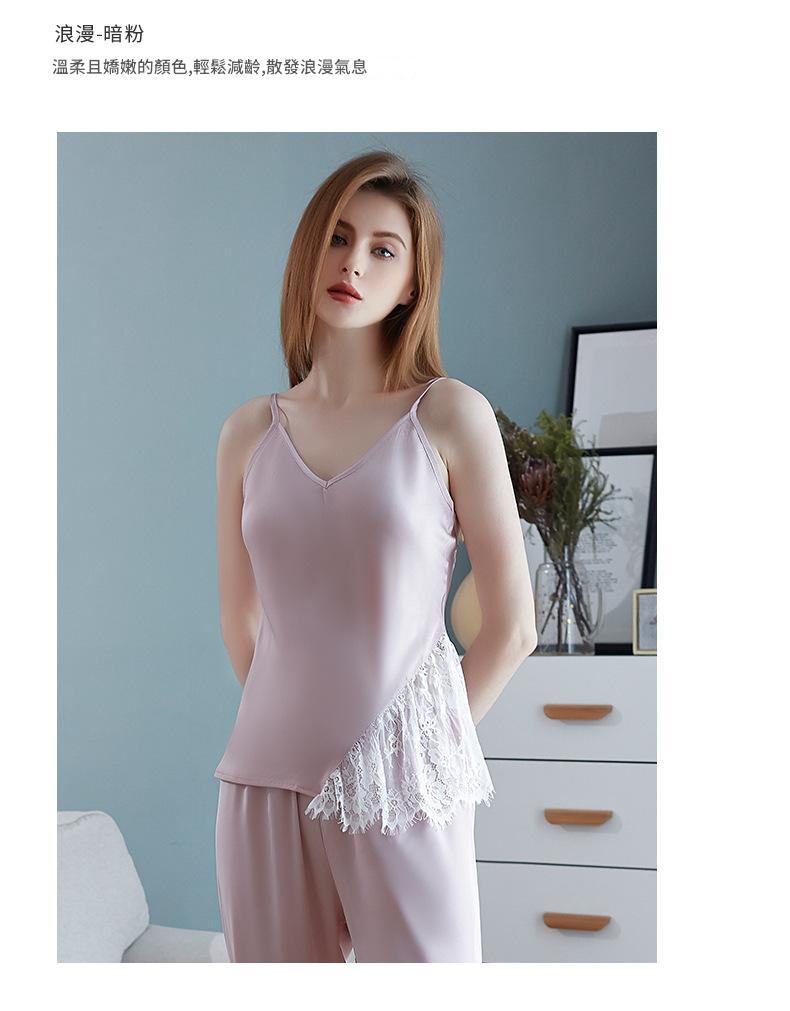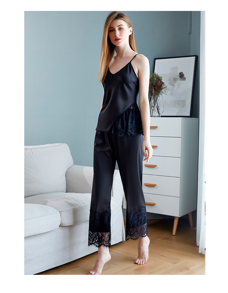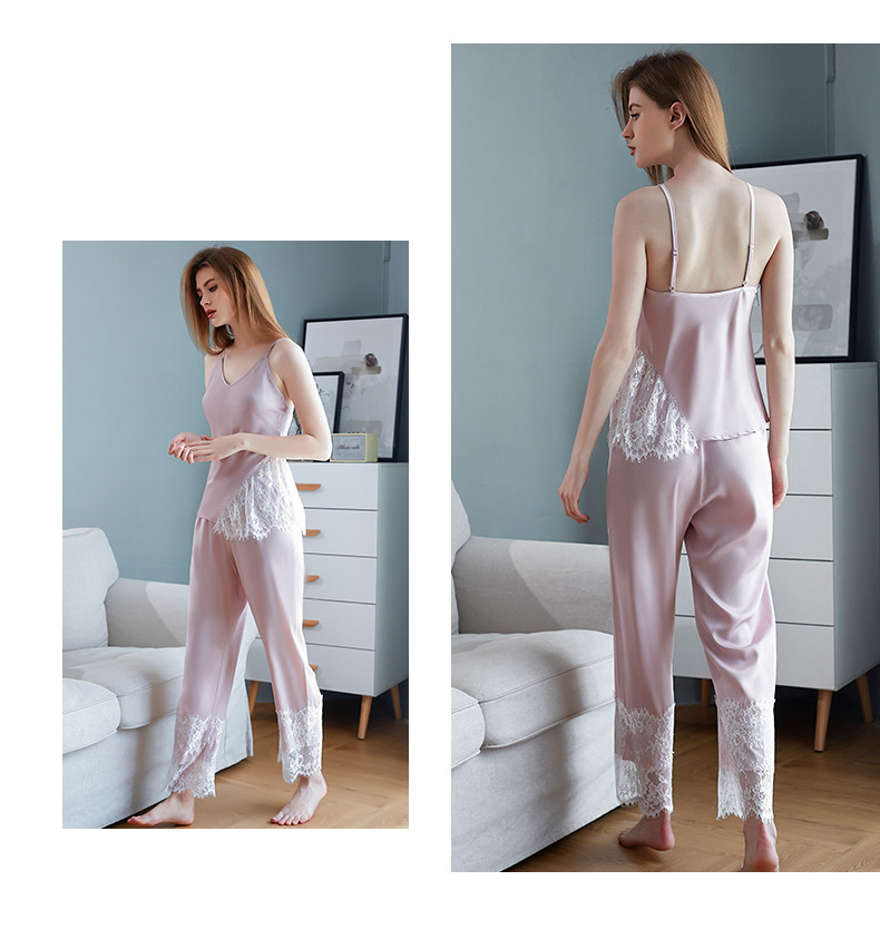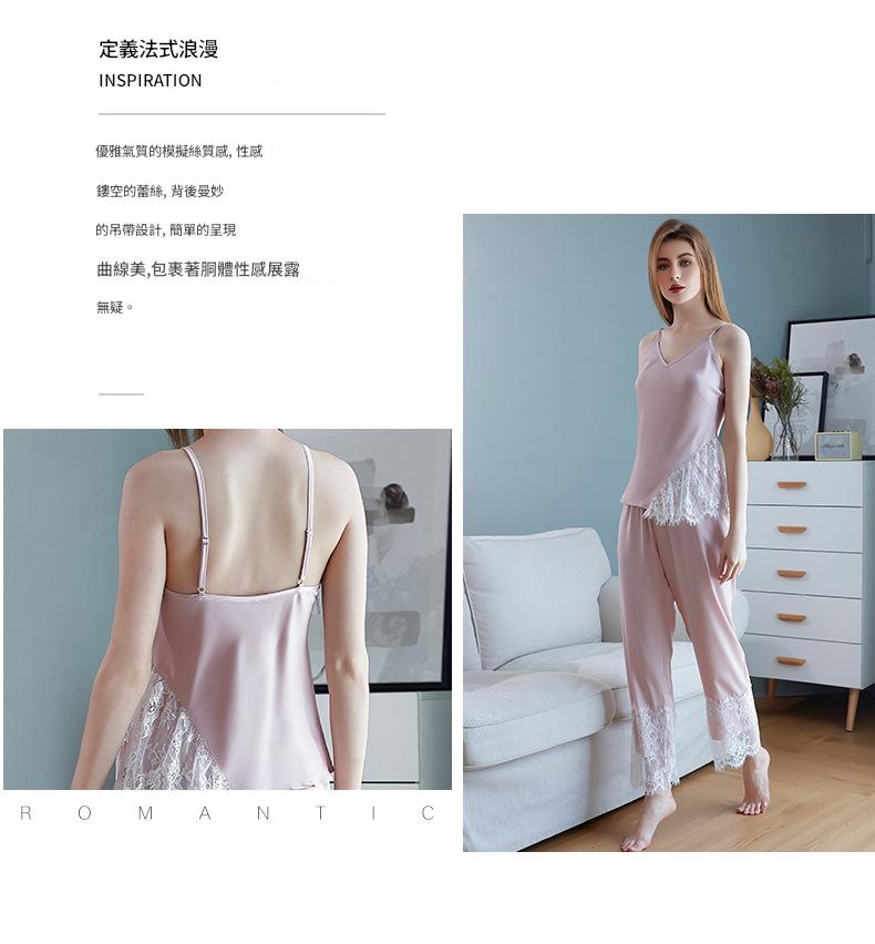 LCBN251225100256 新款春秋仿真絲吊帶睡衣長褲套裝女士家居服蕾絲誘惑性感內衣