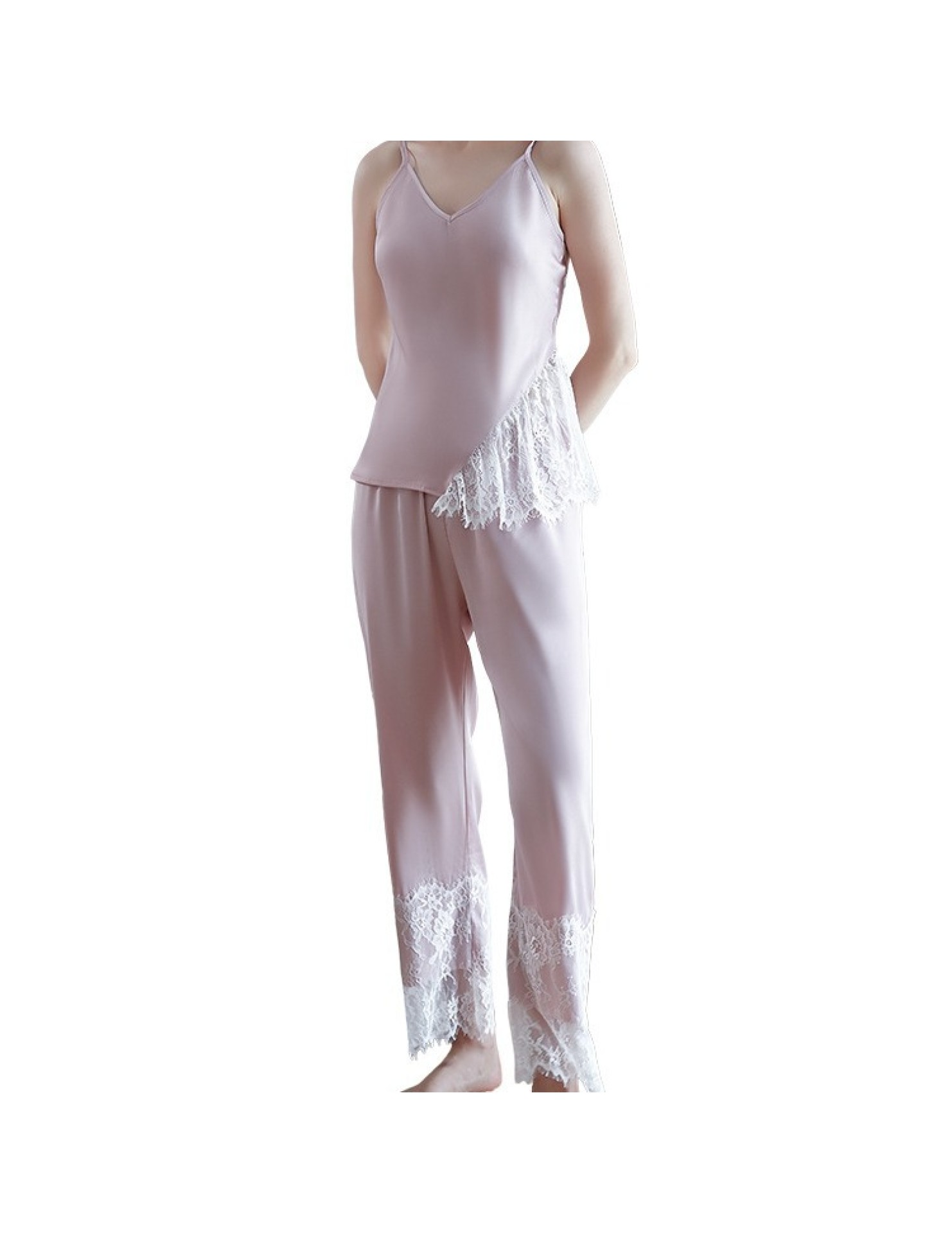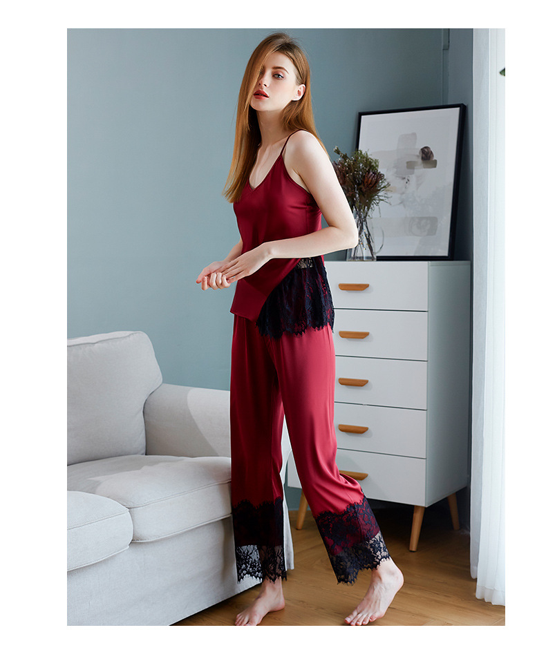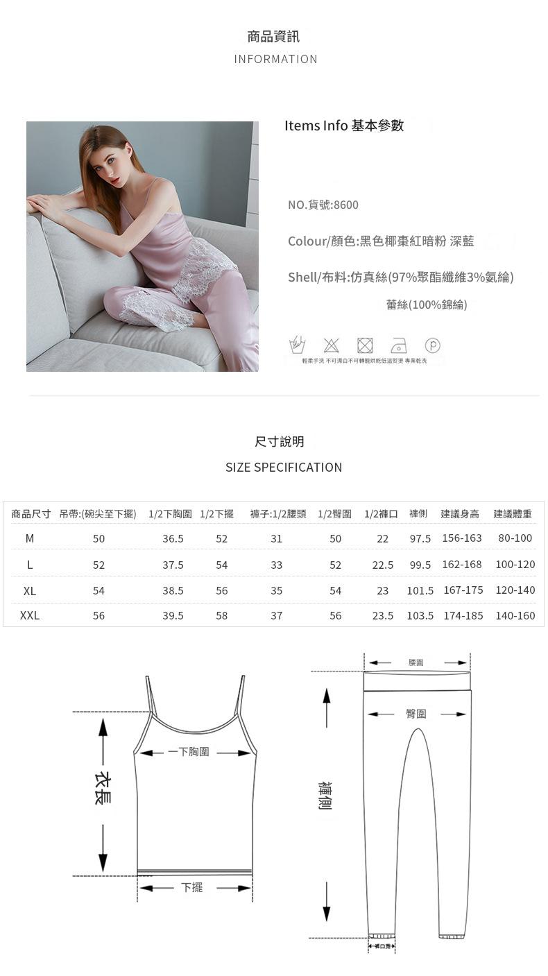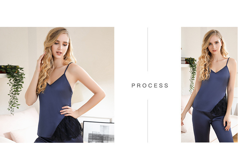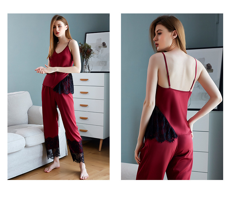 LCBN251225100256 新款春秋仿真絲吊帶睡衣長褲套裝女士家居服蕾絲誘惑性感內衣