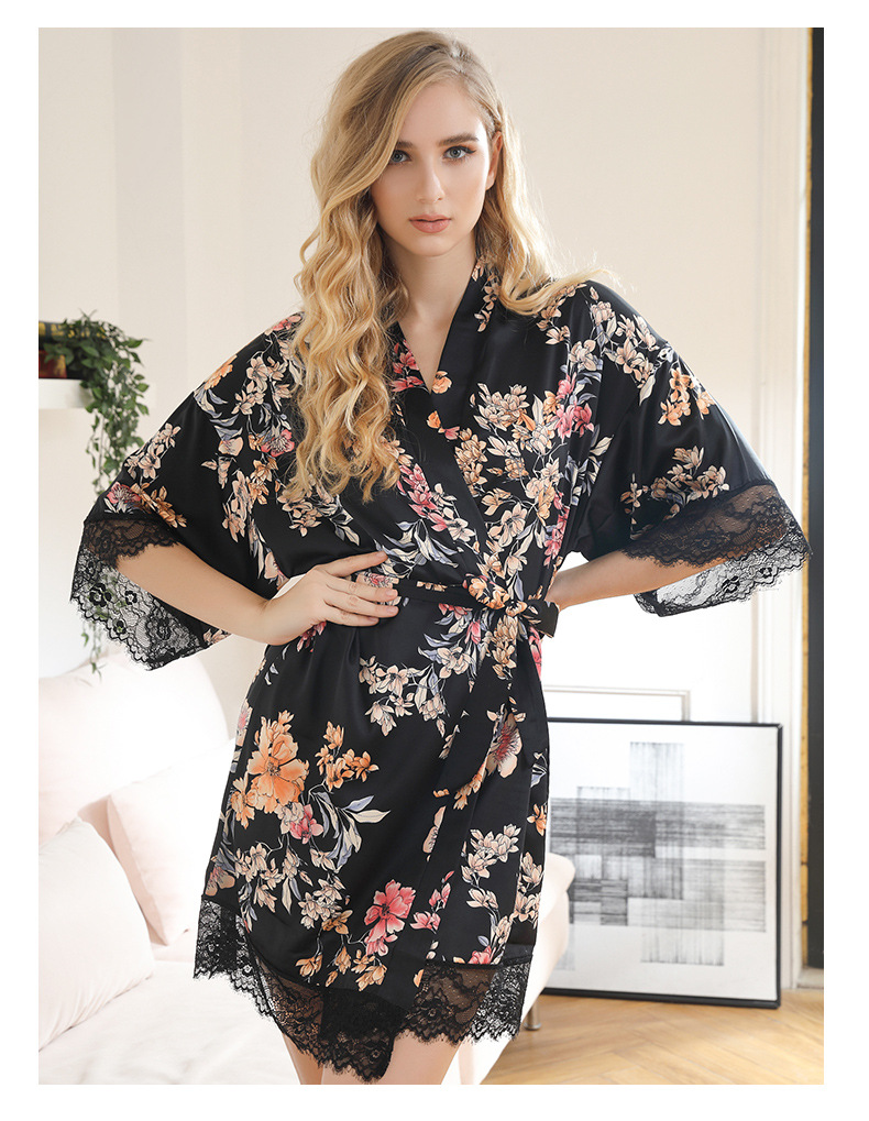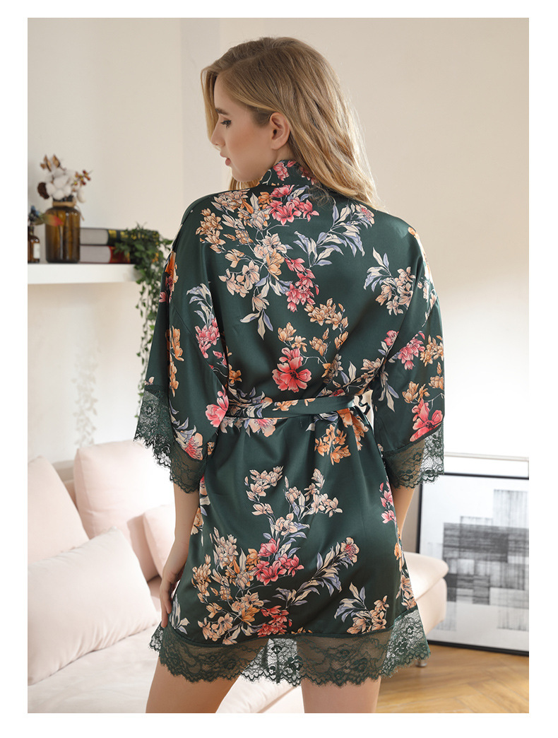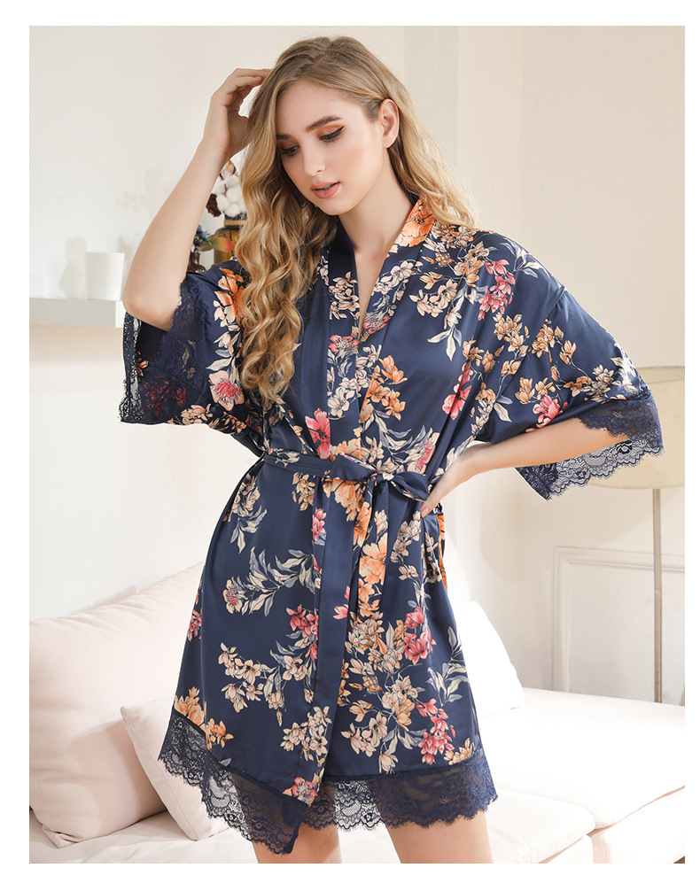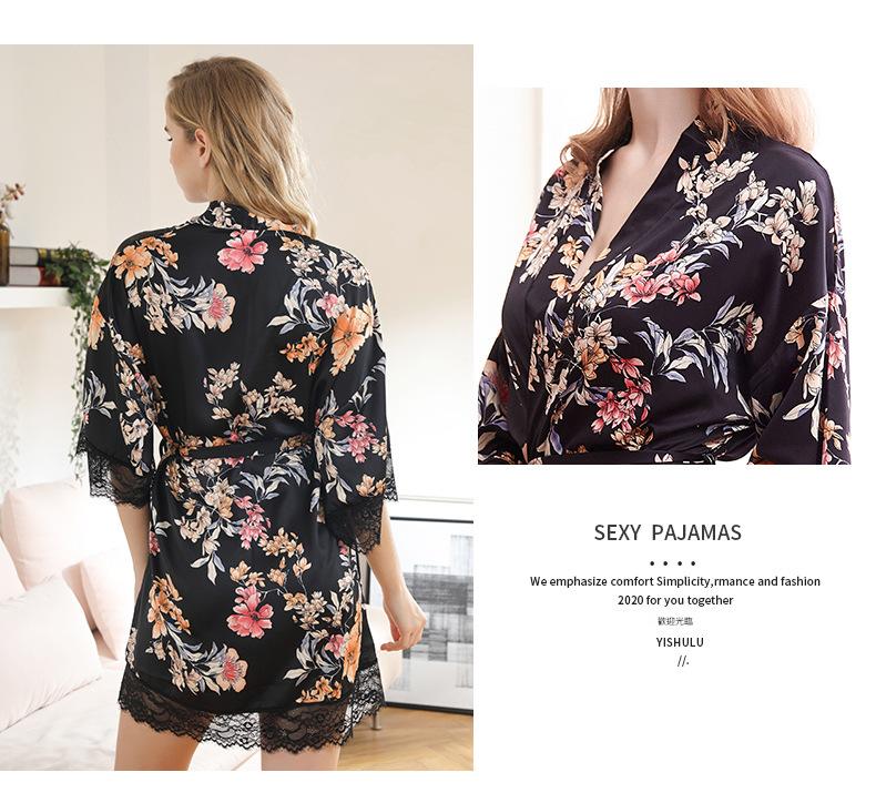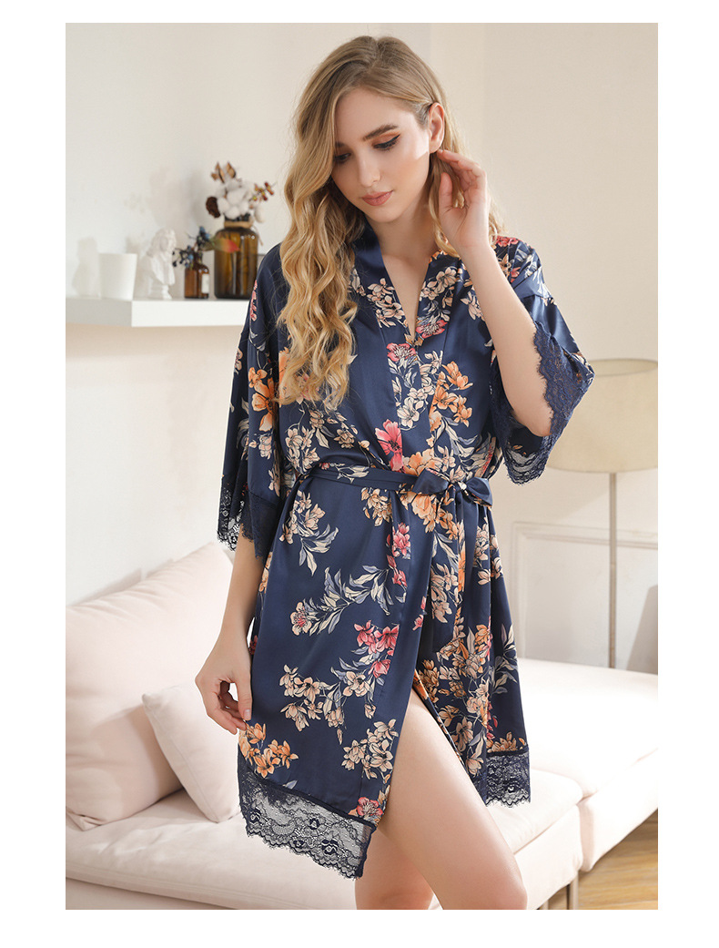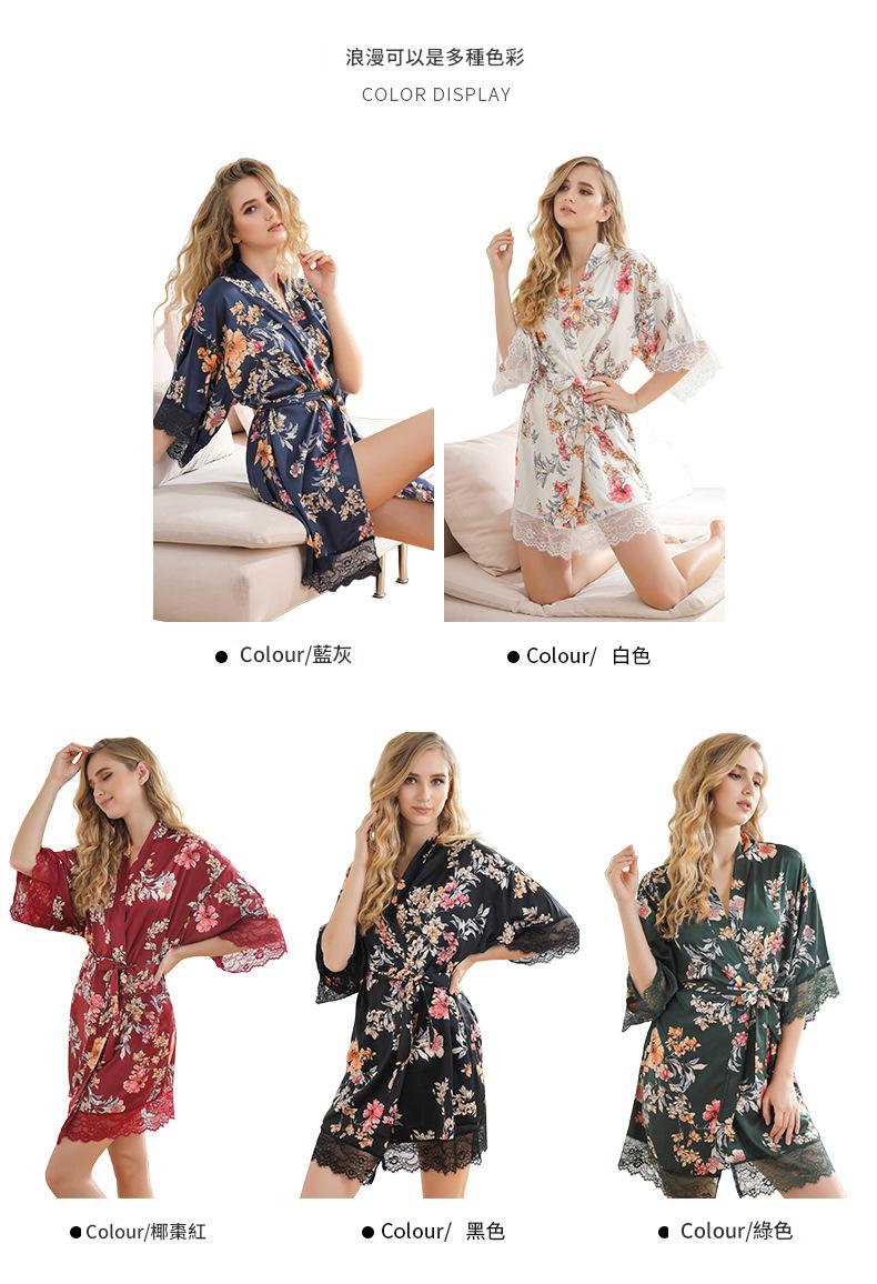 LCBN251225100261 女士性感居家服飾新娘晨袍大碼仿真絲睡袍女紅色歐美印花浴袍