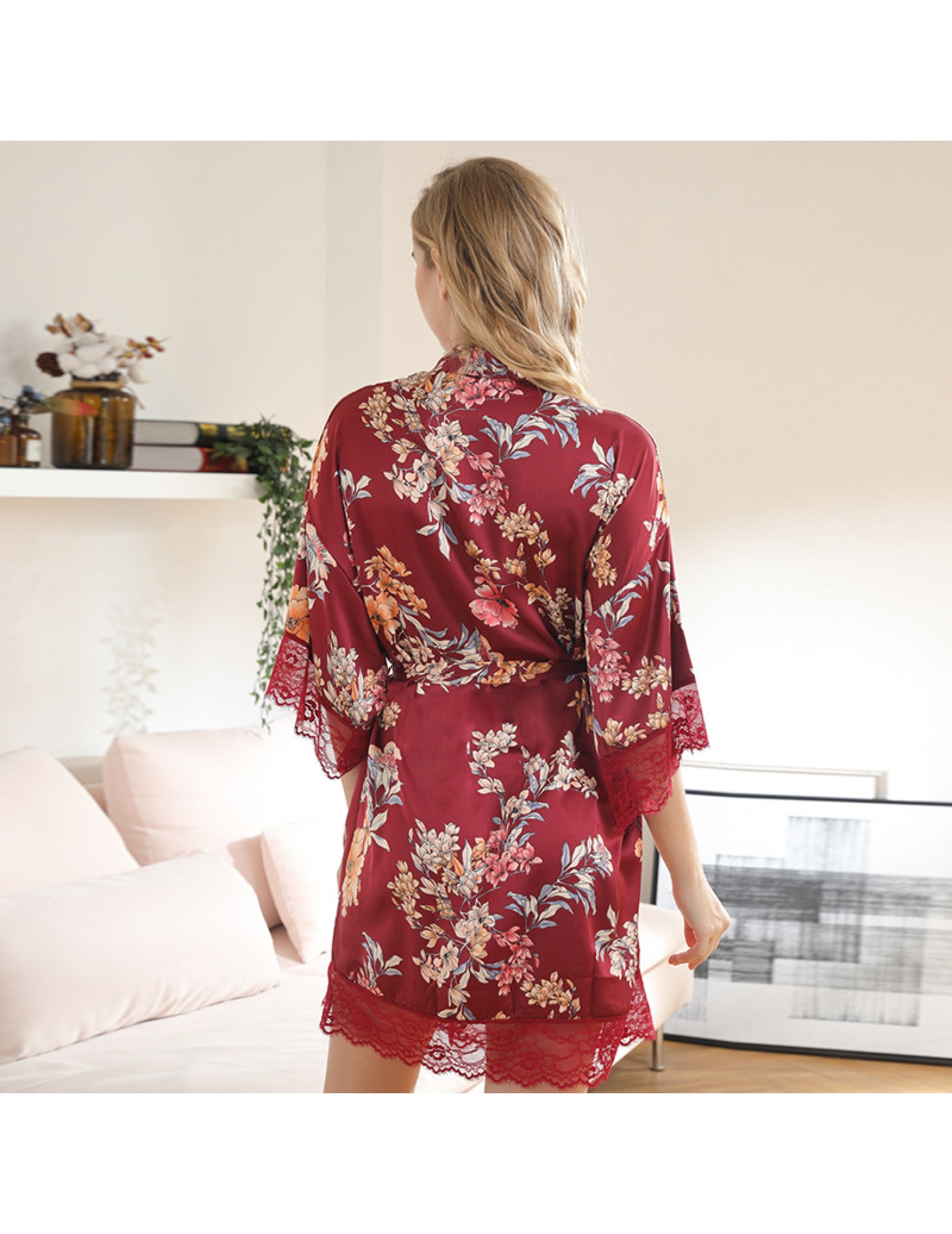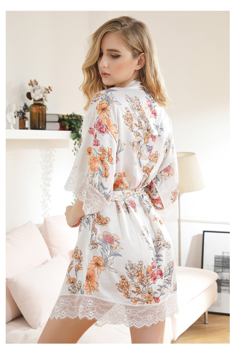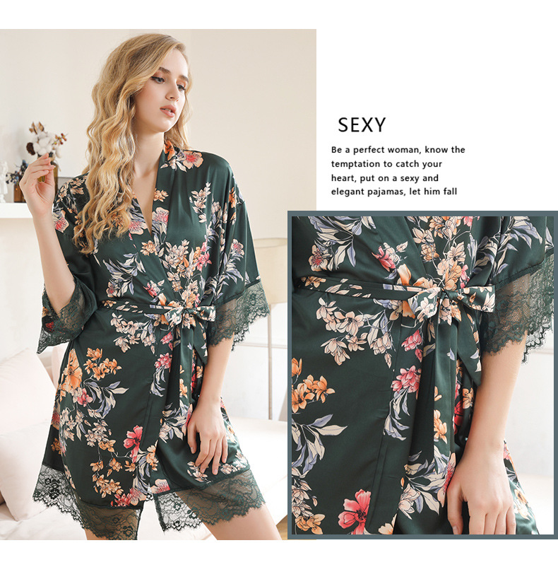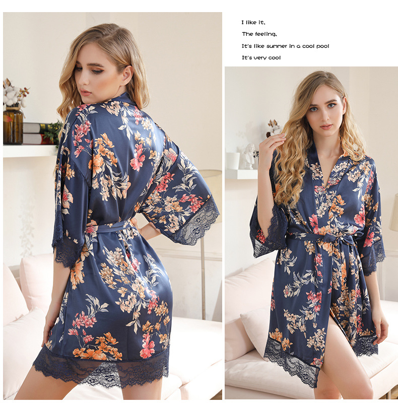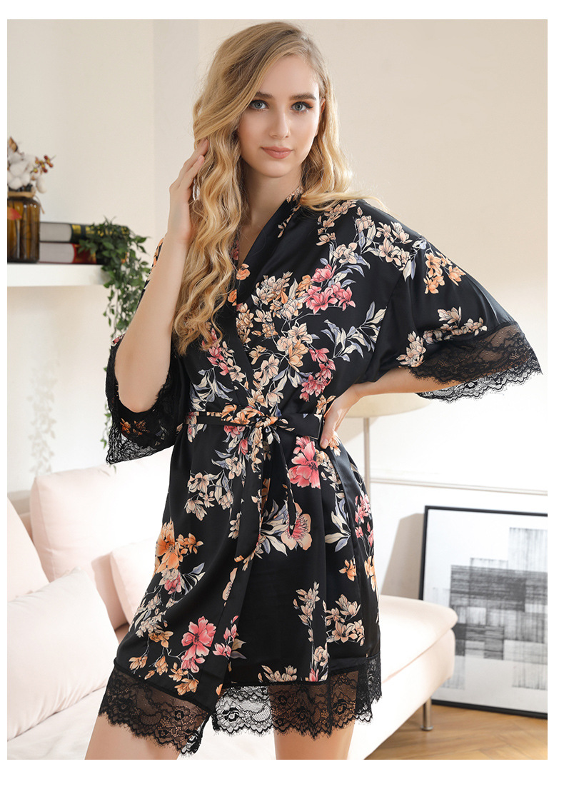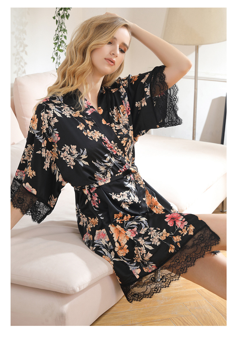 LCBN251225100261 女士性感居家服飾新娘晨袍大碼仿真絲睡袍女紅色歐美印花浴袍